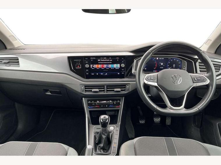 Adaptive cruise control without follow-to-stop and speed limiter, Bluetooth mobile phone interface, Digital Cockpit Pro with 10.25" Display, Driver alert system, Dynamic road sign display, Emergency call service, Power assisted speed sensitive steering, Preparation for We connect and We connect plus, Speedo and rev counter, electronic odometer, trip, service interval display and fuel gauge, Standard rear axle, Travel Assist - Lane keeping system and traffic jam assist, Travel assist including emergency assist, Trip computer, Warning signal and warning light for front and rear seatbelts not fastened, Washer fluid level indicator, Wireless app connect, Front wheel drive, Rear shock absorpion, Start-stop system with battery regeneration (recuperation - energy recovery during braking), DAB Digital radio, Diversity antenna for FM reception, Front and rear 6 speakers, Automatic dimming interior rear view mirror, Automatic headlights, Body colour door handles, Body coloured bumpers and radiator grille with chrome trims, Electric front windows, Heat insulating darkened glass in side and rear windows, Heat insulating glass windscreen, LED separate daytime running lights with coming/leaving home function, Power folding adjustable/heated exterior mirrors and front passenger exterior mirror lowering function, Rain sensor, Rear electric windows, Rear fog light, Rear side wing doors, Rear windscreen washer and wiper with interval delay, Third brake light, 12V power socket in centre console, 2 USB-C ports in the front, 2 USB-C charging sockets on the center console in the rear, 3 rear head restraints, 60/40 split folding rear seat and rear seat bench not split, Air care climatronic air conditoning system with active combination filter and 2-zone temperature control, Ambient lighting, Ceramique headliner, Chrome plated radiator grille inserts, air vent surrounds and light switch surrounds, Door and side trim panel, Driver and front passenger seat height adjustment, Driver/passenger sunvisors with illuminated vanity mirrors, Front + rear carpet mats, Front centre armrest, Front footwell illumination, Front seat backrest storage pockets, Front sports comfort seats, Handbrake lever handle in leather, Isofix child seat preparation easy-fit (for two outer rear seats, and front passenger seat) compatible with I-size, Leather trimmed gear knob, LED interior light with switch off delay and dimmer, 2 reading lights front and rear, Luggage compartment cover, Luggage compartment floor, Luggage compartment lighting, Lumbar adjustment for front seats, Multifunction steering wheel, Single front passenger seat, Standard pedal cluster, IQ LED matrix headlights pack - Polo, Light and vision pack - Polo, 3 point height adj front seatbelts + pretensioners, 3x3 point rear seatbelts, ABS, Driver and front passenger airbag with front passenger airbag deactivation, Drivers and front passengers safety optimised head restraints, ESC (Electronic stability control) + EDL (Electronic Differntial lock) and ASR (Traction control), Extended and predictive pedestrian/ cyclist protection, Front curtain and side airbags with center airbag, Front disc brakes, Hill hold control, Manual child lock in rear doors, Rear drum brakes, Single tone horn, Tyre pressure loss indicator, Alarm with interior protection, Anti-theft alarm system with interior monitoring, backup horn, and towing protection, Anti-theft wheel bolts, Electronic engine immobiliser, Chrome applications on rotary light, mirror adjustment, window regulator switches, outlet with frame in black, Deep iron gloss decorative inserts in dash and front door panels, Low rolling resistance tyres,