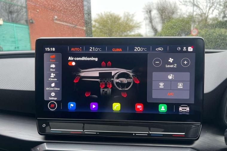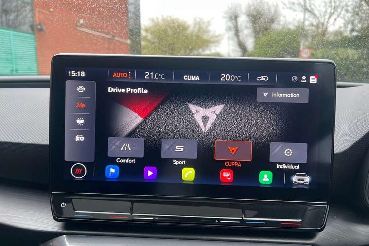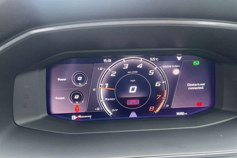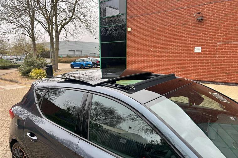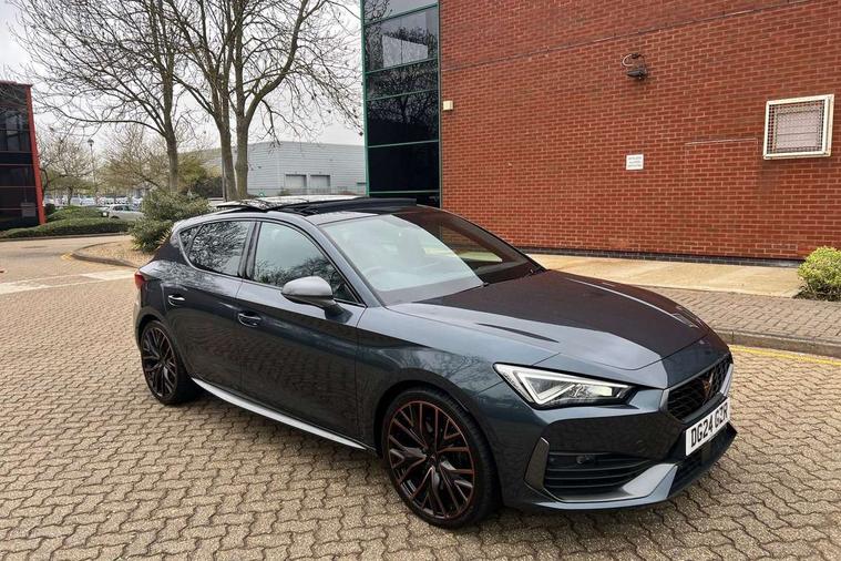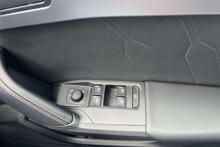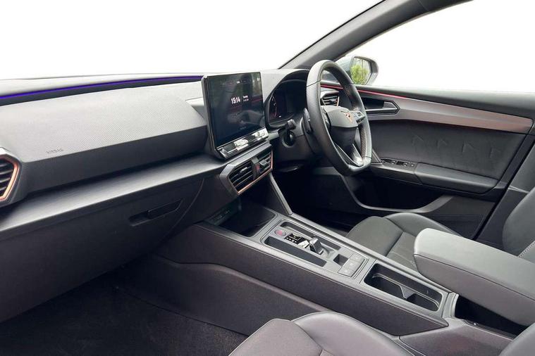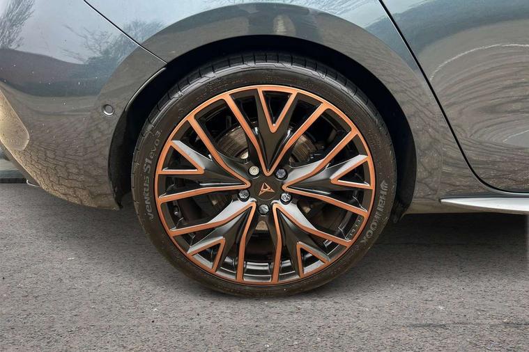 CUPRA drive profile selection with 4 modes (Comfort/Cupra/Sport/Individual), throttle response and gearshift mode, Digital cockpit, E-call, Front assist with forward collision warning braking reaction to vehicles, pedestrians and cyclists, Full link smartphone integration with Mirror Link, wireless Apple CarPlay and wired Google Android Auto, Lane assist, Lockable tailgate, Park assist (inc front/rear parking sensors), Rear view camera, RPM, trip computer, outside temp gauge, instrument light brightness, low fuel warning light, lights on reminder, gearshift indicator, Service interval indicator, Start/stop system with regenerative braking, Wireless phone charger, Standard suspension, XDS electronic differential lock and dynamic traction support, Auxiliary input socket, Auto dimming rear view mirror, Body colour door handles, Body coloured bumpers, Cupra sports bumpers, Dark tinted rear windows, Electric front/rear windows, Electrically adjustable, heated and folding door mirrors, LED front fog lamps with cornering function, LED headlights with dynamic turn signals, tail lights, rear fog lights with rear coast to coast lighting, Panoramic sunroof, Rain sensing wipers, Rear diffuser with splitter and oval quad exhaust pipes, Rear side wing doors, Rear wash/wipe, Separate daytime running light with automatic headlight control and coming home feature, Third brake light, 12v power supply in centre console, 3 seat bench in 2nd row, 5 headrests, 60/40 split rear bench seat with armrest, Ambient lighting (glovebox, footwell, ambient lighting multicoloured), Black headlining, CUPRA Leather flat bottomed, heated, perforated steering and gearshift paddles, Cupra sports pedals, Driver/passenger manual seat height adjustment, Dust/pollen filter, Folding boot cover, Four x USB Type C ports (2 in front and 2 in rear), Front and rear reading lights X 4, Front centre armrest, Front seats manual lumbar adjustment, Height/reach adjust steering wheel, Illuminated interior front door sills, Interior wraparound lighting, ISOFIX points in outer rear seats with top tether anchorage points, Jack and tool kit, Luggage tie-down hooks, PVC/Cloth upholstery with copper stitching + Cupra embossed logo on headrest, Single front passenger seat, Sports bucket seats, Storage pockets on rear of front seats, Sunvisors with illuminated mirror, Three zone climate control, Design pack - Cupra Leon, Dynamic and comfort pack - Leon Cupra, Media system plus with navigation pack - Leon Cupra, 3 point seatbelts on all rear seats, ABS, Brake control system - ESC and brake booster, Child proof door locks, Cupra black brake calipers, Driver and front passenger airbags with front passenger airbag de-activation, front side and curtain airbags, Electronic parking brake, Extended safety system - seat belt tensioner, window closure and hazard lights, Hill hold control, Rear disc brakes, Seat belt reminder for front and rear seats, Tiredness recognition system, Tyre pressure monitoring system, Anti theft alarm system with interior monitoring in cab, backup horn and towing protection, KESSY Advanced - Keyless start, keyless entry, Locking wheel bolts, Chrome and copper interior detailing, 19" Performance satin black and copper alloy wheels with 91Y tyres, Space saver spare wheel,