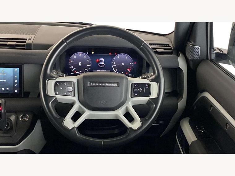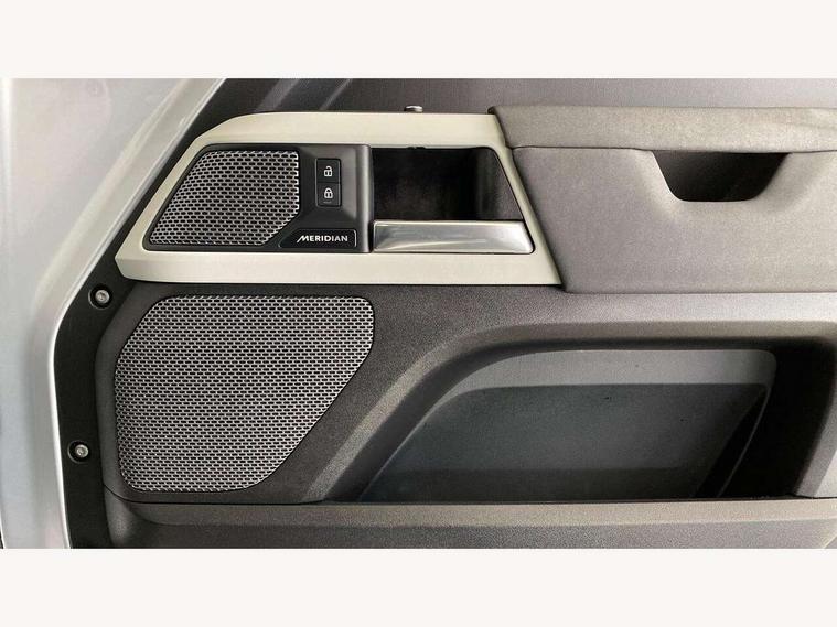 360 degree parking aid, 3D Surround Camera with 360 View, 180 Rear View, Front Traffic Detection, Forward Vehicle Guidance, Tow Hitch Assist and clear sight Ground View, Android Auto, Apple CarPlay, Assisted tailgate with soft close, Blind spot assist, Bluetooth system, Brake pad wear indicator, Clear exit monitor, Connected navigation pro, Driver condition monitor, Electric power assisted steering (EPAS), Lane keep assist, Push button start, Rear traffic monitor, Traffic sign recognition with adaptive speed limiter, Trip computer, Wade Sensing, 8 speed automatic transmission, All wheel drive system, Twin speed transfer box, DAB Radio (Digital Audio Broadcasting), Meridian 400w sound audio system with 11 speakers and subwoofer, Pivi pro connected, Automatic headlight levelling, Automatic headlights, Centre high mounted stop light, Electric heated/power fold door mirrors with approach lights and auto dimming driver side, Electric windows with one touch open/close and anti-trap, Follow me home lighting, Front fog lights, Heated rear window with timer, Heated windscreen, LED tail lights, Panoramic rear side glass, Privacy glass, Puddle lights, Rain sensing windscreen wipers, Rear fog lights, Rear wiper, Side hinged tailgate, Trailer stability assist, X-Dynamic badge, 12V power socket in loadspace, 3 seat bench in 2nd row, Alpine lights, Durable rubber cabin flooring, Durable rubber loadspace flooring, Footwell lights, Loadspace cover, Loadspace Hook, Multifunction steering wheel, Overhead stowage for sunglasses, Premium cabin lighting, Rear headrests, Rear ISOFIX, Rear reading lights, Single front passenger seat, Standard seat configuration, Storage glovebox, Sunvisors with illuminated vanity mirrors, Online pack with data plan - Defender, 5 x 3 point seatbelts, ABS, Brake hold function, Cornering brake control (CBC), Customer configurable autolock, DSC - Dynamic Stability Control, EBD - Electronic brakeforce distribution, Electric parking brake (EPB), Emergency brake assist, Emergency braking, ESP + traction control, Front airbags with passenger seat occupant detector, HDC - Hill descent control, Hill launch assist, Low traction launch, Remote for (e-Call, Optimised assistance call, InControl app, Climate, beep and flash and door), RSC - Roll stability control, Seat belt reminder, TPMS (Tyre pressure monitoring system), Alarm, Immobiliser, Intrusion sensor, Keyless entry, Locking wheel nuts,