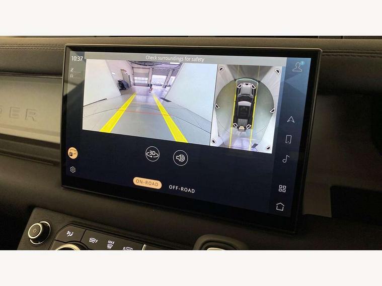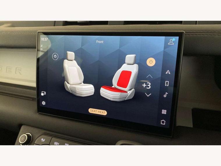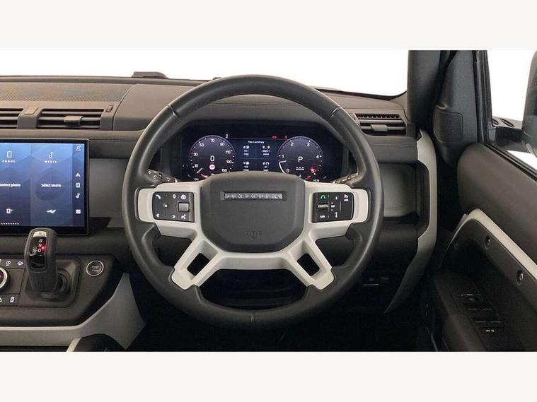 1 x USB-C (power only) & 1 x USB-C (power & data) in Row 1, 2 x USB-C in Row 2, 11.4" touchscreen, 2 x USB-C in Row 3, 360 degree parking aid, 3D Surround Camera with 360 View, 180 Rear View, Front Traffic Detection, Forward Vehicle Guidance, Tow Hitch Assist and clear sight Ground View, Adaptive cruise control, Android Auto, Apple CarPlay, Bluetooth system, Brake pad wear indicator, Clear exit monitor, Click and go integrated base unit, Connected navigation pro, Driver condition monitor, Electric power assisted steering (EPAS), Interactive driver display, Lane keep assist, Push button start, Traffic sign recognition with adaptive speed limiter, Trip computer, Wireless device charging, 8 speed automatic transmission, All wheel drive system, Twin speed transfer box, DAB Radio (Digital Audio Broadcasting), Meridian 400w sound audio system with 11 speakers and subwoofer, Pivi pro connected, Auto high beam assist, Automatic headlight levelling, Automatic headlights, Body coloured bonnet, Centre high mounted stop light, Electric heated/power fold door mirrors with approach lights and auto dimming driver side, Electric windows with one touch open/close and anti-trap, Follow me home lighting, Heated rear window with timer, Heated windscreen, LED tail lights, Premium LED headlights with signature DRL, Privacy glass, Puddle lights, Rain sensing windscreen wipers, Rear fog lights, Rear side wing doors, Rear wiper, Side hinged tailgate, Standard tail door, Trailer stability assist, 12 way heated semi powered front seats, 12V power socket in loadspace, 2 seat bench in 3rd row, 3 seat bench in 2nd row, Alpine lights, Durable rubber cabin flooring, Durable rubber loadspace flooring, Footwell lights, Front head restraints, Loadspace cover, Loadspace Hook, Multifunction steering wheel, No flat load floor storage, Overhead stowage for sunglasses, Premium non-leather steering wheel, Rear headrests, Rear ISOFIX, Rear reading lights, Resist gearshift, Single front passenger seat, Standard interior, Storage glovebox, Sunvisors with illuminated vanity mirrors, Twin front cupholders, Air suspension pack - Defender SE/HSE/X-Dynamic SE/X-Dynamic HSE, Non-smoker package, Online pack with data plan - Defender, 7 three point seatbelts, ABS, Brake hold function, Cornering brake control (CBC), Cross car beam in light cloud powder coat brushed finish, Customer configurable autolock, Driver and passenger airbags, DSC - Dynamic Stability Control, EBD - Electronic brakeforce distribution, Electric parking brake (EPB), Emergency brake assist, Emergency braking, ESP + traction control, Front airbags with passenger seat occupant detector, HDC - Hill descent control, Hill launch assist, Low traction launch, Power operated child locks, Remote for (e-Call, Optimised assistance call, InControl app, Climate, beep and flash and door), RSC - Roll stability control, Seat belt reminder, TPMS (Tyre pressure monitoring system), Alarm, Immobiliser, Intrusion sensor, Keyless entry, Locking wheel nuts, Secure tracker pro,
