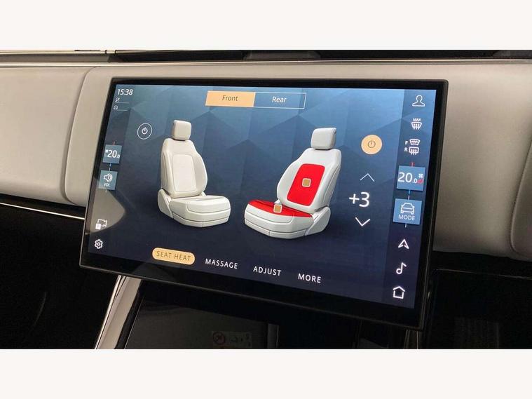 13.1" Touchscreen, 3D 360 degree surround camera with wade sensing, Adaptive cruise control with steering assist, Android Auto, Apple car play, Blind spot assist, Bluetooth connectivity streaming, Driver condition response, Eco mode, Front and rear parking aid, Head up Display, Interactive Driver display instrument cluster, Lane departure warning system, Lane keep assist, Park assist, Push button start, Rear collision monitor, Rear traffic monitor, Remote, Traffic sign recognition with adaptive speed limiter, Trip computer, Wireless device charging, 8 speed automatic transmission, Adaptive dynamics, All wheel drive system, Automatic access height, Home charging cable, Public charging cable, Terrain Response 2, Twin speed transfer box, DAB Radio (Digital Audio Broadcasting), Incontrol protect - SOS emergency call with automatic collision detection, optimised assistance call and Incontrol remote app essential, Pivi pro connected, USB/aux input socket, Adaptive brake lights, Automatic headlight levelling, Automatic headlights, Centre high mounted stop light, ClearSight interior rear view mirror, Digital LED headlights with signature DRL and image projection, Electric heated/power fold memory door mirrors with approach lights and auto dimming driver side, Electric windows with one touch open/close and anti trap, Flush deployable exterior door handles, Follow me home lighting, Front and rear recovery eyes, Headlight power wash, Heated rear window, Heated washer jets, Heated windscreen, Illuminated metal treadplates with Autobiography script, Integrated twin tailpipes, LED tail lights, Metal load space scuff plates, Rain sensing windscreen wipers, Rear animated directional indicators, Rear fog lights, Rear side wing doors, Rear wash/wipe, Remote window closing, Side repeater indicators in mirror, Sliding panoramic roof with electric sunblind, Trailer stability assist, Winter wiper park position, 22 way heated and ventilated front and power recline rear seats, massage electric memory front seats and front and rear winged headrests, 3 seat bench in 2nd row, 60:40 seats with power recline and loadthrough, Air quality sensor, Automatic air recirculation system, Bright metal foot pedals, Centre console with armrest, Configurable cabin lighting, Customer configurable single point entry, Driver's footrest, Easy boot loading, Ebony console door armrests and seatbelts, Electric adjustable steering column, Four zone climate control, Front and rear cupholders, Front door storage space, Front map lights, Front seat back map pockets, Front stowage pocket, Front/rear passenger grab handles, Gearshift paddles, Heated steering wheel, Isofix child seat preparation, Loadspace cover, Loadspace Hook, Loadspace light, Loadspace mounting provisions, Lockable glovebox, Luggage tie-downs in loadspace, Manual rear side window sunblinds, Multifunction steering wheel, Pollen filter, Power socket, Rear centre armrest, Rear ISOFIX, Single front passenger seat, Soft close doors, SV bespoke carpet mats, Three 12V accessory power outlets, Twin blade sunvisors with Illuminated vanity mirrors, Upper secondary glovebox, Online pack with data plan - Range Rover Sport, 3 point seatbelts on all seats, Anti-lock braking system (ABS), Brake pre-fill technology, Configurable autolock, Cornering brake control (CBC), DSC - Dynamic Stability Control, EBD - Electronic brakeforce distribution, Electric parking brake, Electronic traction control, Emergency braking, Front seatbelt pretensioners, Front side airbags, Height adjustable front seatbelts, Hill descent control, Hill launch assist, Illuminated seat belt buckles, Low traction launch, Occupant protection assist, Passenger seat occupant detector with front airbags, Power operated child locks, Roll stability control, Seatbelt warning, TPMS (Tyre pressure monitoring system), Immobiliser, Intrusion sensor, Keyless entry, Locking wheel nuts, Perimetric and volumetric anti theft alarm, Remote locking,
