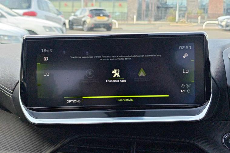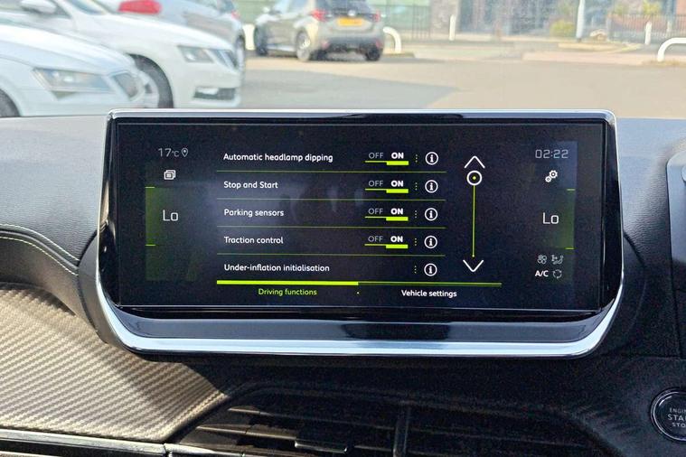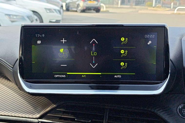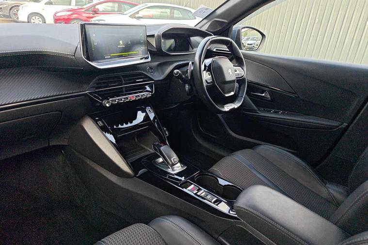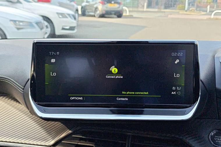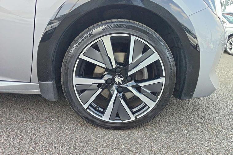 Bluetooth telephone facility, Driver attention warning, Exterior temperature indicator with ice warning, Front and rear parking sensors, Mirror screen with mirror link, apple carplay and android auto, Multi function trip computer, Peugeot connect SOS and assistance, PEUGEOT i-Cockpit with compact steering wheel, PEUGEOT i-Cockpit with configurable 3D headup instrument panel, Push button start, Smart phone docking station, Smartphone charging plate, Speed limit recognition and recommendation, Visio Park 1 with 180 degree Colour reversing camera, 2 front USB socket with USB-C, 2x USB sockets in rear, 6 speakers radio with mp3 compatible, DAB Digital radio, Voice recognition for radio, navigation and telephony features, 2 X Rear number plate lights, Automatic lights, Automatic windscreen wipers, Body coloured exterior door handles, Dark tinted Rear side and tailgate windows, Diamond Black roof, Electric front windows + one touch + anti-pinch, Electric rear windows with one touch/anti-pinch, Electrically adjustable, heated and power folding door mirrors, Extended diamond black rear spoiler, Follow me home headlights, Frameless electrochrome interior rear view mirror, Front windscreen wiper with magic wash cleaning system, Full LED headlights with smartbeam assist, Gloss black finish on B pillar, Gloss black rear cluster connecting strip, Gloss black wheel arch extensions, Gloss black window surround, GT Line model designation badging on C pillar, GT Line model designation badging on tailgate, Headlights left on audible warning, LED daytime running lights with 3 claw headlight with distinctive tooth design, LED side indicator lights integrated into door mirrors, Model designation badges front and rear, Nera black door mirror shells, Radiator grille - Dark chrome chequered and gloss black edge trim, Rear bumper with gloss black finish, Rear full LED 3D peugeot signature claw effect lights with daylight function, Rear lower bumper diffuser effect trim in gloss black, Rear reversing lights, Rear windscreen wiper triggered automatically in reverse gear, Stainless steel door sill scuff plates, Tailgate with heated rear windscreen and wiper blade, Twin chrome exhaust tailpipes, 1/3 to 2/3 split folding rear seats, 12V socket, 8 Colour personalisable ambient lighting, Aluminium pedals and foot rest, Automatic gear lever in full grain leather and satin chrome, Driver and front passenger seat manual adjustment in longitudinal and back rest angle, Driver and front passenger seat mechanical height adjustment, Driver and front passenger sport seats, Dual zone electronic climate control, Electric power steering with reach and rake adjustable steering column, Front and rear carpet mats in black with lime green stitch detail, Front centre armrest with storage compartment, Front LED interior light with 2 reading spotlights and rear interior light with timer, High centre console with 2 cup holders, ISOFIX child seat mounting points on passenger seat, Lime green contrast stitching to armrest, front centre console, door panels and dashboard facia, Map pockets on the backs of the front seats, Mistral full grain perforated leather steering wheel with aikinite stitch detail and satin chrome 'GT' emblem, Piano keys gloss black plated toggle switches to access main functions of the vehicle, Roof lining - Mistral black, Seatbelt unfastened on the move audible and visual alert for front and rear seats, 2x 2nd row ISOFIX child seat mountings, 3 rear 3 point seatbelts, ABS (Anti-lock Braking System) with EBD (Electronic Braking Distribution) and EBA (Emergency Braking Assistance), Active safety brake with night function/cyclists/pedestrians, Child locking functionality on rear doors, Driver and passenger airbags with Passenger airbag deactivation system, Driver/front passenger side airbags, Electric parking brake, ESP with Hill Assist, Front and rear curtain airbags, Front and rear disc brakes, Front optimised safety headrests and 3 x rear retractable headrests with height adjustable, Front three point retractable seatbelts with force limiters, Tyre pressure sensor, Automatic door locking when moving off, Automatic hazard light activation upon heavy brake application, Deadlock, Electronic code immobiliser, Thatcham Cat.1 alarm, Carbon effect Dashboard, front and rear door panel finish, 17" Camden diamond cut two tone alloy wheels, Space saver spare wheel,