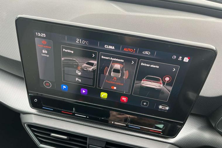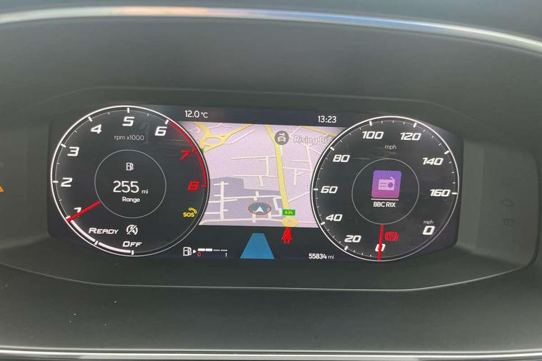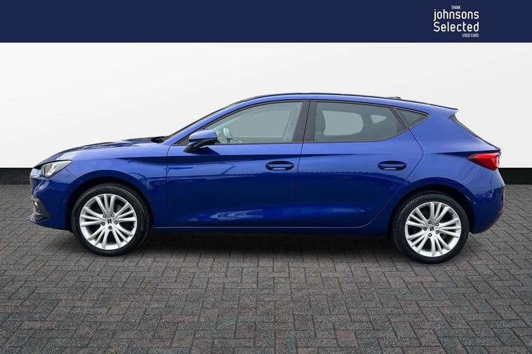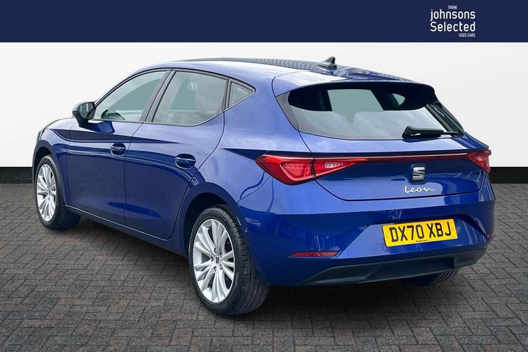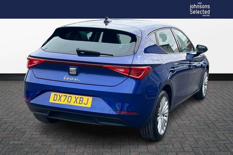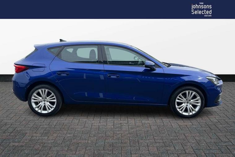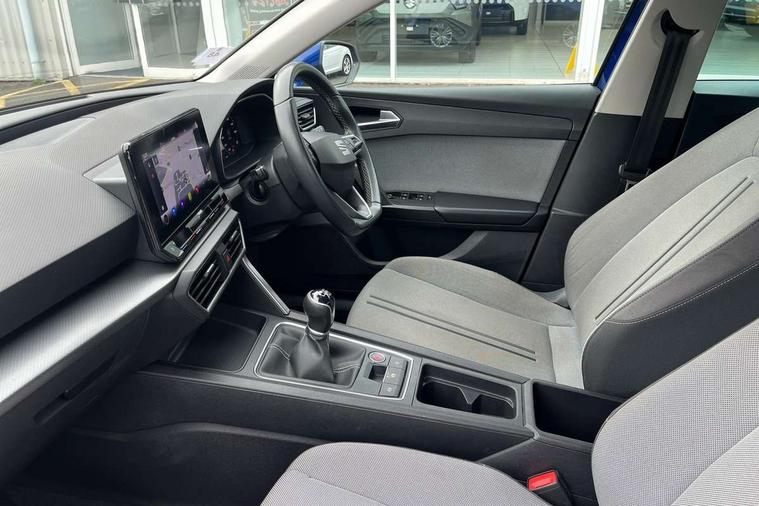 Cruise control with speed limiter, Digital cockpit, Front assist with forward collision warning braking reaction to vehicles, pedestrians and cyclists, Full link smartphone integration with Mirror Link, wireless Apple CarPlay and wired Google Android Auto, Lane keeping system, Lockable tailgate, Park assist (inc front/rear parking sensors), Power assisted speed sensitive electro-mechanical steering, RPM, trip computer, outside temp gauge, instrument light brightness, low fuel warning light, lights on reminder, gearshift indicator, Service interval indicator, Start/stop system with regenerative braking, Standard suspension, XDS electronic differential lock and dynamic traction support, Auxiliary input socket, Body colour door handles, Body coloured bumpers, Body coloured exterior mirrors with integrated LED indicators, Dark tinted rear windows, Electric front/rear windows, Electrically adjustable and heated door mirrors, LED front fog lamps with cornering function, LED headlights and LED tail lights, LED rear fog lamp, Manual dimming rear view mirror, Rear wash/wipe, Separate daytime running light with automatic headlight control, 12v power point in centre console, 60/40 split rear bench seat, Air conditioning, Cloth upholstery, Driver seat lumbar adjustment, Driver/passenger manual seat height adjustment, Dust/pollen filter, Folding boot cover, Front and rear height adjustable headrests, Front and rear reading lights X 4, Front seatback storage pockets, Height/reach adjust steering wheel, Interior lighting with LED lighting in sunvisor, glovebox and rear headlining, ISOFIX points in outer rear seats with top tether anchorage points, Leather flat bottomed, perforated steering wheel and leather gearstick, Luggage tie-down hooks, Sunvisors with covered illuminated mirror, Media system plus with navigation - Leon SE, 3 point seatbelts on all rear seats, ABS, Brake control system - ESC and brake booster, Child proof door locks, Driver and front passenger airbags with front passenger airbag de-activation, front side and curtain airbags, Electronic parking brake, Extended safety system - seat belt tensioner, window closure and hazard lights, Hill hold control, Rear disc brakes, Seat belt reminder for front and rear seats, Tiredness recognition system, driver alert system, Tyre pressure monitoring system, Anti theft alarm system with interior monitoring in cab, backup horn and towing protection, KESSY Go (Keyless start), Locking wheel bolts, Chrome interior detailing, 17" Dynamic tri-spoke alloy wheels with 91W tyres, Tool kit,