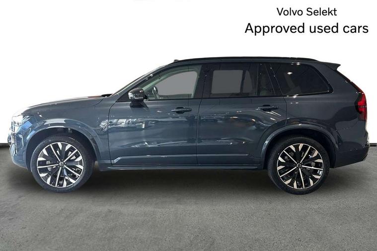 11.2" centre console touch screen, 12.3" Progressive Driver Display, 360 degree surround view parking camera with side proximity sensors, Adjustable steering wheel force, Apple carplay (wired), Bluetooth handsfree system, Driver alert control with lane keeping aid, Driver assistance (pilot assist and adaptive cruise control), Driver awareness - Blind spot information system with steer assist, cross traffic alert with autobrake and rear collision warning and mitigation, Driver Understanding System (Eye Tracking), Emergency call service, Front and rear park assist, Google Automotive Services - Navigation with Voice recoginition and google assistant, Handsfree power tailgate opening and closing, Intelligent speed assistance, Oncoming Lane Mitigation, PAS, Power operated tailgate, Service interval indicator, Speed sensitive steering, Trip computer, Volvo on call, Wireless/Inductive Mobile Phone Charging, 8 speed automatic transmission with start/stop + manual change functions, Active four C chassis - four corner adaptive dampers with electronic air suspension, DAB Radio (Digital Audio Broadcasting), Premium Sound by Bowers and Wilkins, dirac live, dolby pro logic II surround sound, 18 speakers/1400W output and fresh air subwoofer, Steering wheel remote infotainment controls, Adaptive brake lights with high level LED brake lights, Auto dimming interior + exterior mirrors, Auto folding and heated power door mirrors, Automatic headlight levelling system, Automatic matrix LED headlights with Adaptive shadow technology and Active high beam, incorporating Day running lights, Body colour bumpers, Dark tinted windows - rear side windows and rear screen, Front and rear power windows, Headlight cleaning system, High gloss black door mirrors and window surround, High gloss black front and rear bumper deco, High gloss black front grille and deco, Home safe and approach lighting, Integrated roof rails in high gloss black, Laminated side and rear windows, Power glass tilt and slide panoramic sunroof with sun curtain, Puddle lights, Rain sensor with automatic windscreen wiper activation, Rear side wing doors, Rear wash/wipe with intermittent wipe setting, Roof antenna, Roof spoiler, Visible VIN plate, 12V socket in luggage compartment, 2nd Row centre armrest with and cupholders, 3 Spoke tailored sport steering wheel with chrome trim, 4 zone electronic climate control with Clean zone air quality system + pollen filter, A-pillar parking ticket holder, Air conditioning for 3rd row of seats, Air purifier PM2.5, Ambient door and instrument panel lighting, B Pillar ventilation, Bright metal luggage scuff plate, Centre console cupholders and storage, Floor mats, Front and rear courtesy lights, Front and rear door pocket illumination, Front footwell and side step illumination, Front headrests, Front reading lights, Front seat cushion extensions, Front tunnel storage illumination, Glovebox compartment light, Heated front seats, Heated rear seats, Heated steering wheel, Height/reach adjustable steering column, Illuminated front and rear aluminium tread plates, Illuminated luggage compartment, Illuminated tailgate, Illuminated vanity mirrors + ticket holder, Inner door release handle illumination, Integrated sun curtains in rear doors, Isofix outer rear child seat preparation in 2nd row, Load cover, Load protection net, Lockable glovebox compartment, Luggage compartment divider with grocery bag holder, Outboard armrest with cupholder and storage for third row passengers, Power driver seat with multi directional lumbar support and memory for seat and exterior mirrors, Power folding 2nd row headrests, Power passenger seat with multi directional lumbar support and memory, Rear footwell and side step illumination, Rear headrests, Rear reading lights, Second row integrated child seat for centre seat, Single front passenger seat, Three 2nd row individual folding passenger seats with fore/aft adjustment, Two 3rd row individual folding passenger seats, Underfloor luggage compartment storage, 7 three point seatbelts, City safety with steering support includes pedestrian, cyclist detection, front collision warning with full auto brake and rear auto brake, Driver and passenger airbags, Drivers knee airbag, First aid kit, Front seats SIPS airbags, Hill descent control - off drive mode, Hill start assist, IC (Inflatable Curtains) - Full Length, Passenger airbag cut-off switch, Power child locks on rear doors, Power parking brake with auto hold function, Road sign information display, Run off Road Protection, Seatbelt reminder and pretensioners for all seats, SIPS (Side Impact Protection System), Slippery road and hazard light alert, Stability and Traction Control with Spin control, Engine Drag Control and Corner Traction Control, Tyre pressure monitoring system, Vehicle deceleration control with Anti-lock Brake System, Electronic Brake Distribution and Emergency Brake Assist, Warning triangle, WHIPS whiplash protection system - front, 2x Key integrated remote control central locking + deadlocking system and auto open/close windows, Anti-theft alarm including immobiliser/volume sensor + level sensor, Keyless drive includes keyless entry and keyless start, Locking wheel nuts, Tailored instrument panel and door tops, Tempa spare wheel and jack,