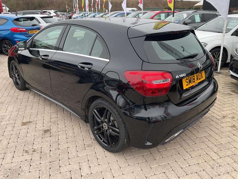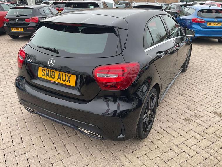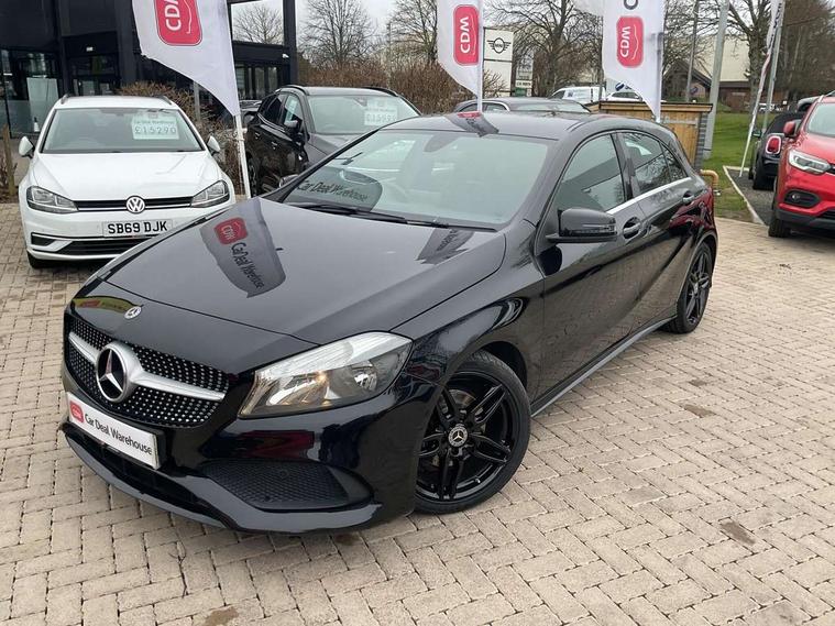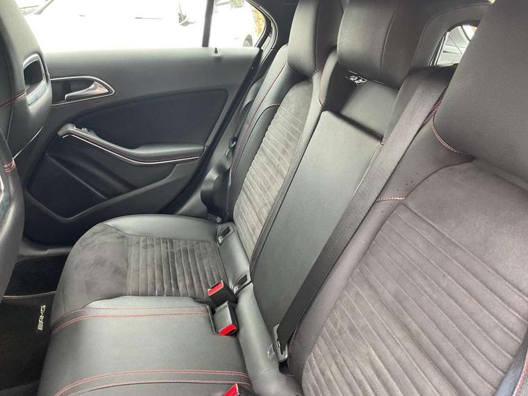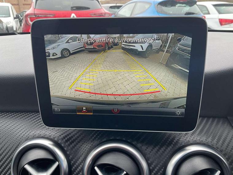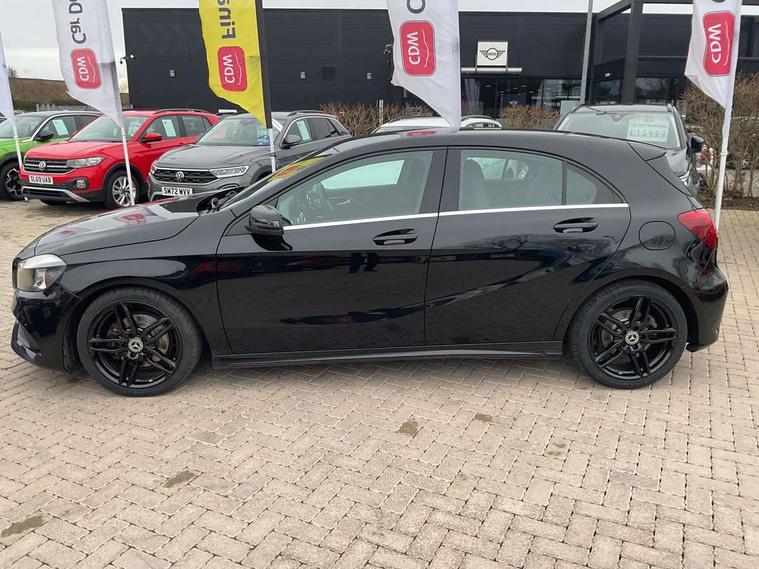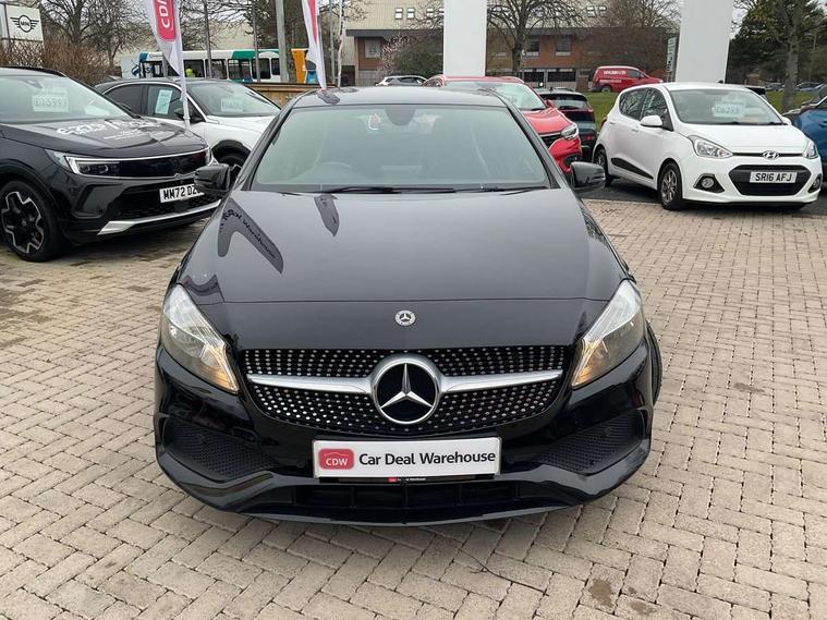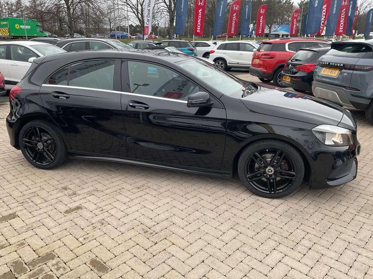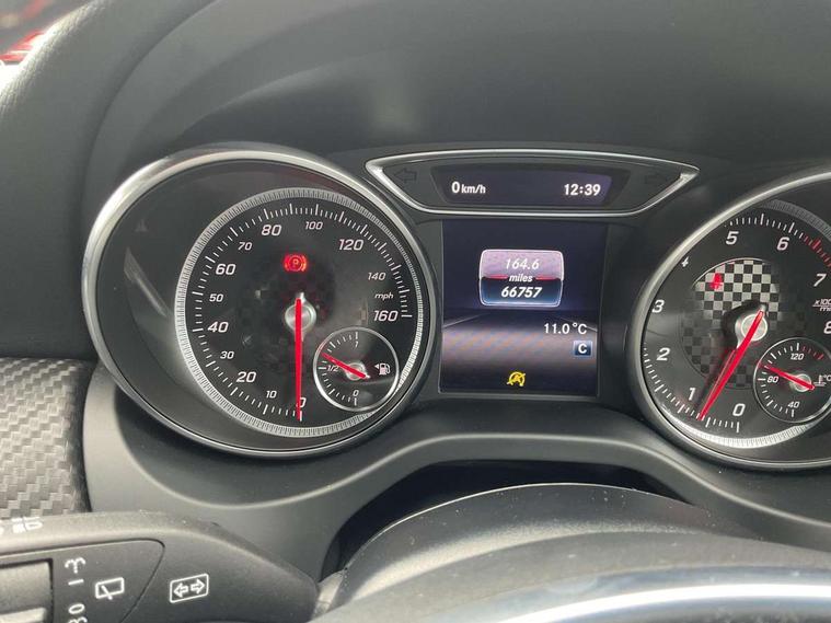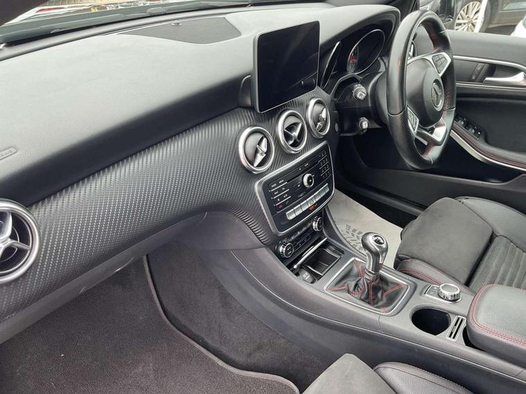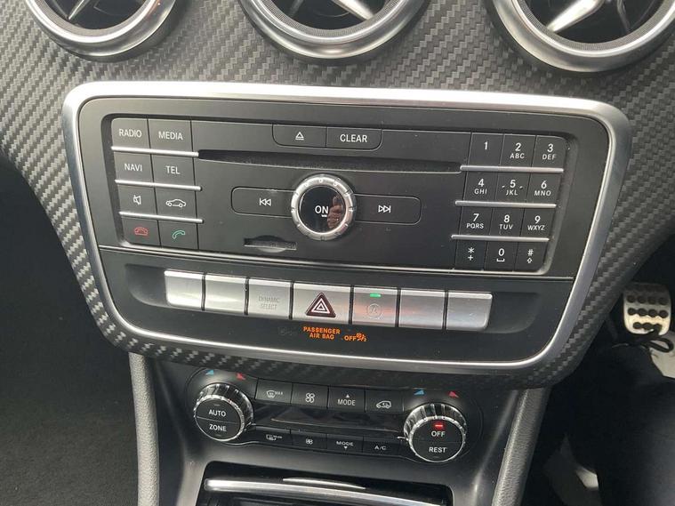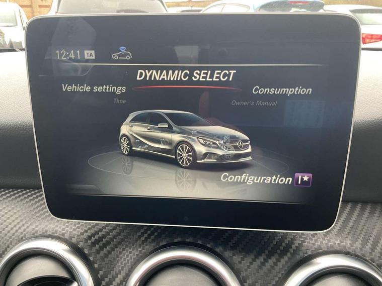 8" colour display screen, Attention assist, Bluetooth interface for hands free telephone, Bulb failure indicator, Collision prevention assist plus, DYNAMIC SELECT with a choice of driving modes (ECO, Comfort, Sport, Sport+ and Individual), External temperature gauge, Low fluid warning light, Reversing camera, Service indicator (ASSYST PLUS), Smartphone integration with Apple CarPlay, Speed dependent sports steering system, Speedtronic cruise control, Trip computer, Lowered suspension, Media interface, Mercedes Audio 20 radio/single CD + telephone keypad, USB port, Adaptive brake lights, AMG body styling, Body colour bumpers, Body colour door handles, Body colour side skirt, Daytime running lights, Diamond radiator grille with chrome pins and silver louvre + chrome insert, Electric adjustable heated door mirrors, Electric front windows, Electric rear windows, Headlamp assist, Heated rear window with timer, LED tail lights, Rain sensor windscreen wipers, Rear wiper, Twin Trapezoidal tailpipes, 1/3 to 2/3 split folding rear seats, 12V socket, 3 Spoke sports multifunction flat bottomed leather steering wheel, Ambient lighting, AMG floor mats with red stitching, Artico man-made leather/Dinamica upholstery, Auto Mercedes-Benz child seat recognition sensor, Black headlining, Brushed stainless steel sports pedals, Dual zone automatic climate control, Footwell lights, Front and rear reading lights, Front centre armrest with storage compartment, Front head restraints, Front sport seats, Height adjustable front seats, Height/reach adjustable steering column, Illuminated door sills, Illuminated glovebox, Illuminated storage compartment, Isofix rear child seat preparation, Leather gearshift, Load securing rings in luggage compartment, Luggage compartment cover, Rear head restraints, Storage compartment under load area floor, Sunvisors with illuminated vanity mirrors, Twin front cupholders, Seat comfort pack - A Class, 3 rear 3 point seatbelts, ABS with Brake Assist, Active bonnet, Adaptive brake system, Brake calipers with Mercedes-Benz lettering + perforated brake discs, Child proof door locks, Crash responsive emergency lighting, Drivers knee airbag, Dual stage driver/passenger airbags, Electronic parking brake, ESP with ASR, Front and rear seatbelt reminder, Front head airbags, Front passenger seat occupancy sensor, Front side airbags, Hill start assist, Tyre pressure monitoring system, Warning triangle and first aid kit, Window airbags, Alarm system/interior protection/immobiliser, Remote central locking, Carbon effect trim, Chrome air vent surrounds, Tirefit sealant with electric air pump,