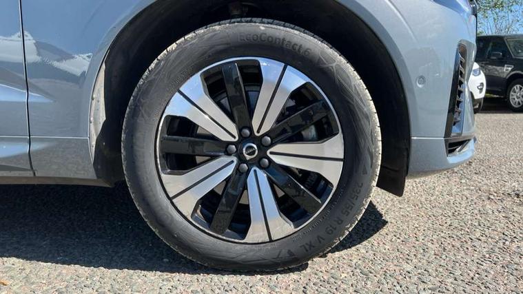 12.3" Progressive Driver Display, 360 degree surround view parking camera with side proximity sensors, 9" centre console touch screen, Adjustable steering wheel force, Apple carplay (wired), Bluetooth handsfree system, Drive mode settings, Driver alert control with lane keeping aid, Driver assistance (pilot assist and adaptive cruise control), Driver awareness - Blind spot information system with steer assist, cross traffic alert with autobrake and rear collision warning and mitigation, Emergency services call system, Front and rear park assist, Google Automotive Services, Oncoming Lane Mitigation, PAS, Service interval indicator, Speed limiter, Speed sensitive steering, Trip computer, Volvo on call with App, Wireless/Inductive Mobile Phone Charging, 3.7 kW monophase on board charger, 7m 10amp Charge Cable with 3 Pin Plug and 7m 1-Phase 16amp Type 2 / Mode 3 Charge Cable, 8 speed automatic transmission with start/stop + manual change functions, Dynamic chassis, Electric rear axle drive, Recharging port located in nearside front wing, DAB Digital radio, Low speed exterior sound speaker, Premium Sound by Harman Kardon, dirac unison, dolby pro logic II surround sound, 13 speakers/600W output and fresh air subwoofer, Steering wheel remote infotainment controls, Adaptive brake lights with high level LED brake lights, Auto dimming interior + exterior mirrors, Automatic headlight levelling system, Automatic LED Headlights + Active high beam incorporating daytime running lights, Electric adjustable/heated/auto power folding door mirrors, Electric front+rear windows, Heated front windscreen, High gloss black door mirrors and window surround, High gloss black front and rear bumper decoratives, High gloss black mesh front grille with high gloss black surround, Home safe and approach lighting, Integrated roof rails in high gloss black, Power glass tilt and slide panoramic sunroof with sun curtain, Puddle lights, Rain sensor with automatic windscreen wiper activation, Rear side wing doors, Rear wiper, Roof antenna, Roof spoiler, Tinted windscreen, Visible VIN plate, 12V socket in front tunnel console and luggage compartment, 2 zone electronic climate control with Clean zone air quality system and pollen filter, 3 seat bench in 2nd row, A-pillar parking ticket holder, Air purifier particulate matter (PM) 2.5 filter, B Pillar ventilation, Bright metal luggage threshold, Centre console cupholders and storage, Charcoal floor mats, Front and rear courtesy lights, Front and rear door pocket illumination, Front cupholder illumination, Front footwell illumination, Front reading lights, Front seat cushion extensions, Glovebox compartment with illumination, Head restraints for all seats, Heated front seats, Heated steering wheel, Height/reach adjustable steering column, Illuminated luggage compartment, Illuminated vanity mirrors + ticket holder, ISOFIX attachment on outer rear seats, Load cover, Load protection net, Multi directional lumbar support, Power driver seat with memory + exterior mirrors memory, Power height adjustable passenger seat, Rear armrest with cupholder, Rear footwell and front and rear side step illumination, Rear seat concealed storage, Recharge aluminium tread plates, Single front passenger seat, Tailgate illumination and ambient door lighting, Underfloor stowage compartment, Versatile split folding rear seat - 60/40, 5 three point seatbelts, City safety with steering support with Pedestrian + cyclist + front collision warning with full auto brake and rear auto brake, Drivers knee airbag, Dual stage driver/passenger airbags, Electronic parking brake with auto hold, First aid kit, Front seats SIPS airbags, Hill descent control - Off-road drive mode, Hill start assist, IC (Inflatable Curtains) - Full Length, Passenger airbag cut-off device, Power child locks on rear doors, Road sign information display, Run off Road Mitigation, Run off Road Protection, Seatbelt reminder and pretensioners, SIPS (Side Impact Protection System), Slippery road and hazard light alert, Stability and Traction Control with Spin control, Engine Drag Control and Corner Traction Control, Tyre pressure monitoring system, Vehicle deceleration control with Anti-lock Brake System, Electronic Brake Distribution and Emergency Brake Assist, Warning triangle, WHIPS whiplash protection system - front, Anti-theft alarm including immobiliser/volume sensor + level sensor, Care key with user defined top speed, Key integrated remote control central locking + fuel flap with deadlocking system and auto open/close power windows, Keyless Drive (includes Keyless Entry and Keyless Start) with Handsfree Tailgate Opening/Closing, Locking wheel nuts, Private locking for tailgate, Tyre sealant kit + 12v compressor,