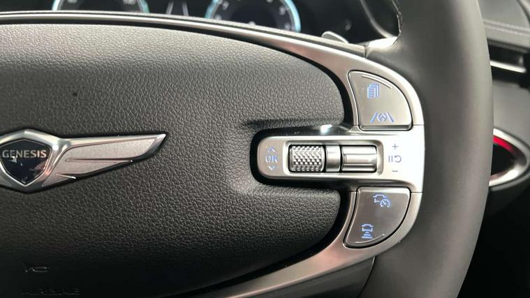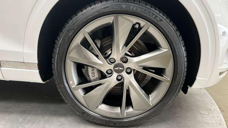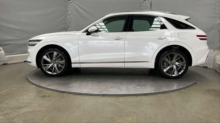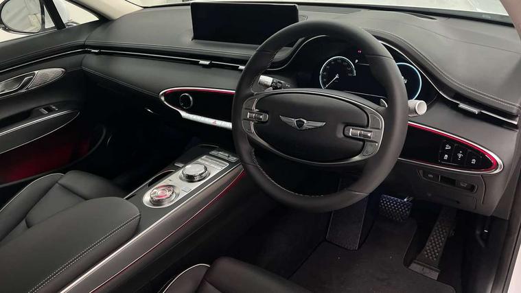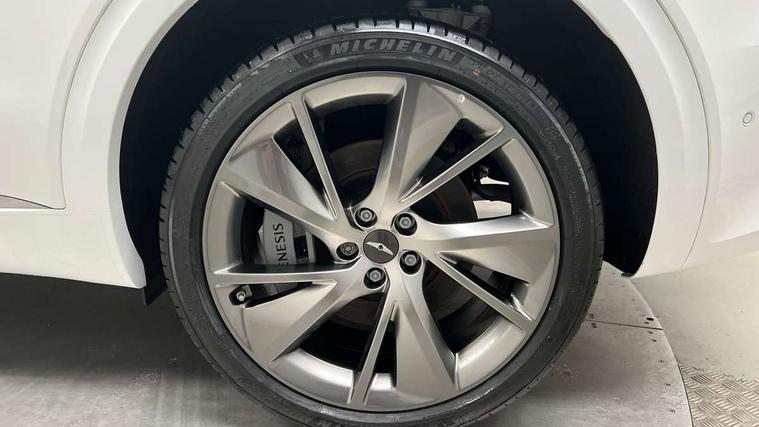 8" Dashboard cluster TFT display, Blind spot collision avoidance assist rear (BCA-R), Bluetooth connection with voice recognition, Drive mode select, E-call, Electric rear tailgate opening and height adjustable, Intelligent speed limit assist (ISLA), Lane Following Assist (LFA), Lane keeping assist (LKA), Lighting backup guidelines, Manual speed limit assist (MSLA), PAS, Rear parking sensors with button, Rear view camera with dynamic guidelines on screen, SCC smart cruise control with stop and start, Preview electronically controlled suspension, 14.5" Navi screen + DAB radio + Phone mirroring + Genesis connected, 2 port USB front charger console, 2 USB rear, Steering wheel audio remote control, Acoustic windshield film, Automatic headlights with dusk sensor, Automatic window defogger, Body coloured bumpers, Dual front LED low and high projection headlamps with high beam, Electrochromic inside rear view mirror, Electrochromic outside rear view mirrors, Laminated front side glass, LED daytime running lights, LED rear combination lamps, LED rear fog lamps, LED rear stop lamp, Outside door handles chrome coating, Outside electrical adjustment and heated rear mirror, Outside electrical folding rear mirror, Puddle lamps with logo, Rain sensor, Rear side wing doors, Rear wash/wipe, Standard appearance, Standard rear side backlight glass, 2 way electric height adjust driver's seat, 2 way electric height adjust front passenger seat, 2nd row heating floor output, 3 seat bench in 2nd row, 3 zone auto air conditioning and temperature control in rear, 4 way electric driver lumbar support, 4 way electrically adjustable driver and passenger seat with walk-in device, 4 way manual headrest adjust for front seats, 60:40 split back folding rear seats, Aluminium interior garnish, Ambient lighting, Console storage box, Console ventilation duct, Cup holder at centre armrest, Finger print reader authentication, Front air condition with dual zone adjustment, Heated steering wheel, Leather steering wheel, Leatherette console box, Lever type paddle shifter, Memory function for driver seat, Power outlet for rear (lower centre console), Power outlet for trunk, Power tilt telescopic steering wheel with memory seat, Premium air filter, Rear headrests, Rear luggage cover, Single front passenger seat, Trailer pack - GV70, 3x3 point rear seat belts, ABS + ESC + DBC + HAC + TSA (Trailer Stability Assist) + MCB (Multi Collision Brake), Driver and passenger airbag, Driver knee airbag, Electronic parking brake with auto hold, FCA - J Forward collision avoidance system with junction and crossing, Forward collision avoidance system (car/pedestrian/bicycle), Front brake ventilated disc 360mm, Front center side airbags, Front thorax and pelvis + curtain airbags, ISOFIX rear child anchor with upper and lower, Rear brake ventilated disc 345mm, Rear seat alert without sensors, Tyre pressure monitoring system, Central door lock driver's and passenger's control, Immobiliser, Manual child lock + Deadlock + Cat 1 alarm, Smart key/button start, Leatherette dashboard, 21" Dark sputtering design A alloy wheels, Michelin tyres, Space saver spare wheel, Summer tyres pilot sport 4,