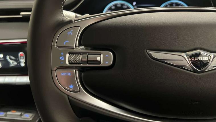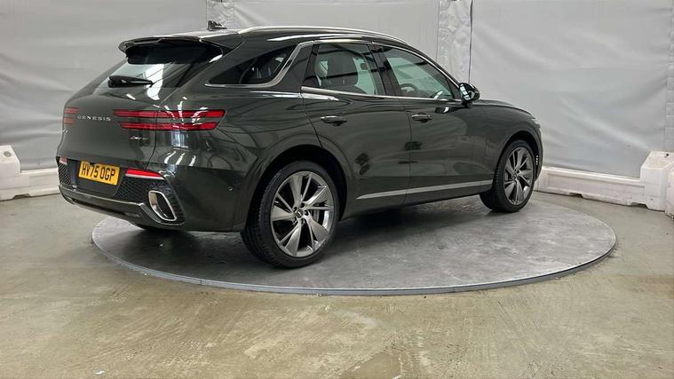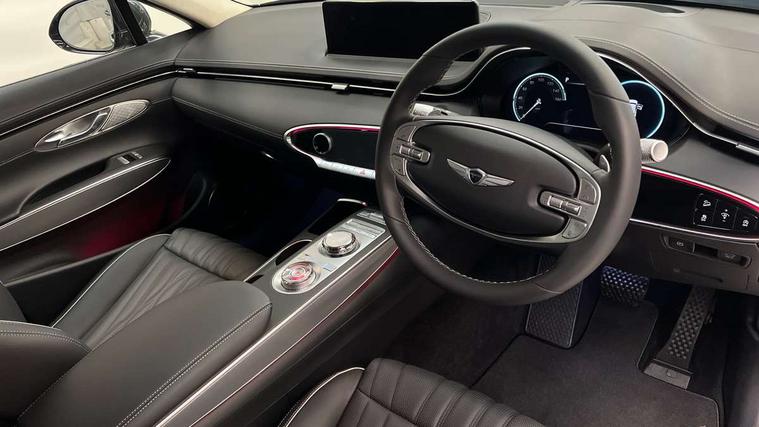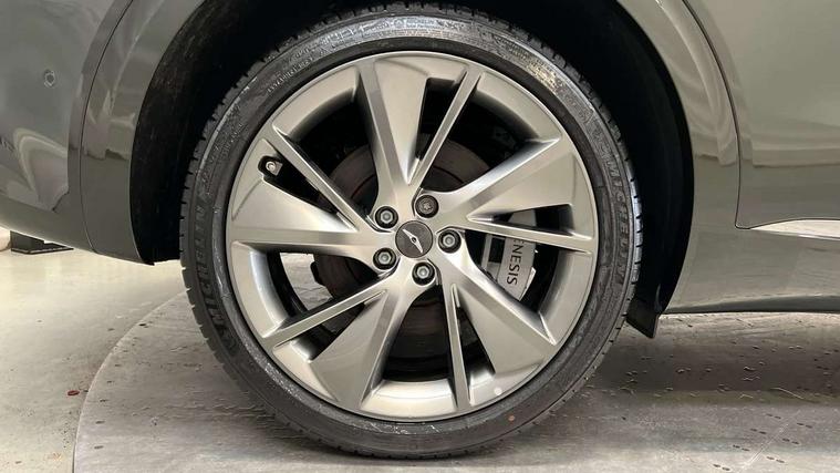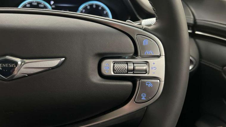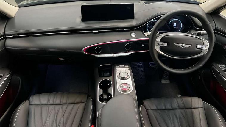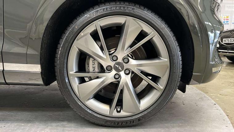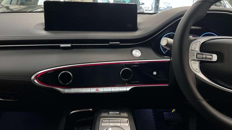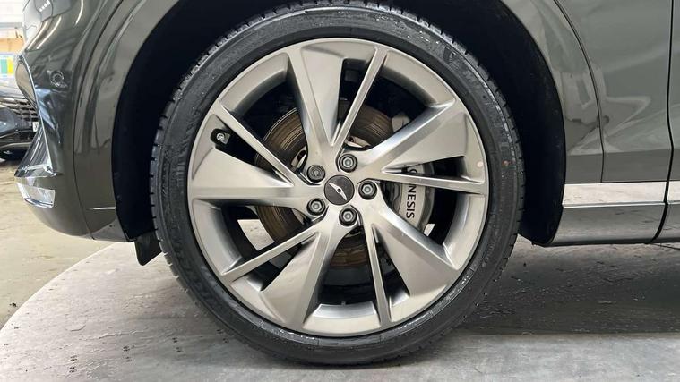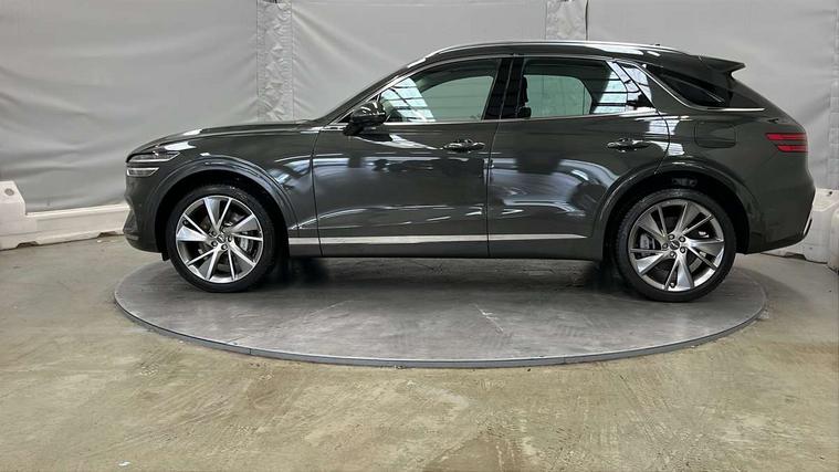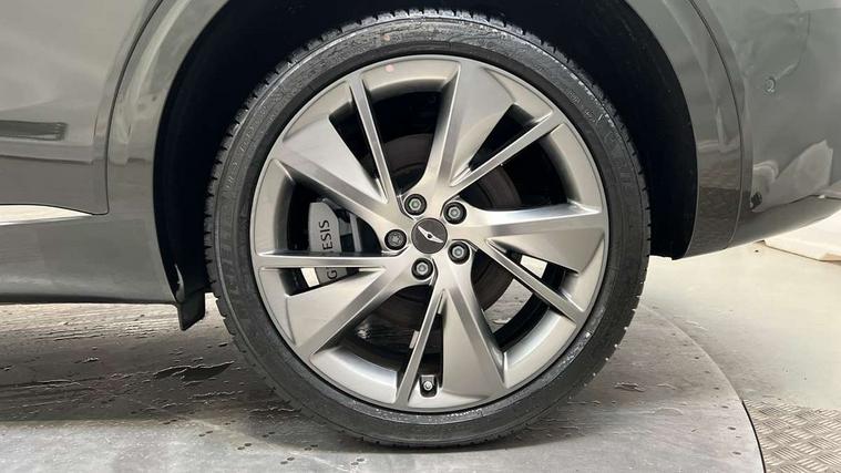 8" Dashboard cluster TFT display, Blind spot collision avoidance assist rear (BCA-R), Bluetooth connection with voice recognition, Drive mode select, E-call, Electric rear tailgate opening and height adjustable, Intelligent speed limit assist (ISLA), Lane Following Assist (LFA), Lane keeping assist (LKA), Lighting backup guidelines, Manual speed limit assist (MSLA), PAS, Rear parking sensors with button, Rear view camera with dynamic guidelines on screen, SCC smart cruise control with stop and start, Preview electronically controlled suspension, 14.5" Navi screen + DAB radio + Phone mirroring + Genesis connected, 2 port USB front charger console, 2 USB rear, Steering wheel audio remote control, Acoustic windshield film, Automatic headlights with dusk sensor, Automatic window defogger, Body coloured bumpers, Dual front LED low and high projection headlamps with high beam, Electrochromic inside rear view mirror, Electrochromic outside rear view mirrors, Laminated front side glass, LED daytime running lights, LED rear combination lamps, LED rear fog lamps, LED rear stop lamp, Outside door handles chrome coating, Outside electrical adjustment and heated rear mirror, Outside electrical folding rear mirror, Puddle lamps with logo, Rain sensor, Rear side wing doors, Rear wash/wipe, Standard appearance, Standard rear side backlight glass, 2 way electric height adjust driver's seat, 2 way electric height adjust front passenger seat, 2nd row heating floor output, 3 seat bench in 2nd row, 3 zone auto air conditioning and temperature control in rear, 4 way electric driver lumbar support, 4 way electrically adjustable driver and passenger seat with walk-in device, 4 way manual headrest adjust for front seats, 60:40 split back folding rear seats, Aluminium interior garnish, Ambient lighting, Console storage box, Console ventilation duct, Cup holder at centre armrest, Finger print reader authentication, Front air condition with dual zone adjustment, Heated steering wheel, Leather steering wheel, Leatherette console box, Lever type paddle shifter, Memory function for driver seat, Power outlet for rear (lower centre console), Power outlet for trunk, Power tilt telescopic steering wheel with memory seat, Premium air filter, Rear headrests, Rear luggage cover, Single front passenger seat, Trailer pack - GV70, 3x3 point rear seat belts, ABS + ESC + DBC + HAC + TSA (Trailer Stability Assist) + MCB (Multi Collision Brake), Driver and passenger airbag, Driver knee airbag, Electronic parking brake with auto hold, FCA - J Forward collision avoidance system with junction and crossing, Forward collision avoidance system (car/pedestrian/bicycle), Front brake ventilated disc 360mm, Front center side airbags, Front thorax and pelvis + curtain airbags, ISOFIX rear child anchor with upper and lower, Rear brake ventilated disc 345mm, Rear seat alert without sensors, Tyre pressure monitoring system, Central door lock driver's and passenger's control, Immobiliser, Manual child lock + Deadlock + Cat 1 alarm, Smart key/button start, Leatherette dashboard, 21" Dark sputtering design A alloy wheels, Michelin tyres, Space saver spare wheel, Summer tyres pilot sport 4,