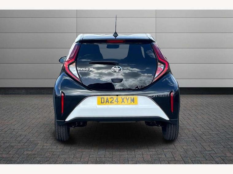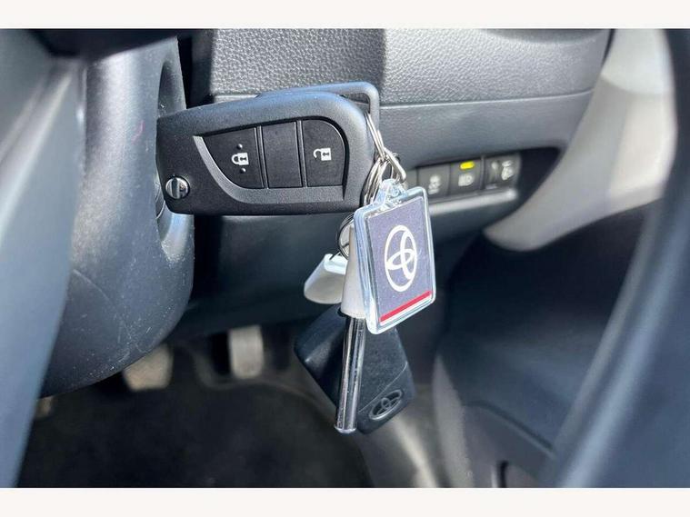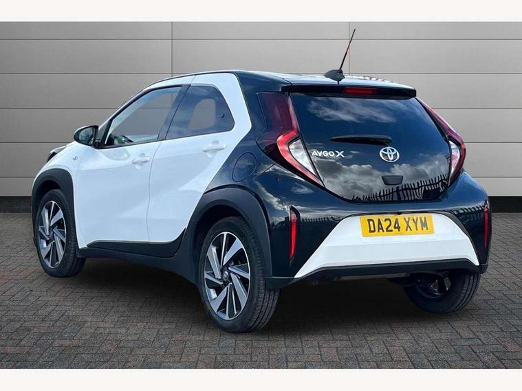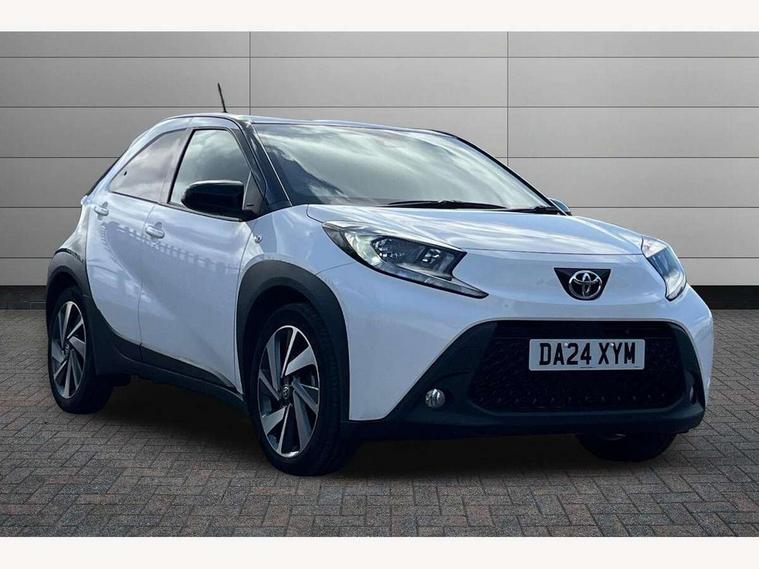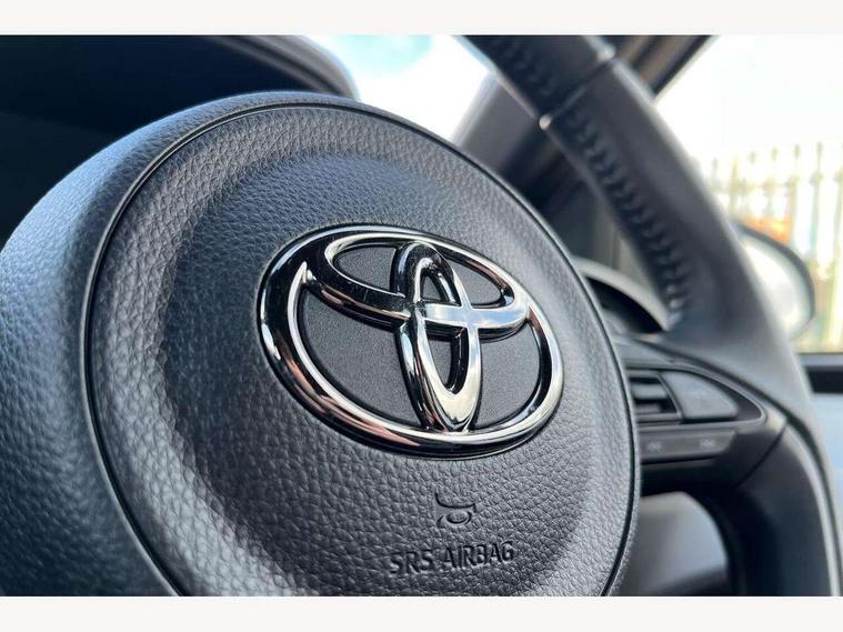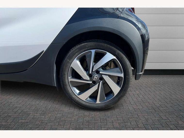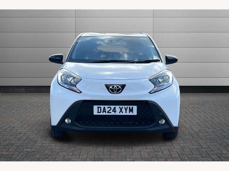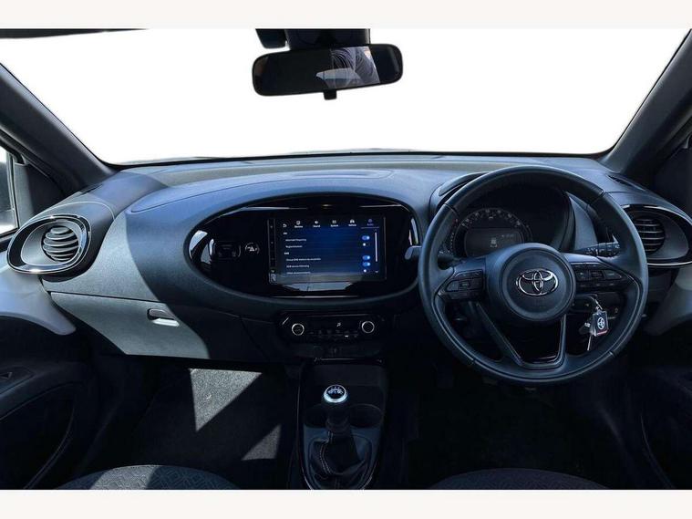 4.2" TFT colour screen, Adjustable speed limiter, Analogue speedometer, Bluetooth connectivity, Digital tachograph, Driver attention alert system, eCall emergency call system, Electric power steering, Intersection turn assist, Key reminder warning, Noise reduction kit, Pre collision system with emergency steering assist, Reversing camera with static guide lines, Smart phone integration with Apple car play/Android Auto, Speed limit display, Start and stop, Vehicle Stability Control (VSC), 4 speakers, 9" HD multimedia display touch screen with Toyota smart connect, DAB digital audio broadcast, USB connector, Auto headlights, Auto wipers, Automatic headlights cut-off, Bicycle towing hook, Black contrast roof, Black side protection mouldings, Black wheel arch mouldings, Body colour door handles, Body coloured front bumper, Boot door scuff plate, Eclipse black rear bumper, Electric heated door mirrors, Follow me home headlights, Front fog lights, Front power windows, Gloss black door mirrors, Gloss black upper front grille, Headlight cut-off reminder, LED daytime running lights, LED front light guide, LED High mounted stop lamp, Manual day/night rear view mirror, Manual headlight levelling, Pagoda roof, Power adjustable door mirrors, Power back door, Privacy glass, Projector halogen headlights, Rain sensor, Rear combination lights LED bulb type, Rear side wing doors, Rear windscreen defogger, Rear windscreen wiper, Short antenna, Variable intermittent windscreen wipers, 12v power outlet - front, 2 seat bench in 2nd row, 3 spoke leather steering wheel, 50/50 split folding rear seat, Adhesive roof headlining, Adjustable speed limiter switch on steering wheel, Audio and telephone switches on steering wheel, Auto air conditioning, Black insert on steering wheel, Black roof lining, Boot light, Centre room light, Chrome interior door handles, Chrome surround on air conditioning buttons, Clean air filter, Console box storage in body color, Fabric upholstery, Floor mats, Front and rear cup holders, Front head rest deco art, Front head restraints, Height adjustable driver seat, Intelligent adaptive cruise control switch on steering wheel, ISOFIX child restraint system on rear seats, Lane departure alert switch on steering wheel, Leather gearshift knob, Manual tilt steering wheel, Manually reclining and sliding driver seat, Manually reclining and sliding front passenger seat, Multimedia switches on steering wheel, Pollen filter, Rear door pockets, Rear head restraints, Satin silver insert on gear shift knob, Single compartment glovebox with lights, Single front passenger seat, Soft tonneau cover, Sun visors with mirror on driver and passenger side, Voice recognition switch on steering wheel, Toyota safety sense pack - Aygo X, Anti lock braking system + Electronic brake force distribution, Child safety door lock, Emergency brake light signal (EBS), Hill start assist control (HAC), Passenger airbag on/off switch, Seat belt reminder for front and rear seats, Supplement restraints system (SRS) - 6 airbags, Traction control, Tyre pressure warning system, Immobiliser, Remote power door locks, Black wheel centre caps, Tyre repair kit,