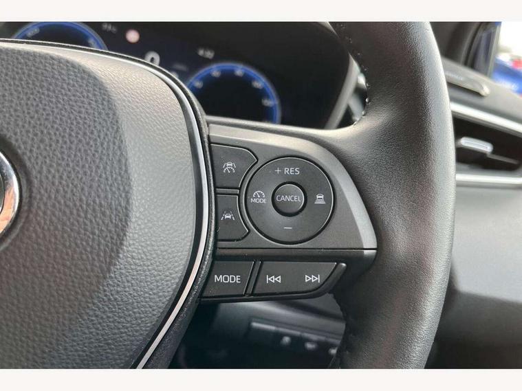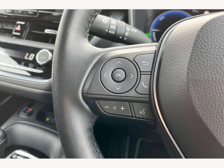 10.5" Multimedia display screen, Bluetooth telephone connectivity, Connected car functionality upgrade, tracker, remote status and e-care, Drive mode select (Eco, Normal), E-call, Electrically assisted power steering, EV drive indicator, Front and rear parking sensors with auto brake, Full Digital 12.3" TFT Digital Combimeter, Key reminder warning, Lane Departure Alert (LDA) switch on steering wheel, Memory on adjustable speed limiter, MyT connected services, Proactive driving assist (PDA), Reversing camera, Smart entry and push button start, Smartphone integration with Apple CarPlay and wired android auto, Tailgate, Toyota remote services, Toyota smart connect navigation, Wireless charger, Gasoline particulate filter, Vehicle Stability Control (VSC), 6 speakers, AM/FM radio, DAB Digital radio, Front USB-C in dashboard, Smart voice assist/ Voice recognition, USB and Aux in connectors + 12V front outlet, Anti-jam protection on power windows, Auto up and down function on all power windows, Automatic headlights with high beam assist, Black centre and side air vents, Black meshed front grille, Black toyota logo in front, Body coloured bumpers, Body coloured door mirrors, Body coloured front spoiler, Body coloured outside door handles, Body coloured rear under guard, COROLLA alloy door scuff plates, Follow me home headlights, LED daytime running lights, LED front fog lights, LED High mounted stop light, LED multi beam headlights, LED multi reflector in headlights, LED rear combi lights with LED lightguide, Manual day/night rear view mirror, Manual headlight levelling system, New grille pattern, Noise reduction layer on windscreen, Piano black diffuser, Power adjustable heated door mirrors, Power front windows, Power rear windows, Rain sensor, Rear side wing doors, Rear window defogger, Rear window wiper, Satin chrome insert on front air vents, Satin chrome insert on front door assist grips, Shark fin antenna, Time adjustment on intermittent wiper, Turning signal integrated indicators in door mirrors, Unique lower skirt, Unique side rocker with black insert, UV-filter on driver and passenger windows, 2 Shopping bag hooks in luggage compartment, 3 rear headrests, 3 seat bench in 2nd row, 3 spoke leather steering wheel with satin insert + gear knob, 4 tie down hooks in luggage compartment, 60/40 split folding rear seat, Adaptive cruise control (ACC) switch on steering wheel, Adjustable speed limiter switch on steering wheel, Audio, multimedia and telephone switches on steering wheel, Black armrest on centre console box, Black gear shift console, Boot light, Centre room light, Driver and front passenger personal light, Driver and passenger assist grip, Driver and passenger sun visor with mirror and light, Dual zone automatic air conditioning with ECO mode switch, Fabric upholstery, Front and rear cup and bottle holders, Front door pockets, Front head restraints, Front passenger seat, Front sliding fabric armrest, Heated seats, Illuminated entry system in room lamp, ISOFIX seat fixing (2 fixings on rear outer seats), Leather gear shift with satin chrome on gear shift console, Manual height adjustable for driver and front passenger seat, Manually tilt with sliding driver and front passenger seat, Parcel shelf, Passenger seat back pocket, Pollen filter, Power adjustable lumbar support on driver seat, Power window switches with satin chrome inserts, Rear armrest with 2 cupholders, Rear passenger coat hooks (2), Remote air conditioning, Satin chrome inside door handles, Satin chrome surround on heater control panel, Satin chrome surround on speedometer, Sliding armrest on centre console box, Slow opening glovebox with lights, Textile floor mats, Tilt/telescopic steering column, Voice recognition switch on steering wheel, Whiplash Injury Lessening (WIL) feature (active headrest) for seats, Toyota safety sense 3 pack - Corolla, 3x3 point rear seatbelts, Adjustable driver and front passenger seat belt extender to top anchor point, Anti lock braking system + Electronic brake force distribution, Brake assist function, Child locks on rear doors, Downhill Assist Control (DAC), Electronic parking brake, Emergency brake light signal (EBS), Front passenger airbag on/off switch, Front seatbelt reminder, HAC - Hill start assist control, Rear seat belt reminder, Seatbelt pretensioners and force limiters, Supplemental restraint system (SRS) 7 airbags - dual driver, dual side curtain, side impact and driver knee airbags, Traction control, Tyre pressure warning system, Acoustic vehicle alert system (AVAS), Alarm with motion sensor and immobilizer, Power passenger window lock, Remote central locking + deadlocks, Satin chrome dash trim, Soft touch texture on upper dashboard, Stitching on lower dashboard, 16" 5 double spoke alloy wheels, Tyre repair kit, Unique wheel finish with red wheel cap,
