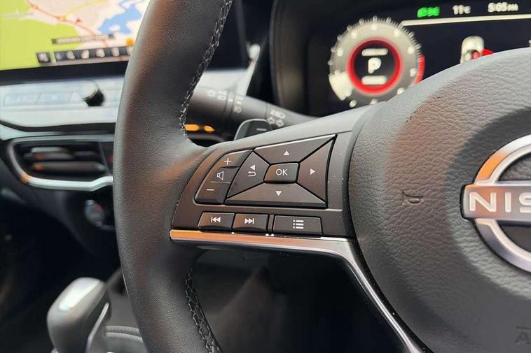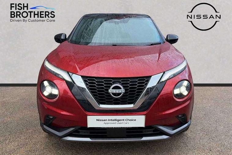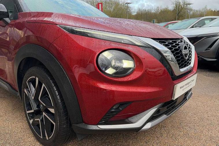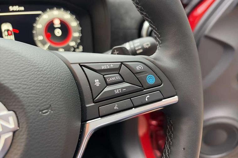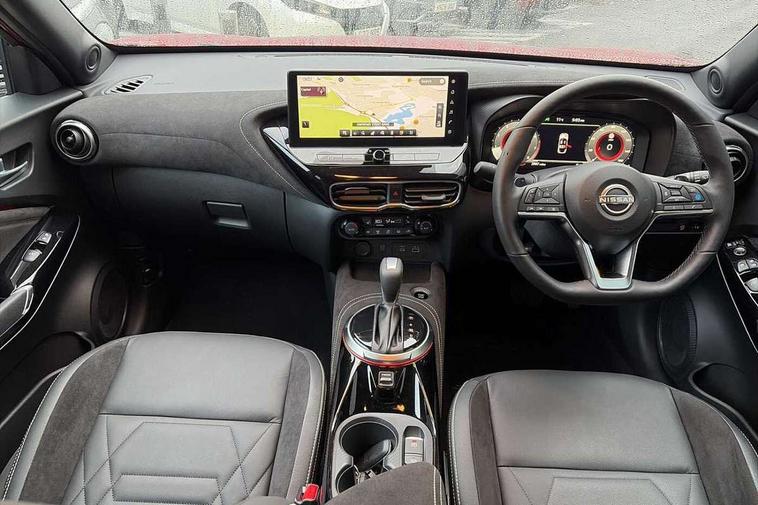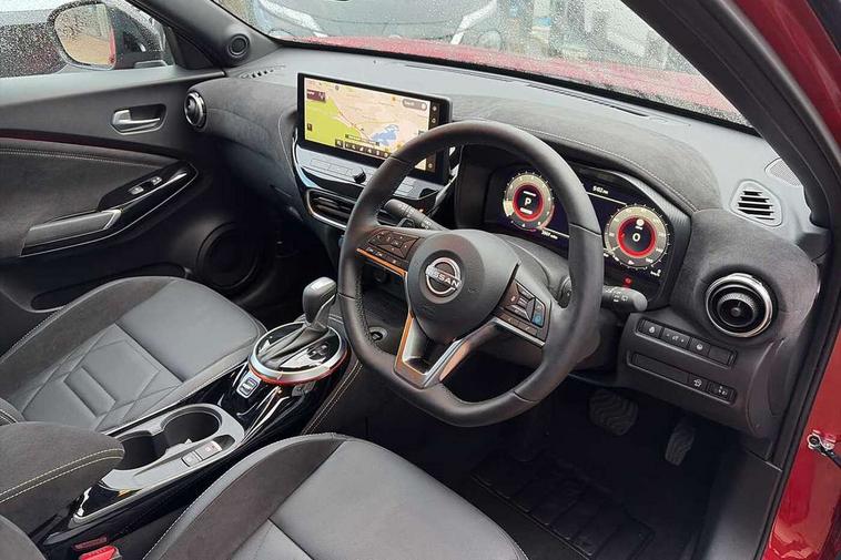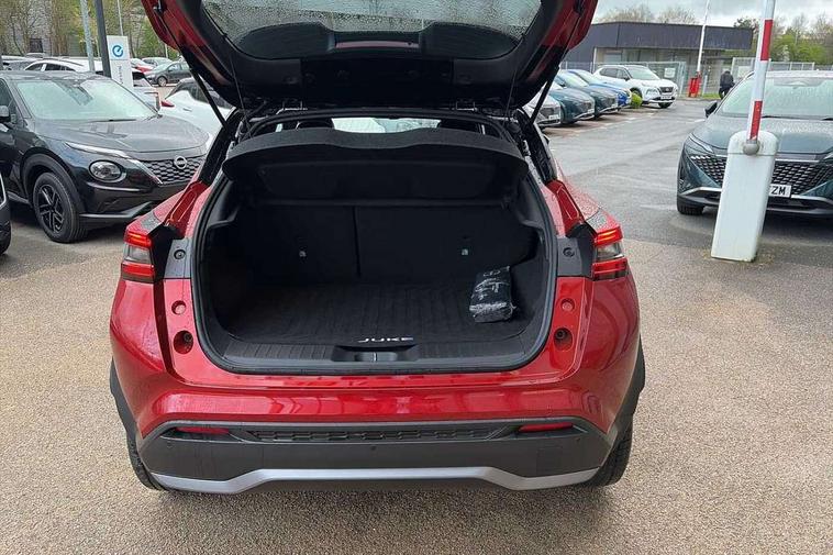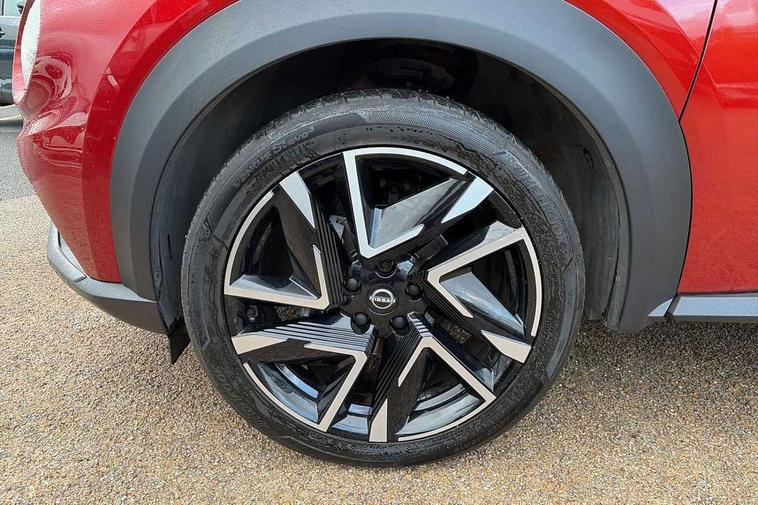 12.3" full colour TFT screen combimeter, Drive modes select (Eco, normal and sport), Emergency and breakdown call, Front parking sensor, Idle start/stop system, Intelligent driver alert system, Intelligent lane intervention, Lane departure warning system, Nissan connect 12.3" touch screen entertainment system, Nissan connect nav with TomTom traffic, Nissan connect services, Outside temperature sensor, Power Steering, Rear parking sensor, Stop/start button, Traffic sign recognition, Trip computer, Voice recognition, WiFi connectivity, Wireless Apple CarPlay and Google Android auto, Wireless Smartphone charger, 10 Bose speakers 8 speakers and 2 headrest speakers for driver/passenger seats, 2 X Rear console USB port, Bluetooth system, USB, Aux-in and 12V socket, Bose personal plus audio system, DAB Digital radio, Auto dimming frameless rear view mirror, Automatic hazard signal with emergency stop signal, Body colour door handles, Electrically adjustable door mirrors with integrated indicators, Follow me home headlights, Front and rear electric window with one touch driver window, High beam assist, LED 3rd brake light, LED daytime running lights, LED front fog lights, LED headlamps, LED rear fog lamp, LED rear lamps, One touch passenger window, Rear privacy glass, Rear side wing doors, Rear wiper, Roof spoiler, Shark fin roof antenna in solid Black, Solid black door mirrors, Solid black front bumper/rear bumper and side skirts inserts, Three blink turn signal, 3 height adjustable rear headrests, 3 seat bench in 2nd row, 60/40 split folding rear seat, Card holder on driver sunvisor, Door ambient lighting, Driver seat back pocket, Driver side rear coat hanger, Driver/passenger sunvisors and vanity mirrors, Front and rear cabin lights, Front armrest, Front door pockets with bottle holders, Front head restraints, Front/rear passenger grab handles, Gear console ambient circle lighting, Height adjustable driver's seat, Internal chrome door handles, Luggage board, Luggage space lighting, Monoform sporty seats, Multifunction steering wheel, Passenger seat back pocket, Rear door bottle holders, Single front passenger seat, Smooth synthetic leather steering wheel, Steering wheel mounted gearshift paddles, Synthetic leather kneepad, Synthetic leather shift knob, Telescopic steering wheel adjustment, Two cupholders in front centre console, Two rear isofix child seat anchorage points with top tether, Welcome light and console tray ambient lighting, Comfort pack - Juke, Heat pack with height adjustable passenger seats - Juke, Interior personalisation pack - Juke, ProPilot pack - Juke Auto, Satin grey exterior personalisation pack - Juke, ABS with EBD and brake assist, Active ride control, Active Trace Control, Driver and passenger airbags, Driver and passenger side airbags, Electric handbrake with auto hold function, Electronic Stability Programme (ESP), Front and rear curtain airbags, Height adjustable seatbelts, Hill start assist, Intelligent emergency braking with pedestrian and cyclist recognition, Rear door child safety locks, Seatbelt reminder for driver/front passenger and rear seats, Three 3 point rear seatbelts, Traction control, Tyre pressure monitoring system, VDC Dynamic Vehicle Control, Alarm, Immobiliser, Intelligent key and start push button with walk away lock and approach unlock functions, Remote central locking, 19" Alloy wheels with deep 3D effect, Tyre puncture repair kit,