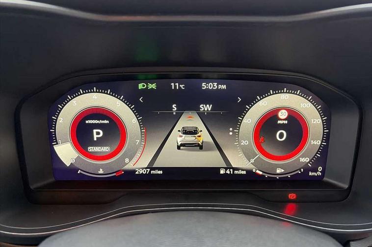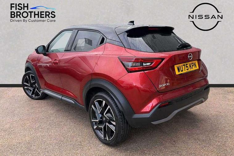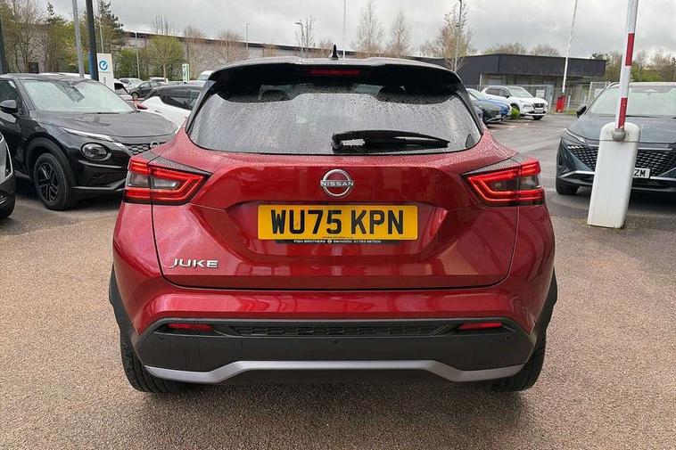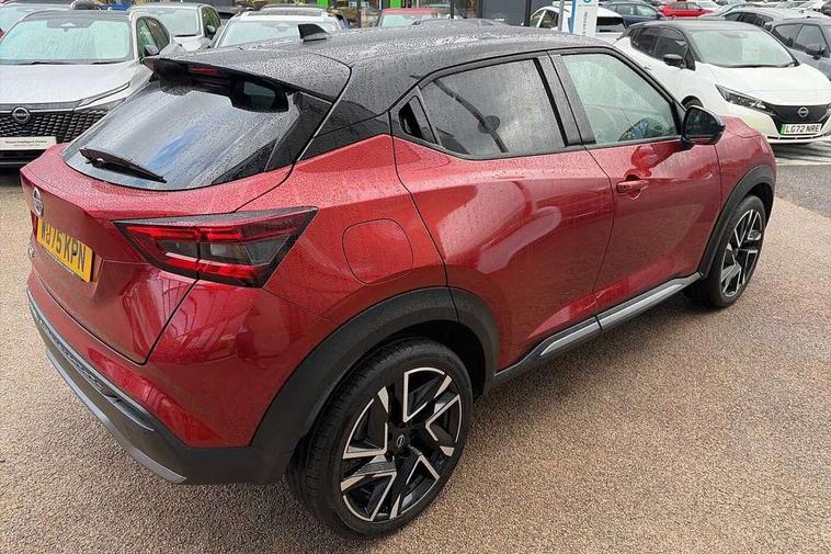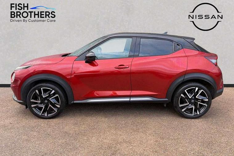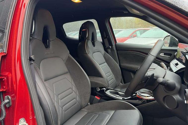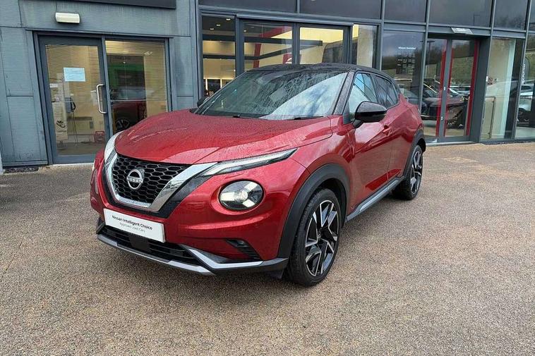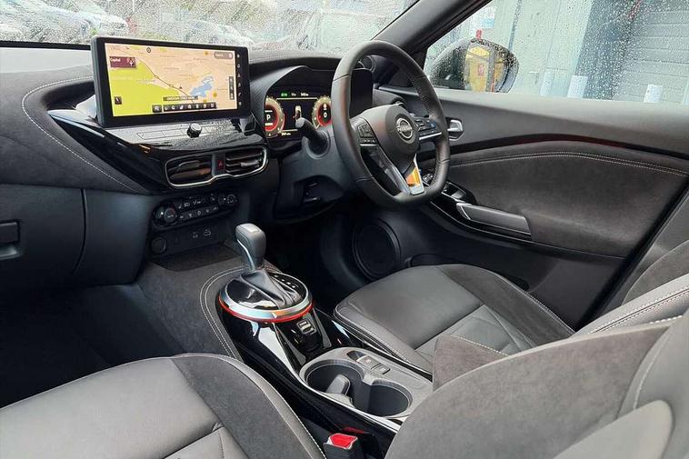 12.3" full colour TFT screen combimeter, Drive modes select (Eco, normal and sport), Emergency and breakdown call, Front parking sensor, Idle start/stop system, Intelligent driver alert system, Intelligent lane intervention, Lane departure warning system, Nissan connect 12.3" touch screen entertainment system, Nissan connect nav with TomTom traffic, Nissan connect services, Outside temperature sensor, Power Steering, Rear parking sensor, Stop/start button, Traffic sign recognition, Trip computer, Voice recognition, WiFi connectivity, Wireless Apple CarPlay and Google Android auto, Wireless Smartphone charger, 10 Bose speakers 8 speakers and 2 headrest speakers for driver/passenger seats, 2 X Rear console USB port, Bluetooth system, USB, Aux-in and 12V socket, Bose personal plus audio system, DAB Digital radio, Auto dimming frameless rear view mirror, Automatic hazard signal with emergency stop signal, Body colour door handles, Electrically adjustable door mirrors with integrated indicators, Follow me home headlights, Front and rear electric window with one touch driver window, High beam assist, LED 3rd brake light, LED daytime running lights, LED front fog lights, LED headlamps, LED rear fog lamp, LED rear lamps, One touch passenger window, Rear privacy glass, Rear side wing doors, Rear wiper, Roof spoiler, Shark fin roof antenna in solid Black, Solid black door mirrors, Solid black front bumper/rear bumper and side skirts inserts, Three blink turn signal, 3 height adjustable rear headrests, 3 seat bench in 2nd row, 60/40 split folding rear seat, Card holder on driver sunvisor, Door ambient lighting, Driver seat back pocket, Driver side rear coat hanger, Driver/passenger sunvisors and vanity mirrors, Front and rear cabin lights, Front armrest, Front door pockets with bottle holders, Front head restraints, Front/rear passenger grab handles, Gear console ambient circle lighting, Height adjustable driver's seat, Internal chrome door handles, Luggage board, Luggage space lighting, Monoform sporty seats, Multifunction steering wheel, Passenger seat back pocket, Rear door bottle holders, Single front passenger seat, Smooth synthetic leather steering wheel, Steering wheel mounted gearshift paddles, Synthetic leather kneepad, Synthetic leather shift knob, Telescopic steering wheel adjustment, Two cupholders in front centre console, Two rear isofix child seat anchorage points with top tether, Welcome light and console tray ambient lighting, Comfort pack - Juke, Heat pack with height adjustable passenger seats - Juke, Interior personalisation pack - Juke, ProPilot pack - Juke Auto, Satin grey exterior personalisation pack - Juke, ABS with EBD and brake assist, Active ride control, Active Trace Control, Driver and passenger airbags, Driver and passenger side airbags, Electric handbrake with auto hold function, Electronic Stability Programme (ESP), Front and rear curtain airbags, Height adjustable seatbelts, Hill start assist, Intelligent emergency braking with pedestrian and cyclist recognition, Rear door child safety locks, Seatbelt reminder for driver/front passenger and rear seats, Three 3 point rear seatbelts, Traction control, Tyre pressure monitoring system, VDC Dynamic Vehicle Control, Alarm, Immobiliser, Intelligent key and start push button with walk away lock and approach unlock functions, Remote central locking, 19" Alloy wheels with deep 3D effect, Tyre puncture repair kit,