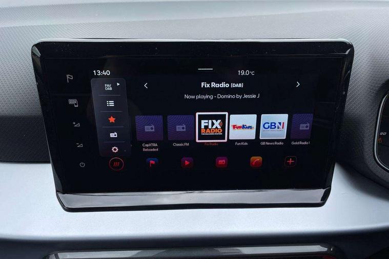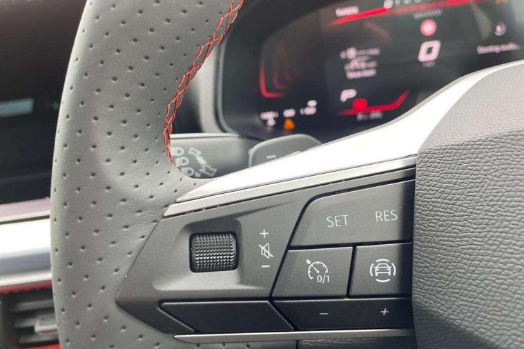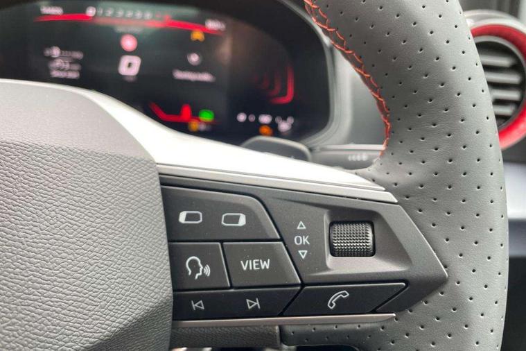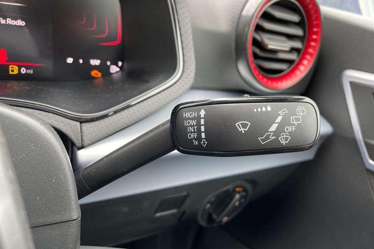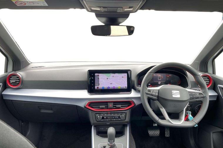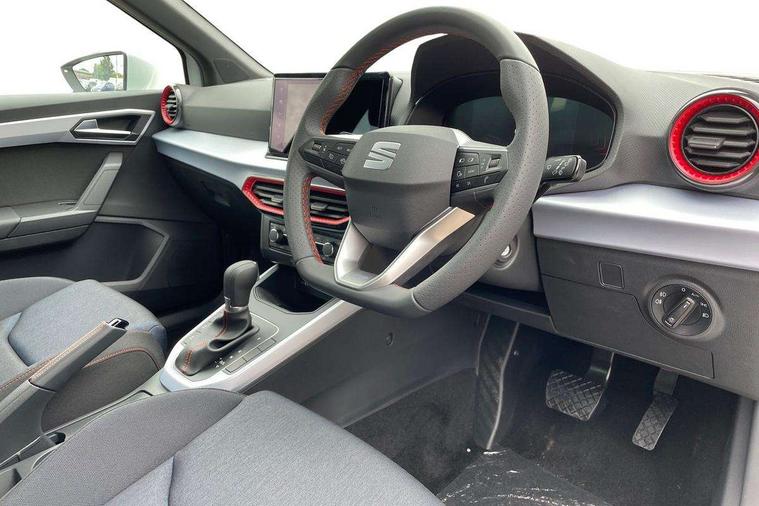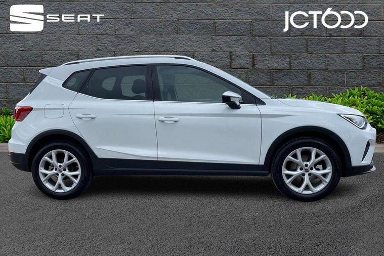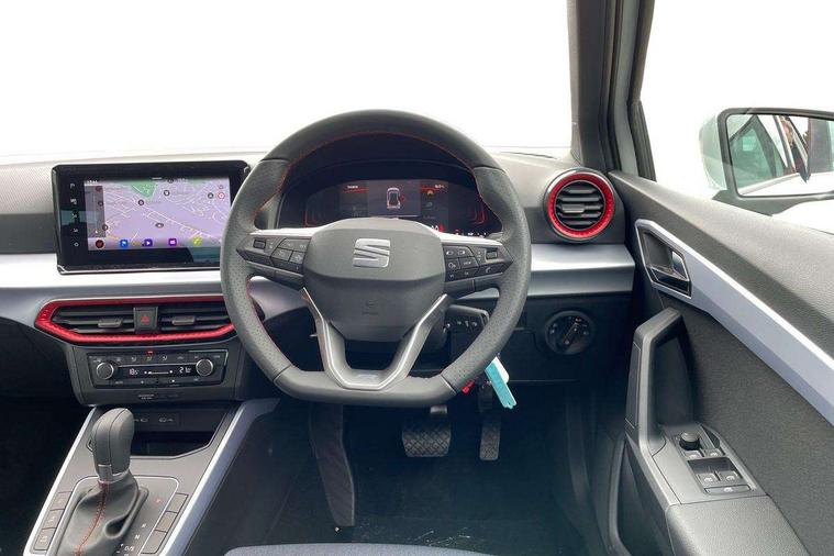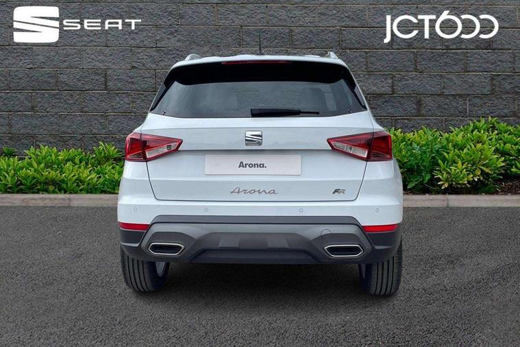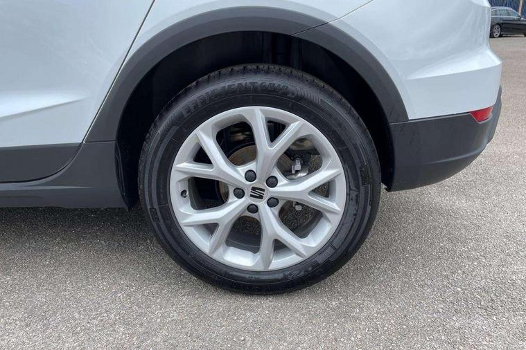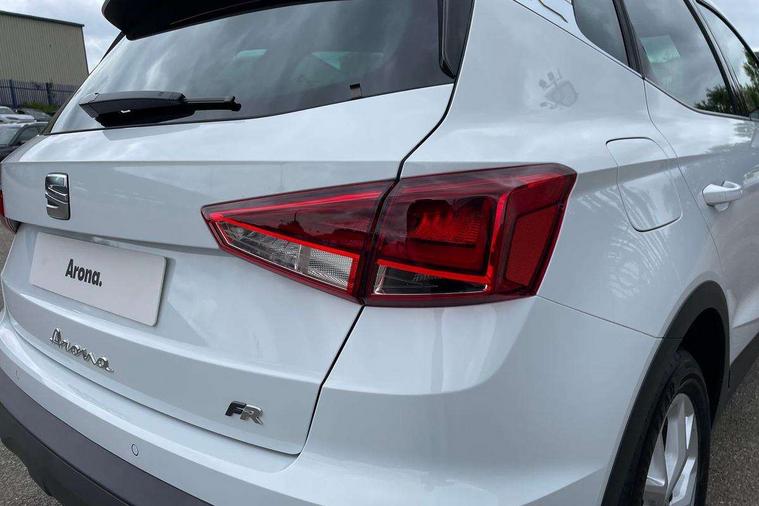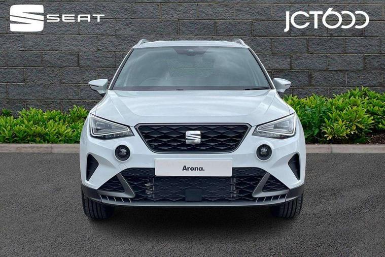 'Lights On' Reminder warning buzzer, 8" Digital cockpit, Digital clock, E-call, Electric speed sensitive power steering, Full link smartphone integration with mirror link, wireless apple carplay, Google android auto + USB Type C cable for apple and android devices, Lane keeping system, Low fuel warning light, Outside temperature display, RPM counter, SEAT Drive profile - Four different models normal-sport-eco-individual, steering response, throttle response and gear shifts mode, Trip computer, Wireless phone charger, 9.2" colour touchscreen with navigation system, voice control and USB port (type c), Bluetooth interface for hands free and audio streaming, DAB digital radio and AM/FM radio, Steering wheel mounted audio controls, Anti theft roof antenna, Auto dimming interior rear view mirror, Automatic activation of hazard warning lights, Body coloured bumpers, Body coloured door handle inserts, Chrome roof rails and window surrounds, Dark tinted rear windows, Electric front/rear windows, Electrically adjustable, heated and folding door mirrors, Front fog lights with cornering function and rear fog light, FULL LED automatic headlights with dynamic headlight range control, coming and leaving home, LED daytime running lights, LED rear tail lights and licence plate lights, Protective side mouldings, Rain sensing wipers, Rear side wing doors, Rear spoiler, Rear window wash/wipe, Roof colour door mirrors, Third brake light, Twin exhaust pipe styling hidden exhaust pipe, Visible VIN plate, 2 cupholders, 3 seat bench in 2nd row, 60/40 split folding rear seat, Aircare filter, Black interior roof, Cloth upholstery, Double boot floor, Driver sunvisor with covered mirror + card holder, Dual zone climate control, Front courtesy light with front reading lights, Gear shift indicator, Height adjustable front seats, Height/reach adjustable steering column, Illuminated air vent surrounds, Illuminated boot, Instrument lighting with brightness control, Interior ambient lighting, Interior light in footwell, central console and door panel, ISOFIX points in outer rear seats with top tether anchorage points, Passenger sunvisor with vanity mirror, Perforated flat bottomed leather steering wheel/gear knob/handbrake with red stitching and FR logo, Potentiometer, Single front passenger seat, Steering wheel mounted gearshift paddles, Two front and three rear height adjustable headrests, Interior chrome pack - Arona, Safe and driving pack (S) - Arona, 3 point seatbelts on all rear seats, ABS, Active front headrests, Child locks on rear doors, Driver and front passenger airbags with front passenger airbag de activation, front side and curtain airbags, Emergency Brake Assist (EBA) and front assist, Front and rear seatbelt reminder, Hill hold control, Multi-Collision braking, Tiredness recognition system, Traction control, Tyre pressure monitoring system, Alarm with back up horn with tow away protection, Deadlock, Electronic engine immobiliser, Locking wheel bolts, Remote central locking, Titan black dashboard, 17" Dynamic alloy wheels,