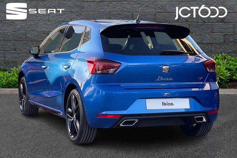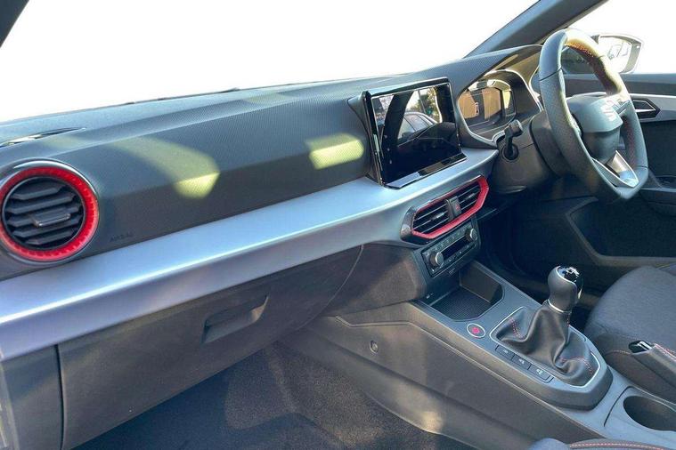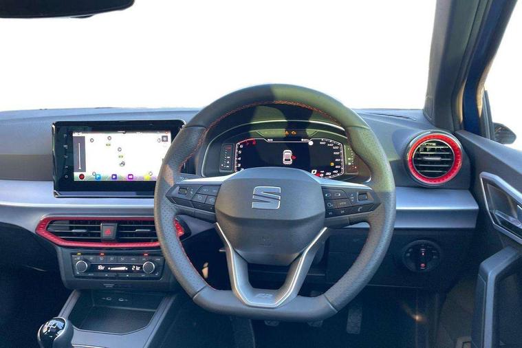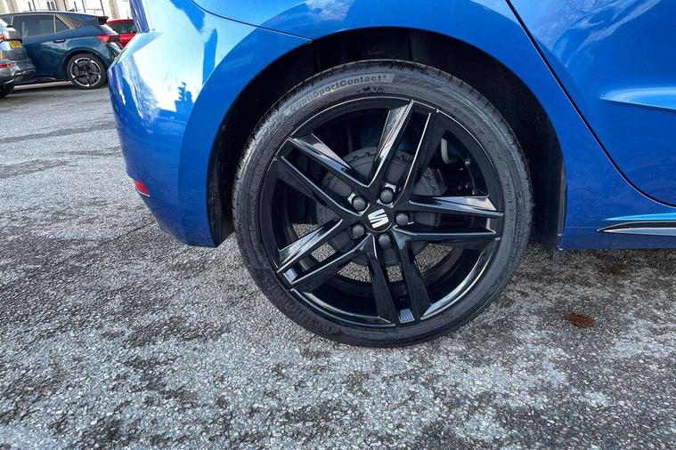 'Lights On' Reminder warning buzzer, 10" Digital cockpit, 9.2" touchscreen navigation system with type C USB socket, Voice control and DAB/AM/FM radio, Auto start and stop system, Bluetooth audio streaming with handsfree system, Digital clock, E-call, Full link smartphone integration with mirror link, wireless apple carplay, Google android auto + USB Type C cable for apple and android devices, Lane assist, Low fuel warning light, Outside temperature gauge, Power Steering, Rear parking sensor, Seat connect plus with safety, service, remote and online, SEAT logo boot release, Speed limiter, Traffic sign recognition, Trip computer, Sports suspension, Auxiliary input socket, Radio/MP3 player, SD card slot, Steering wheel mounted controls, Anti theft roof antenna, Auto dimming rear view mirror, Automatic rain sensing wipers, Black door mirror caps, Black roof spoiler, Black side skirts, Body colour bumpers, Body colour door handles, Brilliant black window surrounds, Dark tinted rear windows, Electric adjustable/heated/folding door mirrors, Electric front windows, Electric headlight adjustment, Electric panoramic sunroof, Electric rear windows, Front/rear fog lights, FULL LED automatic headlights with dynamic headlight range control, coming and leaving home, LED daytime running lights, LED 3rd brake light, LED tail lights, Rear roof spoiler with FR twin exhausts, Rear side wing doors, Rear wiper, 3 seat bench in 2nd row, 60/40 split folding rear seat, Ambient interior lighting, Chrome detailing and black headlining, Dual zone climate control with combination filter, Front courtesy lights, Front cupholders x 2, Front reading lights, Front sport bucket seats, Gear shift indicator, Glovebox, Heated front seats, Height adjustable front and rear headrests (five), Height adjustable front seats, Height/reach adjust steering wheel, Illuminated air vent surrounds, Illuminated boot, Instrument lighting with brightness control, Isofix, Leather multifunction flat bottomed sports steering wheel, Microsuede cloth upholstery, Passenger sunvisor, Single front passenger seat, Storage pockets on back of front seats, Sunvisors with mirror and driver side card holder, Safety and driving pack (S) - Ibiza, 3 point seatbelts on all 3 rear seats, ABS, Active front headrests, Child locks on rear doors, Electronic stability control, Energy recovery system, Front driver and passenger side airbags with curtain airbag and front passenger airbag deactivation, Hill hold control, Multi-Collision braking, Seat belt reminder for front and rear seats, Tiredness recognition system, Tyre pressure monitoring system, KESSY Keyless entry and go, Locking wheel bolts, Perimeter alarm and interior monitoring with backup horn and tow away protection, Remote central locking + deadlocks, 18" Performance alloy wheels in glossy black,