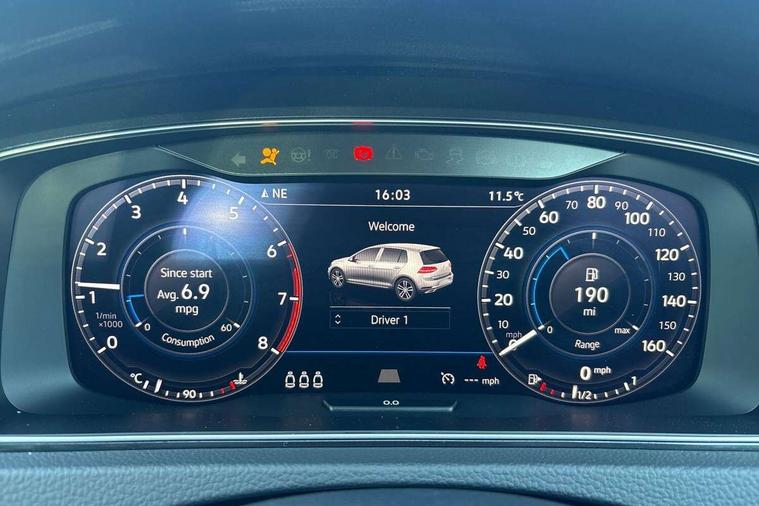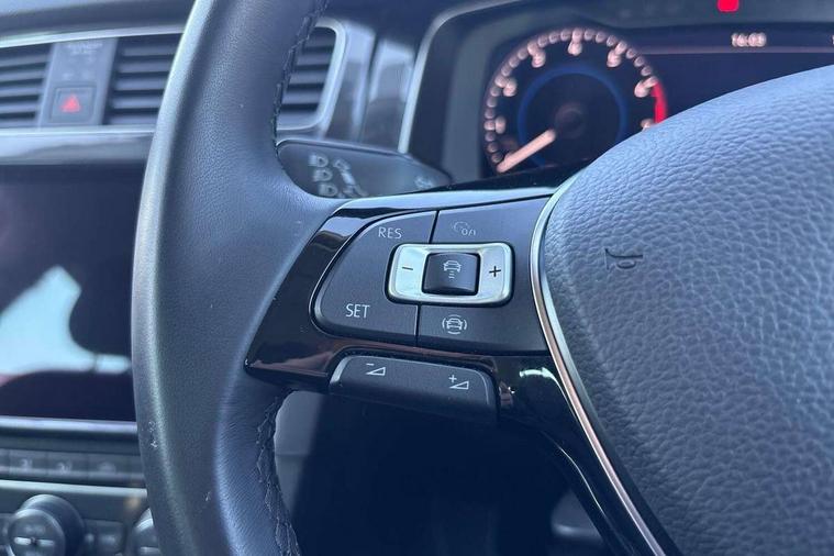 'Lights On' Reminder warning buzzer, ACC - Adaptive cruise control with front assist, forward collision warning, distance monitoring, city emergency brake and speed limiter, Bluetooth telephone and audio connection for compatible devices, Brake pad wear indicator warning light, Driver alert system, Driver profile selection, Driving Mode Selection with four preset modes - Eco, normal, sport or individual modes, Instrument cluster in white, Multifunction computer with visual gear change recommendation for fuel consumption, Power assisted speed sensitive electro-mechanical steering, Push tank flap, Speed limit display, Speedo, rev counter, electronic odometer, trip, service interval display, exterior temperature and fuel gauge, Stop/start system, Warning buzzer and light for front seatbelts unfastened, Battery regeneration during braking, XDS electronic differential lock, Composition media system, DAB Digital radio receiver, Driver Personalisation profile selection, MP3/WMA compatability, Multi device interface (MDI) with USB connection, Personalisation 1.1 profile for media, Premium USB cable in choice of either Apple or Android smartphone compatibility, SD card slot, SMS Functionality, USB and SD card connectivity, Black front air intake and radiator grille with chrome insert, Black rear diffuser, Body colour bumpers, Body colour door handles, Body colour door mirrors with integrated indicators, Dusk sensor + automatic driving lights, Electric front windows, Electric rear windows, Electrically adjustable and heated door mirrors, Fully galvanised body, Heated rear windscreen, Hidden exhaust pipe, High level 3rd brake light incorporating LED Technology, LED daytime running lights, LED front fog lights with static cornering light function, Rear fog lamp, Rear tinted glass 65% light absorbing from B pillar backwards, Rear window aerial, Rear window wash/wipe with intermittent wipe, Reflectors in all doors, Tailgate with integrated rear roof spoiler, Windscreen wipers/ intermittent wipe + 4 position delay, 12V socket in luggage compartment, 3 rear headrests, 4 load lashing points in luggage compartment, 60/40 split folding rear seat backrest, Auto fold down lever in rear seat backrest, Bag hook in luggage compartment x 2, Cooled glovebox, Cupholder cover, Dust/pollen filter, Front and rear reading lights incorporating LED technology, Front centre armrest with storage compartment and two rear air vents, Front seat back storage pockets, Grab handles front x 2, rear x 2 with integrated coat hooks, Height and reach adjustable steering wheel, Illuminated vanity mirrors, Instrument lighting white adjustable panel illumination, Interior light delay, Isofix preparation for 2 rear child seats, Load through provision with rear centre armrest and cupholders x2, Luggage compartment lighting, Overhead storage box, Passenger underseat drawer, Pearl grey headlining, Storage box in luggage compartment, Storage compartment in roof console with cover, Storage compartments in centre console, Storage compartments in front doors, Storage compartments in rear doors, Stowable luggage compartment cover, Sun visors, Variable boot floor, height adjustable and removable, Convenience Pack - Golf, Light and Sight pack - Golf, Mirror pack - Golf, 3 rear three point seatbelts, Airbags - Driver's and front passenger's, curtain airbag, Driver's knee, front side impact and passenger's airbag deactivation switch, Anti-lock Braking System (ABS) with Hydraulic Brake Assist (HBA), Automatic post collision braking system, Child locks on rear doors, Driver/Passenger optimised head restraints, Electronic parking brake with auto hold, Electronic stability control (ESC) including Electronic differential lock (EDL) and ASR (Traction control) with deactivation via infotainment system, Front ventilated disc brakes and rear disc brakes, Pre crash preventive occupant protection, Three point height adjustable front seatbelts with tensioners, Tyre pressure loss indicator, Alarm with interior protection and deactivation via infotainment system, Electronic engine immobiliser, Remote central locking with 2 remote folding keys, Brushed dark silver decorative inserts in dash and door panels, Chrome plated air vent surround, Chrome plated electric mirror adjustment light switch surround, Polar night black centre console, Steel space saver spare wheel,