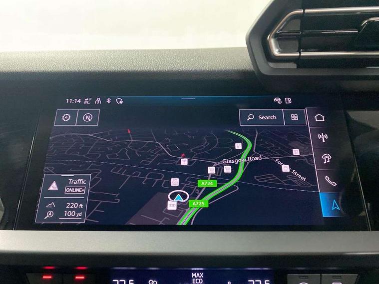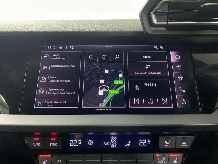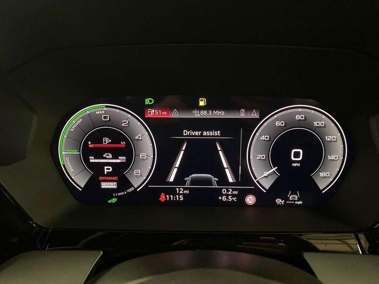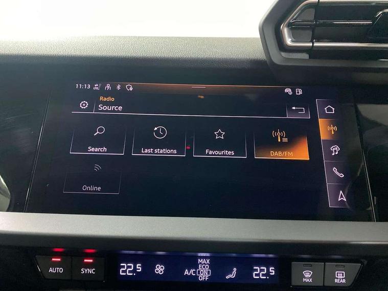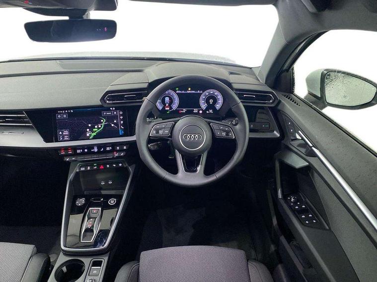 Adaptive cruise control (ACC), Adjustable speed limiter, Audi drive select (Auto, Comfort, Dynamic, Efficiency and Individual), Audi virtual cockpit plus - 12.3" full HD resolution dynamic digital instrument cluster, Automatic start/stop system with recuperation, Bluetooth interface, Camera based traffic sign recognition, Collision avoidance assistant, Driver attention and fatigue detection, e-Call (emergency call), Electromechanical power speed sensitive steering, Emergency assist, Intersection assist, Lane departure warning system, MMI Navigation Plus with high resolution 10.1" colour touch screen display, Park Assist with parking system Plus, Reversing camera, Service indicator, Smartphone interface with app store includes wireless Apple carplay, Android auto and Amazon alexa integration, Trip computer, Voice control system with natural language interaction, CCS socket for DC charging, Charging cable for public charging, mode 3 (type 2), 32 A, Standard suspension, Type 2 socket for AC charging, Audi Phonebox light with wireless charging, Audi sound system - 10 loudspeakers including centre loudspeaker and subwoofer, DAB Digital radio, USB ports with charging function in the rear, 3rd brake light, Acoustic glass windscreen, Aluminium window trim, Auto dimming frameless rear view mirror, Body colour exterior mirrors, Body colour roof spoiler, Electrically adjustable/heated/folding/auto dimming door mirrors with integrated LED indications + kerb view function for passenger side, Exterior model badging, Front electric windows, Front radiator grill in high gloss dark chrome, Front side air inlets in grained matt black with silver frame, Heat insulating glass windscreen, Invisible tailpipe, LED daytime running lights, LED headlights and halogen rear lights, Light and rain sensors, Rear diffuser and grill in grained matt black with silver frame, Rear electric windows, Rear side wing doors, Rear window, rear door windows and rear side windows in clear glass, Rear wiper, 12V socket and storage compartment in front centre console, 3 seat bench in 2nd row, 3 spoke leather multifunction steering wheel with gear shift paddles, 3-zone deluxe automatic air conditioning, 4 way electrically adjustable lumbar support for driver and front passenger, 60/40 split folding rear seat bench, Black front and rear floor mats, Convenience auxiliary air conditioning, Front and rear headrests, Front centre armrest, Front door sill trims with aluminium inlay, Heated front seats, Height and reach adjustable steering wheel, i-Size child seat mounting on the front passenger side and outer rear seats, i-Size and top tether on the outer rear seats, Manual boot compartment lid, Manually adjustable front seats, Routine cloth upholstery with front sports seats, Seat side bolsters, Single front passenger seat, Steel grey cloth headlining, Aluminium interior elements pack - A3, LED interior lighting pack -A3, 3x3 point rear seat belts, Acoustic vehicle alerting system, Driver and front passenger airbag with passenger airbag deactivation, Electronic Stabilisation Control (ESC) including ABS, ASR and EDL, First aid kit with warning triangle and 2 safety vests, Front side airbags with head airbags and interaction airbag, Hill hold assist, Pre-sense front with pedestrian and cyclist detection, Seatbelt monitoring, Tyre pressure loss indicator, Anti theft alarm, Anti-theft wheel bolts, Electronically operated child locks, Immobiliser, Black dashboard, Inlays in volcano grey fine paint finish, Tyre repair kit,