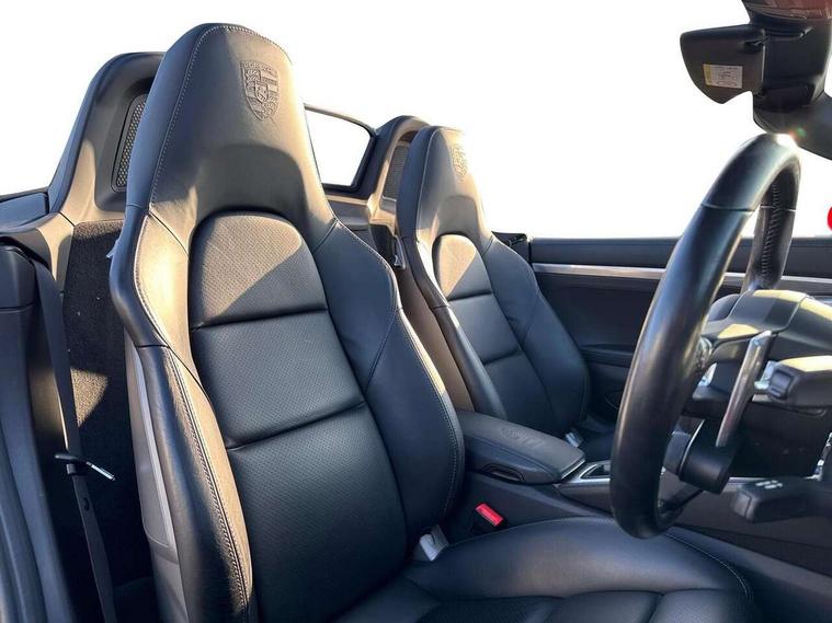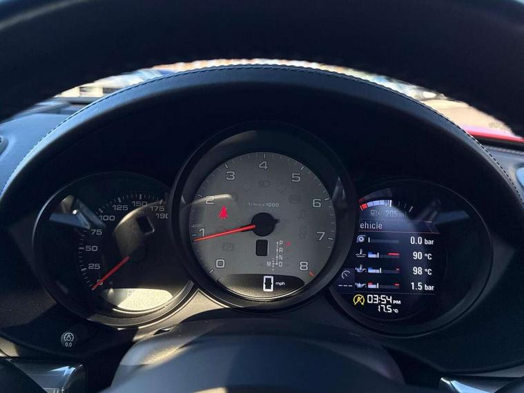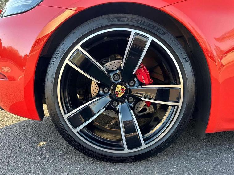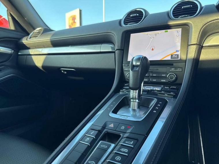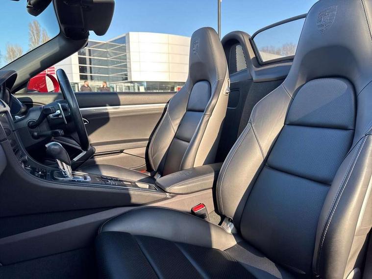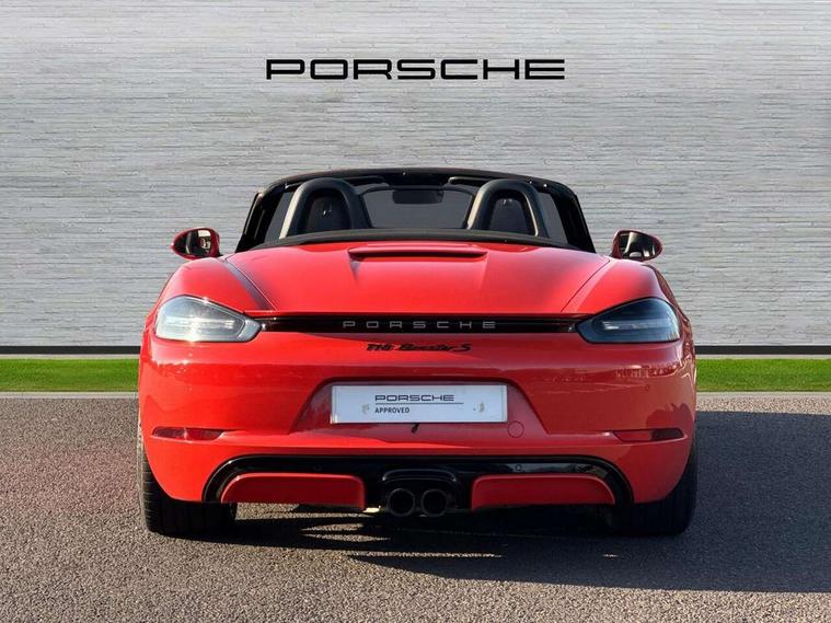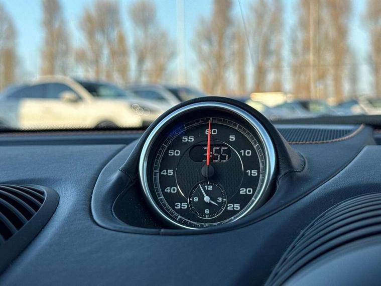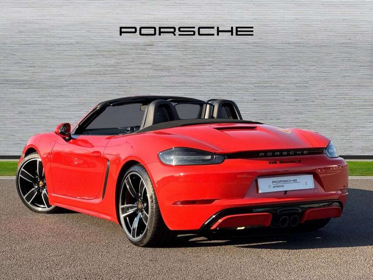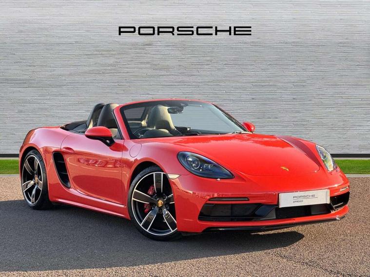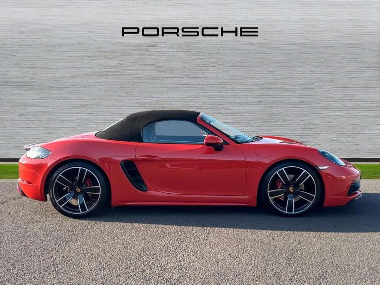 Auto start and stop system, Digital displays for vehicle speed, chosen gear, odometer, trip odometer and clock, Instrument cluster with central rev counter and high-resolution 4.6 inch colour display, Porsche Communication Management (PCM) including online navigation module, mobile phone preparation, audio interfaces and voice control system, 3-way catalytic converters and on-board diagnostics for monitoring emission control system and coated particulate filter, 4 valves per cylinder, 64 litre fuel tank, Aluminium block and cylinder heads, Direct fuel injection (DFI), Gasoline particulate filter, Integrated dry-sump lubrication with an on-demand oil pump, Porsche Doppelkupplung (PDK), Porsche Stability Management (PSM) with ABS, advanced brake functions, Rear wheel drive, Turbocharger with variable turbine geometry (VTG) and intercooler, Two seater vehicle with mid mounted engine, VarioCam Plus variable valve timing and switchable valve lift, Water cooled with thermal management, DAB Digital radio, Integrated 4G/LTE compatible SIM including data for the Porsche Connect Services, Integrated compatible SIM including Porsche Connect Services, Navigation incl porsche + Apple Carplay, connect module, wireless internet access, carfinder, remote vehicle status, remote service and vehicle track, Wifi and music streaming, Automatic headlight activation including welcome home lighting, Automatically extending rear spoiler, Body colour bumpers, Body colour door handles, Electrically adjustable heated exterior mirrors on door waist rails, aspherical on driver's side, Fully automatic fabric hood, electrically operated/heatable rigid glass rear screen, operable approx 31 mph and convenient operation by key remote, Green tinted heat insulating glass, Grey top tinted windscreen, Heated rear windscreen, Intelligent lightweight body in Aluminium/Steel composite construction, Net wind deflector, Power windows with one touch operation and door seal protection, Separate auxiliary lights in the front end with LED indicators and position lights, Twin tract sports exhaust system with central twin tailpipe in stainless steel, Windscreen washer system with two wiper speeds and washer jets, 12V sockets in passenger footwell and centre console storage compartment, 718 logo on gear lever, Additional smooth finish leather with door panel armrest and centre console main storage compartment, Adjustable fan with air recirculation and defroster functions, Ascending centre console with uncovered storage compartment and closed storage compartment, Clothes hooks on front seat backrests, Footwell illumination, Front and rear luggage compartments, Front headrests, Heated seats, Hood lining in black fabric, LED reading lights, orientation, ignition lock, additionally luggage compartment and glove compartment lighting, Lockable glovebox, Seat centres in race tex, side bolsters and headrests in leather, Smooth finish leather on steering wheel rim, gear lever and door handles, SPORT button to activate dynamic driving settings for engine, transmission (with PDK), Storage compartments in each doors, Two individual cup holders (Passenger side, integrated into dashboard trim strip), 3 point automatic seatbelts, ASR, Electrically controlled parking brake, Front and rear lightweight spring strut axle, Front seatbelt pretensioners + load limiters, Full size driver and passenger airbags, Passenger airbag deactivate switch, Porsche side impact protection doors with thorax airbag in outer backrest side bolster and head airbag for driver/passenger in door panel, Tyre pressure monitoring system, Alarm system with interior surveillance, Anti-theft wheel bolts, Engine immobiliser with in key transponder, central locking and remote control,