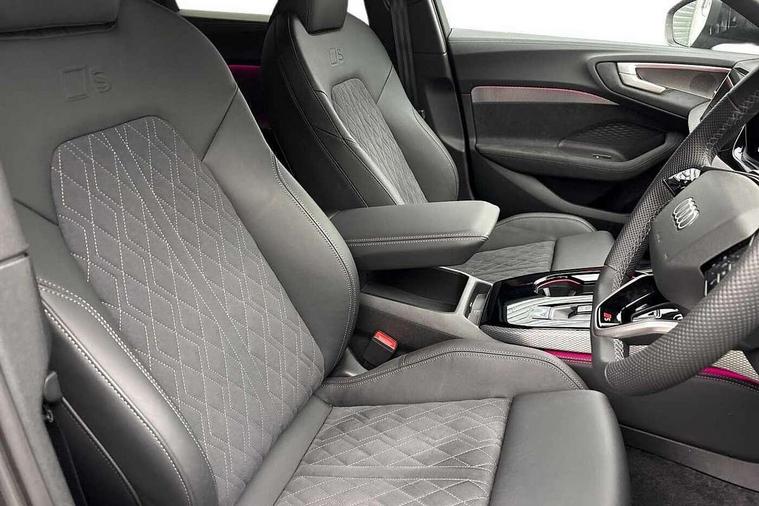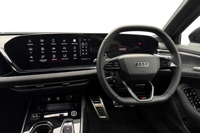Adaptive cruise control, Advanced driver attention and fatigue montior, Audi application store, Audi assistant, Audi connect emergency call and service, Audi drive select, Audi virtual cockpit plus with 11.9" OLED colour display, Automatic start/stop system with coasting functionality, Camera based traffic sign recognition, Intersection assist, Lane change assistant with exit warning system, rear cross traffic alert and rear turn assist, Lane departure warning with emergency assist, MMI 10.9" front passenger touch display, MMI navigation plus with high resolution 14.5" OLED touchscreen colour display, Park assist plus, Parking system plus with 360 display, Progressive steering with servotronic, Smartphone interface, Swerve assist and turn assist, Top view camera, Traffic sign based speed limiter, Sports suspension lowered by 20mm, 2 USB-C ports in both the front and rear, Audi sound system impressive sound with 8 loudspeakers including centre speaker and subwoofer, 6-channel amplifier with a total output of 180 watts, DAB digital radio reception, Smartphone compartment with wireless charging, Aluminium window trims, Auto dimming rear view mirror, Black door handles, Black roof rails, Dark chrome-plated tailpipe trims, Door mirrors - electrically adjustable, heated, folding and auto dimming on both sides, Front and rear electric windows, Front door sill trims with aluminium inlays, illuminated with 'S' logo, Headlight cleaning system, High beam assist, LED daytime running lights, LED rear lights pro incl. dynamic rear indicators and illuminated light strip with animated coming and leaving home function, LED third brake light, Matrix LED headlights with eight light signatures selectable via the MMI or the myAudi app, Privacy glass, Rear and side windows with heat insulating glass, Rear side wing doors, Rear wash/wipe, S Line badges on the front wings, S line bumpers, radiator grille and diffuser in phantom black and diffuser insert in matt anthracite, White rhombus logo projection light in exterior mirrors, Windscreen with acoustic glazing, 3 rear headrests, 3 seat rear bench, 3 spoke leather steering wheel with multi-function buttons with touch control, flattened on top and bottom, with S badging and contrast stitching, 3-zone automatic climate control, 40:20:40 split folding rear seat bench with centre armrest and cup holders, Comfort front centre armrest, Electrically adjustable front seats, Front and rear floor mats, Front sport seats with integrated headrest and S embossed logo, Headlining in black cloth, Heated front seats, i-Size child seat mounting on the front passenger side and outer rear seats, i-Size and top tether on the outer rear seats, Luggage compartment lid, electrically opening and closing, Manual steering column height and depth adjustment, Memory function for driver seat, Single front passenger seat, Stainless steel pedals and footrest, Steering wheel grips in perforated leather and shift paddles, Ambient lighting package plus - A5, Black styling package plus - A5, 3x3 point rear seat belts, Acoustic vehicle alerting system, Convenience key with safelock, Driver airbag, Electric child safety locks, First aid kit with warning triangle and vests, Front emergency brake assist, Front passenger airbag, Front passenger airbag deactivation, Hill hold assist, Occupant detection in rear seat area, Proactive passenger protection system for front, sides and rear, Red brake calipers, Seat belt monitoring with rear seat occupant reminder, Side airbags in front and rear with head airbag system and front interaction airbag, Tyre pressure loss indicator, Anti theft alarm, Anti-theft wheel bolts, Keyless Go, Accent surfaces and control buttons in gloss black, Black dashboard with contrast stitching, Softwrap in Dinamica with contrast stitching, Upper and lower interior elements in dinamica microfiber, 20" 5 arm fold design Audi sport alloy wheels in silk matt grey and gloss turned finish, Tyre repair kit,