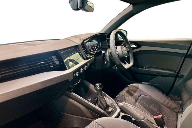 10.25" Digital instrument cluster display classis style instrument dials + speed, odometer, time, outside temperature, telephone menu + fuel level warning, Advanced driver attention and drowsiness monitor, Audi connect emergency call and service, Audi drive select, Audi remote connect and control, Bluetooth interface, Camera based traffic sign recognition, Cruise control, Driver's information system, Electromechanical power steering, Lane departure warning system, Rear parking sensor, Service interval indicator, Smartphone interface, Speed limiter, Start stop system with recuperation, Voice control system, Washer fluid level indicator, Sports suspension, 2 x USB type C connection points, 6 loudspeakers, DAB Digital radio, MMI radio plus with 10.1" colour MMI display screen and MMI touch, Auto dimming rear view mirror, Black door mirror housings, Black side skirts, Body coloured bumpers, Door sill trims with aluminium inlays and logo, Electric front and rear windows, Electrically adjustable, heated, folding door mirrors with integrated LED side indicator, Front side air inlets in grained matt black and C frame in anthracite black, Front wing badges, Headlight cleaning system, Heat insulating glass windscreen and side windows, Heated rear windscreen, High level LED brake light, LED daytime running lights, LED headlights with range control LED rear lights + dynamic rear indicators, Light and rain sensors, Privacy glass, Radiator grille and rear diffuser in matt anthracite black, Radiator protective grille frame in matt aluminium silver, Rear fog lights, Rear side wing doors, Rear wiper, Side front spoiler lips in grained matt black, 12V socket in centre console with two cup holders, 3 rear seats with headrests, 3 seat bench in 2nd row, 3 spoke flat bottomed multi-function plus leather steering wheel with S badging, grips in preforated leather, contrast stitching and paddle shift, 40:60 Split folding rear seat or fully collapsed, Black carpets, Black cloth headlining, Front and rear velour black floor mats with contrast stitching in fine silver, Front head restraints, Front passenger seat, Height and reach adjustable steering wheel, Interior lighting includes roof module, front and rear reading lights and right luggage compartment lighting, ISOFIX child seat mounting for front passenger and outer rear seats including top tether attachment point of outer rear seats, Leather gear knob with aluminium trim, Leather handbrake grip, Manual air conditioning, Manual height adjustable for driver and front passenger seat, Manually adjustable lumbar support in front seats, Stainless steel pedals, Ambient lighting package - A1, Black styling pack - A1 Sportback Black Edition, Luggage compartment pack - A1, 3x3 point rear seatbelts, Audi pre-sense front with pedestrain and cyclist recognition, Brake assist function, Driver and front passenger airbag with front side and head airbags, Electronic Stability Control including ABS, EBD, ASR and EDL, Front passenger airbag deactivation switch, Hill hold assist, Manual rear child locks, Seatbelt height adjustment for front seats, Seatbelt monitoring, Tyre pressure loss indicator, Warning triangle and first aid kit, Anti theft alarm, Anti theft wheel bolts, Immobiliser, Remote control key with safelock, Aluminium trim for control switches, air vents and digital instrument cluster, Black dashboard, Silver grey inlays polygon structure in diamond paint finish, Structured grey accent surfaces insert of air vents, interior door handle recesses and centre console in quartz paint finish,
