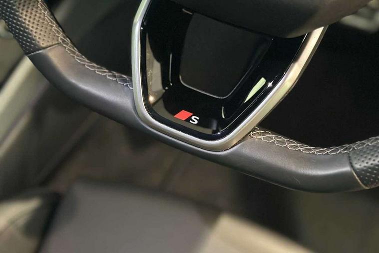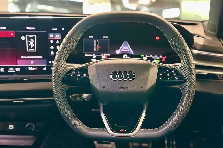Adaptive cruise control, Advanced driver attention and fatigue montior, Audi application store, Audi assistant, Audi connect emergency call and service, Audi drive select, Audi smartphone interface, Audi virtual cockpit plus with 11.9" OLED colour display, Automatic start/stop system with coasting functionality, Camera based traffic sign recognition, Intersection assist, Lane departure warning, MMI navigation plus with high resolution 14.5" OLED touchscreen colour display, Park assist plus, Parking system plus with 360 display, Progressive steering with servotronic, Rear view camera, Swerve assist and turn assist, Traffic sign based speed limiter, Sports suspension lowered by 20mm, 2 USB-C ports in both the front and rear, Audi sound system impressive sound with 10 loudspeakers including centre speaker and subwoofer, 6-channel amplifier with a total output of 180 watts, DAB digital radio reception, Smartphone compartment with wireless charging, Aluminium window trims, Auto dimming rear view mirror, Body colour door mirrors, Door mirrors - electrically adjustable, heated, folding and auto dimming on both sides, Front and rear electric windows, Front door sill trims with aluminium inlays, illuminated with 'S' logo, High beam assist, LED headlights Plus incl. digital daytime running lights, turning light, all-weather light, motorway light, manouevring light and intersection light, LED rear lights pro incl. dynamic rear indicators and illuminated light strip with animated coming and leaving home function, LED third brake light, Privacy glass, Rear and side windows with heat insulating glass, Rear boot, Rear side wing doors, S Line badges on the front wings, S line bumpers, radiator grille and diffuser in phantom black and diffuser insert in matt anthracite, White rhombus logo projection light in exterior mirrors, Windscreen with acoustic glazing, 3 rear headrests, 3 seat rear bench, 3 spoke leather steering wheel with multi-function buttons with touch control, flattened on top and bottom, with S badging and contrast stitching, 3-zone automatic climate control, 40:20:40 split folding rear seat bench with centre armrest and cup holders, Comfort front centre armrest, Front and rear floor mats, Front seats with manual adjustment for position and 4-way electric lumbar support, Front sport seats with integrated headrest and S embossed logo, Headlining in black cloth, Heated front seats, i-Size child seat mounting on the front passenger side and outer rear seats, i-Size and top tether on the outer rear seats, Luggage compartment lid, electrically opening and closing, Manual steering column height and depth adjustment, Single front passenger seat, Stainless steel pedals and footrest, Steering wheel grips in perforated leather and shift paddles, Ambient lighting package plus - A5, 3x3 point rear seat belts, Driver airbag, Electric child safety locks, First aid kit with warning triangle and vests, Front emergency brake assist, Front passenger airbag, Front passenger airbag deactivation, Front side airbags with head airbag system and front interaction airbag, Hill hold assist, Seat belt monitoring with rear seat occupant reminder, Tyre pressure loss indicator, Anti theft alarm, Anti-theft wheel bolts, Keyless Go, Accent surfaces and control buttons in gloss black, Black dashboard with contrast stitching, Inlays in matt brushed aluminium with linear embossing, anthracite, Softwrap in leatherette with contrast stitching, Upper and lower interior elements in leatherette, Tyre repair kit,