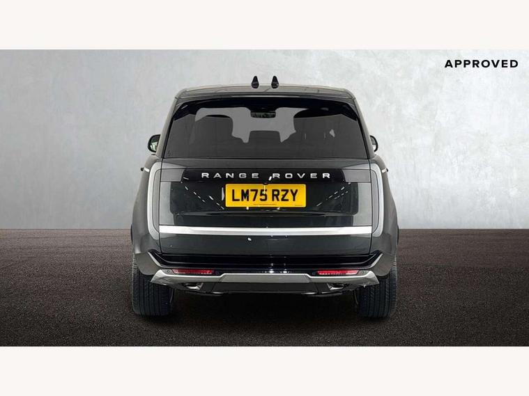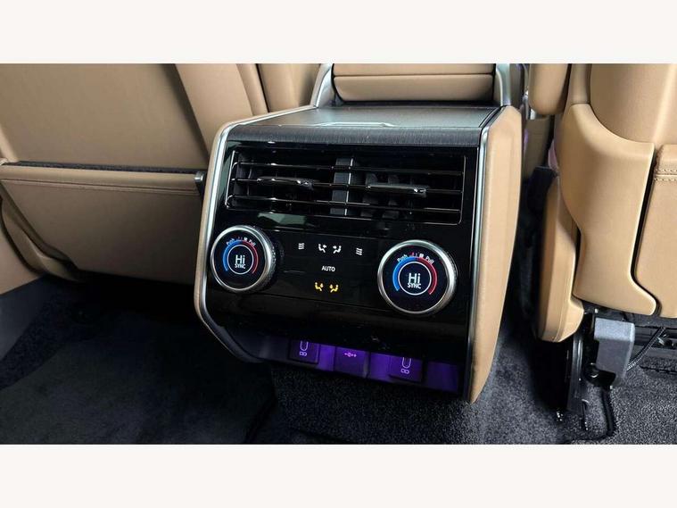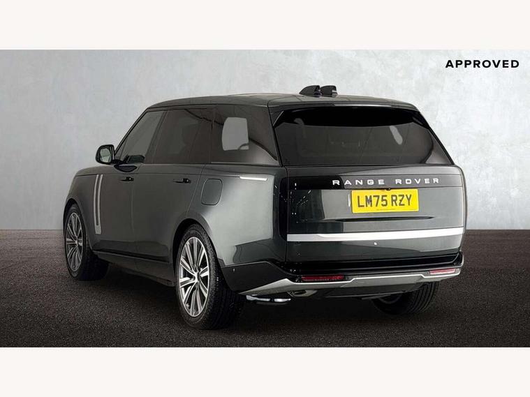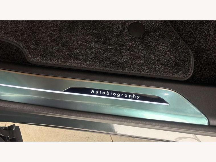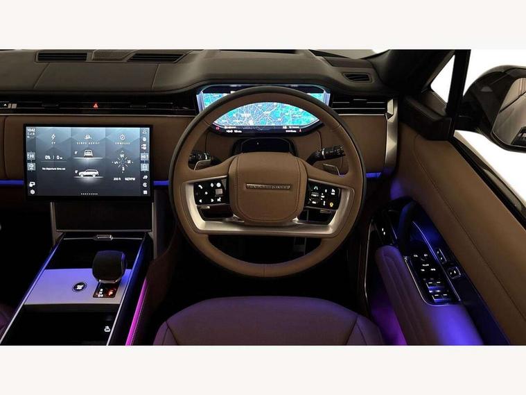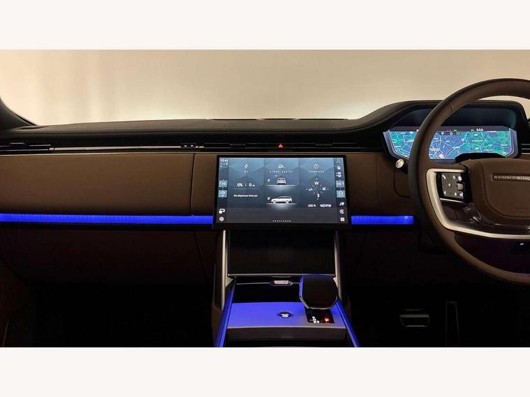 13.1" Touchscreen, 3D surround camera inc frwd traffic detection, vehicle clearance guidance, 3D view, clearsight ground view, manoevure light, 360 parking aid, wade sensing, Adaptive cruise control with steering assist, All Terrain Info Centre, All wheel steering, Blind spot assist, Bluetooth connectivity streaming, Configurable programs, Driver monitoring and response with driver facing camera & driver distraction monitor, Eco mode, Electric power assisted steering (EPAS), Emergency call service, Front and rear parking aid, Head up Display, Interactive driver display, Lane keep assist, Park assist, Powered gesture tailgate/boot lid, Rear collision monitor, Rear traffic monitor, Remote, Traffic sign recognition with adaptive speed limiter, Wi-Fi Enabled with data plan, Wireless Apple CarPlay/Android Auto, Wireless device charging, 7 kW onboard charger, 8 speed automatic transmission, AC/DC charging port, Active damper technology system, Adaptive dynamics, All Wheel Drive (AWD), Automatic access height, Electronic air suspension, Mode 3 public charging cable, Open differential with torque vectoring by braking, Terrain Response 2 Auto, Twin speed transfer box, Digital Audio Broadcast radio-DAB, Meridian 1600W signature sound system, Pivi pro including smart settings, Connected navigation pro, nuance speech, USB socket, Acoustic laminated windscreen, Animated directional indicators, Automatic headlights, Automatic levelling headlights, Centre high mounted stop light, ClearSight interior rear view mirror, Electric windows with one touch open/close and anti trap, Engine cover, Flush deployable exterior door handles, Front and rear recovery eyes, Front fog lights including cornering lamp, Headlamp power wash, Heated rear window, Heated washer jets, Illuminated metal treadplates with Autobiography script, Laminated front and rear side glass, LED tail lights, No towing, Power fold, auto-dimming, heated door mirrors with approach lights, Privacy glass, Rain sensing windscreen wipers, Rear boot, Rear fog lights, Rear side wing doors, Side repeater indicators in mirror, Sliding panoramic sunroof includes and auto sunblind, Solar attenuating windscreen, Standard bonnet, Winter wiper park position, 3 seat bench in 2nd row, 30 Colours configurable cabin lighting with 4 lighting zones, Air quality sensor, Auto folding loadspace cover, Bright metal pedals, Cabin air purification pro, Customer configurable single point entry, Driver and passenger front seat armrests, Easy boot loading, Ebony Carpet, Electric rear side window sunblinds, Four zone climate control, Front and rear cupholders, Front and rear grab handles, Front head restraints, Heated steering wheel, Hook in load space, Loadspace light, Luggage tie down in loadspace, Multifunction steering wheel, Rear centre armrest, Rear head restraints, Rear ISOFIX, Satin chrome gearshift paddles, Single front passenger seat, Soft close doors, SV bespoke carpet mats, Twin blade sunvisors with Illuminated vanity mirrors, Upper and lower glovebox, Online pack with data plan - Range Rover, 3x3 point rear seat belts, Anti-lock braking system (ABS), Black brake calipers, Brake hold function, Cornering brake control (CBC), Customer configurable autolock, DSC - Dynamic Stability Control, Electronic brake force distribution, Electronic parking brake, Electronic traction control, Emergency braking, Front airbags with passenger seat occupant detector, Front side airbags, Hill descent control, Hill launch assist, Illuminated seat belt buckles, Low traction launch, Occupant protection assist, Power operated child locks, Roll stability control, Tyre pressure monitoring system (TPMS), Immobiliser, Intrusion sensor and alarm, Keyless entry, Locking wheel nuts, Remote central locking, Noble chrome controls,