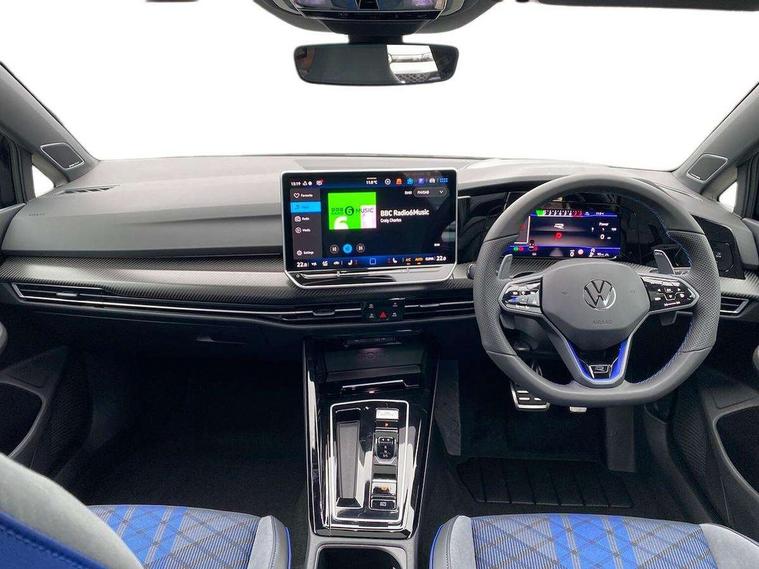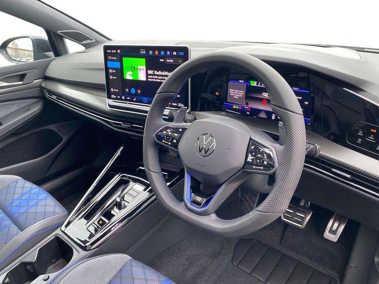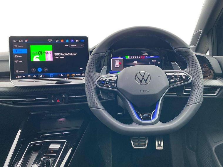 Activated carbon canister, Adaptive cruise control (ACC), Advanced driver attention and drowsiness monitor, Dynamic road sign display, E-Sim card for online connectivity, eCall emergency call system, Electronic maximum speed limit increased to 270 km/h, includes driving Modes 'drift' and 'special', larger roof spolier and GPS laptimer + G-Meter, Multi-color Digital cockpit pro, selection of different info profile possible, Multifunction front facing camera for distance control, Navigation system, Oncoming vehicle braking when turning including swerve support, Progressive steering, Side assist blind spot lane change system, rear traffic alert and exit warning system, Speed limiter, Speedo, rev counter, electronic odometer, trip, service interval display, exterior temperature and fuel gauge, Traffic jam assist, Voice enhancer and voice control, Warning signal and warning light for front and rear seatbelts not fastened, We connect plus preparation, We connect preparation, Wireless app connect, All wheel drive - 4Motion, Petrol Particulate Filter, Start-stop system with battery regeneration (recuperation - energy recovery during braking), XDS electronic differential lock for improved traction and handling, 2 USB C ports in front, 2 USB charging sockets on the centre console in the rear charging capacity upto 45W, Digital radio reception (DAB), Diversity antenna for FM reception, Gaming platform via car app, Infotainment system with 12.9" display, Mobile phone interface with inductive charging feature, 3rd brake light, Auto dimming rear view mirror, Automatic headlamp activation with Coming home and Leaving home feature, Black badge on B-pillar, Black mirror caps, Black strips on radiator grille and headlights, Body colour door handles, Darkened headlights, Darkened R Logos and VW logos in front, rear and on fender, Exterior mirrors convex on the left and aspherical on the right, Front and rear electric windows, Front fog lamps and cornering light, Heat insulating windshield made of laminated glass, Illuminated lighting animation with wake up/goodbye scenario, LED matrix headlights with ambient light V2, advanced high beam, dynamic range contol with cornering, LED rear lamp with indicator, poor weather, LED separate daytime running light, Light assist with High beam control, R name plate, Rain sensor, Rear fog light on one side and reversing lights on both sides, Rear side wing doors, Rear tinted glass 65% light absorbing from B pillar backwards, Rear windscreen washer and wiper with interval delay, Remote electrically foldable door mirrors, puddle lights and reverse activated passenger's door mirror, Welcome light with surround lighting, 12V socket in front centre console, 12V socket in luggage compartment, 3 rear head restraints, 3 seat bench in 2nd row, 30 colour ambient lighting, illuminated center console storage compartment in front, Air care climatronic 3 Zone automatic climate control with rear air conditioning control panel, Aluminium gearshift handle, Brushed stainless steel pedals, Chrome plated radiator grille inserts, air vent surrounds and light switch surrounds, Entry lights, Front + rear black carpet mats, Front centre armrest, Integrated front head restraints, ISOFIX anchors for child seats on outer rear bench seats and on front passanger seat compatible for i-Size, Luggage compartment lighting, Rear cupholder and loadthough, Single front passenger seat, Soul black instrument panel, Soul black roof lining, Split folding backrest with centre armrest and unsplit rear seat bench, Sun visors with illuminated vanity mirrors, Driver assistance pack - Golf Estate/Hatchback Auto, R styling pack - Golf, Technology park and comfort pro package - Golf Hatchback, 3 point height adj front seatbelts + pretensioners, 3 rear three point seatbelts, ABS, Autonomous emergency braking front assist with pedestrian and cyclist monitoring, Child locks on rear doors, Driver and front passenger airbag with front passenger airbag deactivation, Electronic parking brake with auto hold, ESC (Electronic Stability Control), Extended pedestrian protection measures, Front and rear black brake calipers with darkened R-logo, Hill start assist, Rear disc brakes, Two tone horn, Tyre pressure loss indicator, Volkswagen roadside assistance, Anti theft wheel bolts, Preparation for alcohol interlock, Sporty vehicle dynamics, Tool kit for tyre mobility set, Tyre mobility kit Includes 12V compressor and tyre sealant, Wheel hub cover with darkened R-logo,