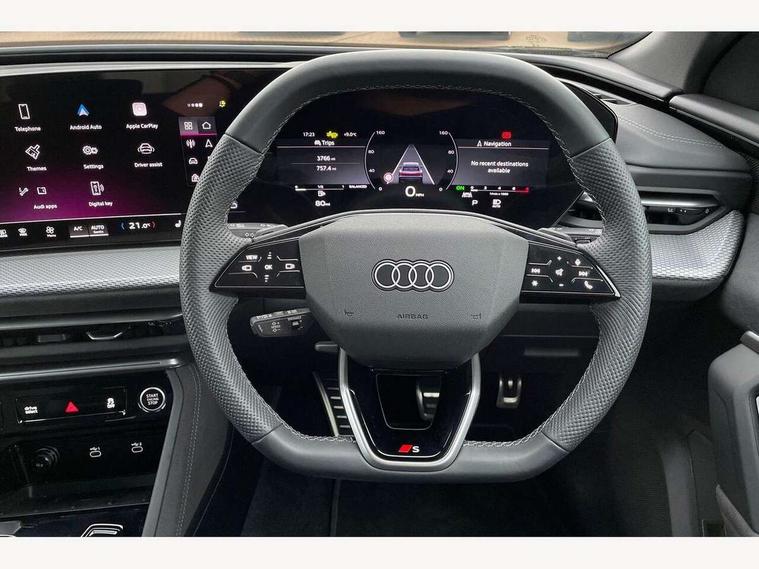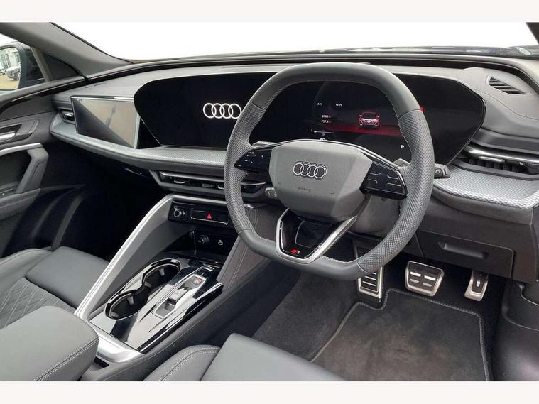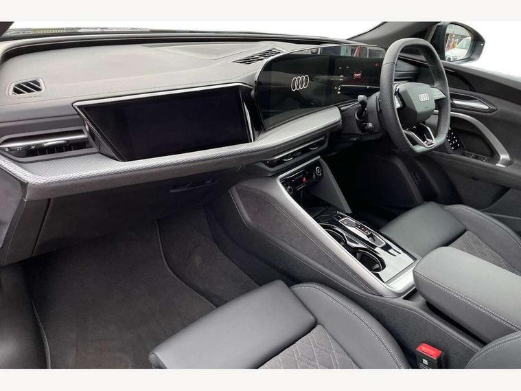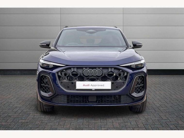 Adaptive cruise control, Advanced driver attention alert, Audi application store, Audi connect emergency call and service, Audi drive select, Audi smartphone interface, Audi virtual cockpit plus with 11.9" OLED colour display, Camera based traffic sign recognition, Fatigue monitor, Front cross traffic intersection assist, Lane change assistant with exit warning system, rear cross traffic alert and rear turn assist, Lane departure warning with emergency assist, MMI 10.9" front passenger touch display, MMI navigation plus with high resolution 14.5" OLED touchscreen colour display, Park assist plus, Parking system plus with 360 display, PAS, Reversing camera, Swerve assist and turn assist, Top view camera, Traffic sign based speed limiter, 2 USB-C ports in both the front and rear, Audi sound system impressive sound with 8 loudspeakers including centre speaker and subwoofer, 6-channel amplifier with a total output of 180 watts, DAB Digital radio, Smartphone compartment with wireless charging, Active digital light signatures - Six additional combinations of active daytime running light signature, Auto dimming rear view mirror, Black roof rails, Coming/leaving home lighting function, Electrically adjustable heated and folding + automatically dimming exterior mirrors, Exhaust tailpipes in dark chrome, Front and rear electric windows, Front door sill trims with aluminium inlays, illuminated with 'S' logo, Full body paint finish, Grill frame, inlay and front air inlets in matt anthracite chrome, Headlight cleaning system, Heated rear window, High beam assist, High gloss window surrounds, LED rear lights pro incl. dynamic rear indicators and illuminated light strip with animated coming and leaving home function, Logo projection light in exterior mirrors, Matrix LED headlights, Memory function for door mirrors, Privacy glass, Projection third brake light for rear window in LED, Radiator grille in phantom black, Rear and side windows with heat insulating glass, Rear honeycombe grille in matt black with inlay in matt anthracite chrome, Rear side wing doors, Rear wash/wipe, S Line badge on the front wings, Towbar preparation, Windscreen with acoustic glazing, 3 rear head restraints, 3 seat bench in 2nd row, 3 spoke leather steering wheel with multi-function buttons with touch control, flattened on top and bottom, with S badging and contrast stitching, 4 way electric lumbar support for driver and front passenger, 40:20:40 split folding rear seat bench with centre armrest and cup holders, Comfort centre armrest front, Deluxe 3 zone electronic climate control, Dinamica microfiber/leather upholstery with diamond stitching, Electrically adjustable front seats with memory function for driver's side, Front and rear floor mats, Front sport seats with integrated head restraints, Headlining in black cloth, Heated front seats, i-Size child seat mounting on the front passenger side and outer rear seats, i-Size and top tether on the outer rear seats, Interior trim in aluminium look, Luggage compartment lid, electrically opening and closing, Manual steering column adjustment, S embossed logo on front sport seats, Single front passenger seat, Softwrap in Dinamica, Stainless steel pedals and footrest, Steering wheel grips in perforated leather and shift paddles, Ambient lighting package plus - Q5, Black styling package plus - Q5, Storage and luggage compartment pack - Q5, 3x3 point rear seatbelts, ABS, Acoustic vehicle alerting system, Convenience key with safelock, Driver and front passenger airbag with passenger airbag deactivation, Electric child safety locks, First aid kit with warning triangle and high visibility vests, Front emergency brake assist, Front side airbags with head airbag system and front interaction airbag, Hill hold assist, Occupant detection in rear seat area, Proactive passenger protection system for front, sides and rear, Red brake calipers, Side airbags in front and rear with head airbag system and front interaction airbag, Tyre pressure loss indicator, Anti theft alarm, Anti-theft wheel bolts, Remote control key with SAFELOCK and keyless go, Accent surfaces and control buttons in gloss black, Black dashboard with contrast stitching, Steel grey seat stitching, Upper and lower interior elements in dinamica microfiber, Tyre repair kit,