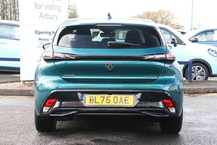 10" Driver instrument panel graphics, Adaptive cruise control with stop and Go function, Bluetooth telephone facility, Compact drive selector, Driver attention warning, Emergency call service, Exterior temperature indicator with ice warning, Front and rear parking sensors, Intelligent speed adaptation, Lane keep assist, Mirror screen with wireless apple carplay and android auto, Multi driving mode selector - Eco / Normal / Sport mode selector, Multi function trip computer, Peugeot connect advanced with connected 3D navigation, PEUGEOT i-Cockpit - compact steering wheel, 10" HD colour touchscreen and digital instrument panel display, Peugeot i-connect Navigation, PEUGEOT SOS and assistance, Push button start, Service interval indicator, Speed limit recognition and recommendation, Sport pedals with foot rest, Tyre under-inflation detection system, 6 speakers radio with mp3 compatible, DAB Digital radio, Peugeot customisable iToggles, Voice recognition for radio, navigation and telephony features, 2 X LED rear number plate lights, 3 Claw DRL signature with integrated headlight design, Acoustic and tinted windscreen, Acoustic laminated front side windows, Auto dimming interior rear view mirror, Automatic hazard light activation upon heavy brake application, Automatic headlight position corrector/adjustment, Automatic triggered rear windscreen wiper in reverse gear, Body colour door handles, Body colour rear roof spoiler, Body coloured front grille, Dark tinted rear side and tailgate windows, Electric operated/heated door mirrors, Extended lower body sills to the front and side, Framed electrochromatic rear view mirror, Front and rear electric windows with one touch/anti pinch, Gloss black finish B pillar, Gloss black rear cluster connecting strip, High beam assist, HYBRID model designation badging on tailgate, Illuminated front grille, Illuminated Peugeot shield, LED 3rd brake light, LED side indicator lights integrated into door mirrors, Lion emblem badging on front wings, Model designation badges on front and rear, Nera black door mirrors, Peugeot aluminium door sills, Peugeot Matrix LED headlight technology, Power folding door mirrors, Rear full LED 3D peugeot signature claw effect lights with daylight function, Rear lower bumper gloss black diffuser effect trim, Rear reversing lights, Rear side wing doors, Sequential Front scrolling indicators, Tailgate with heated rear windscreen and wiper blade, 1/3 to 2/3 split folding rear seats, 12V socket, 2 front USB socket including 1 USB type c, 3 seat bench in 2nd row, 8 Colour personalisable ambient lighting, Aluminium dashboard and door panel decoration, Automatic air conditioning with AQS 3, Central front armrest with storage compartment, Dial and push button heater control panel, Driver and front passenger seat height adjustment, Driver and front passenger seat manual adjustment in longitudinal and back rest angle, Driver seat lumbar adjustment, Dynamic front seats, Electric power steering with reach and rake adjustable steering column, Front central console with two cup holders, Gloss black weather strips, Heated steering wheel, LED Glovebox light, Luxury carpet mats with interior contrast stitching, Manual driving mode - change gear manually via steering mounted paddles, Multifunction full grain leather steering wheel with admite green stitching & GT badging, Roof lining - Mistral black, Seatbelt unfastened on the move audible and visual alert for front and rear seats, Single front passenger seat, Ski hatch with central rear armrest with cup holder, Sunvisor with concealable mirrors and LED lighting, Twin USB charging ports in the rear (Type C), Uzila with isabella leather effect and cloth upholstery, Driver sport pack with sports power steering - 308, Visibility pack with automatic magic wash windscreen wipers - 308, 2x Isofix child seat fitting on outer rear seats, 3x Rear three-point retractable seatbelts with force limiters in the outer rear seats, ABS + EBD + EBA, Active safety brake with night function/cyclists/pedestrians, Adaptive driver and front passenger airbags with passenger airbag deactivation function, Automatic post collision braking, Child locks on rear doors, Driver/front passenger side airbags, Electronic parking brake, ESP, Front and rear curtain airbags, Front optimised safety headrests and rear retractable headrests (x3), height adjustable, Front three point retractable seatbelts with force limiters, Front/rear disc brakes, Hill start assist, Tyre pressure sensor, Acoustic vehicle alert system (AVAS), Automatic door locking when moving off, Deadlocking system, Electronic code immobiliser, Locking wheel nuts, PEUGEOT Open and Go keyless entry and start system, Thatcham cat. 1 alarm with anti lift sensor, 18" Helsinki diamond cut alloy wheels,