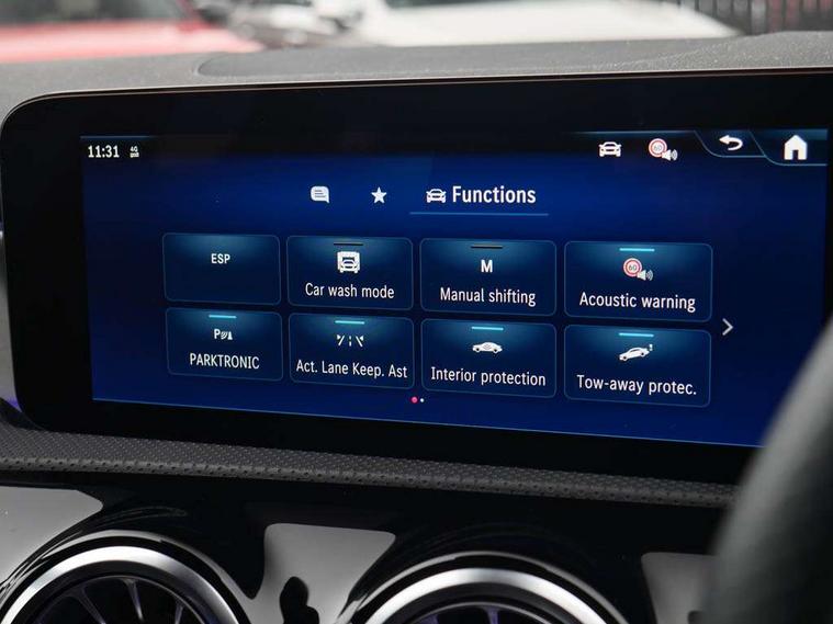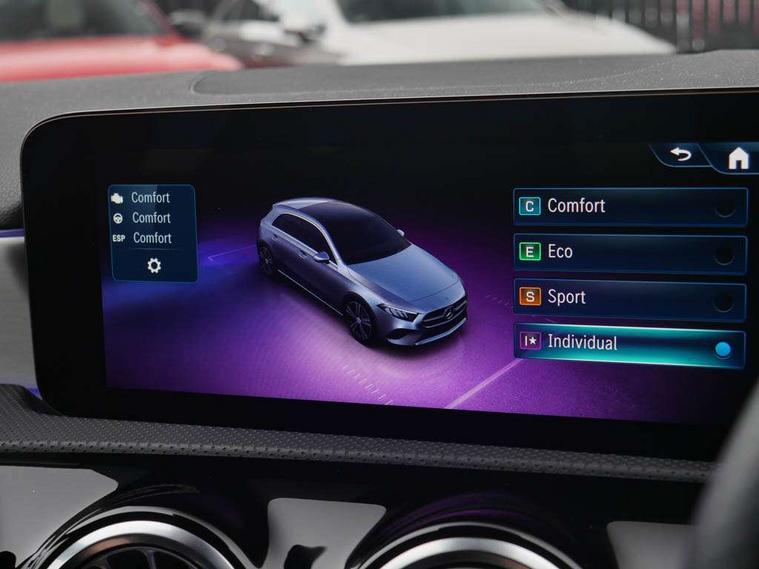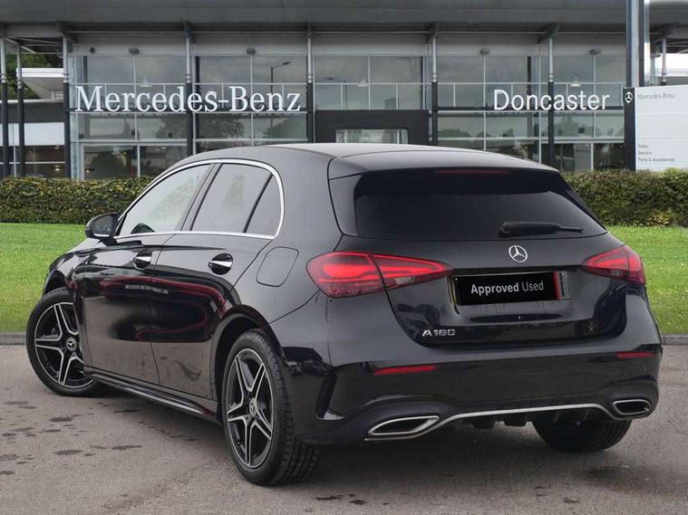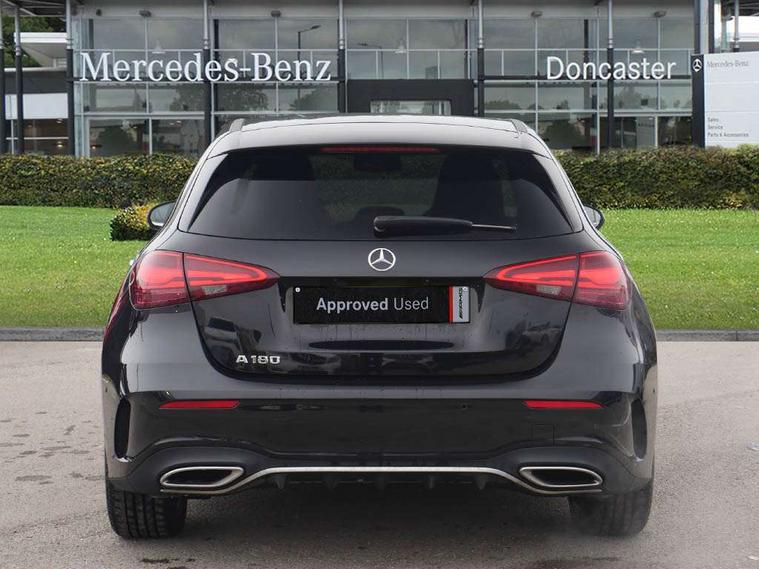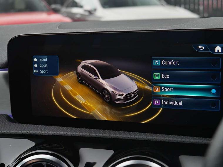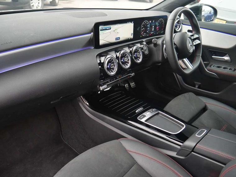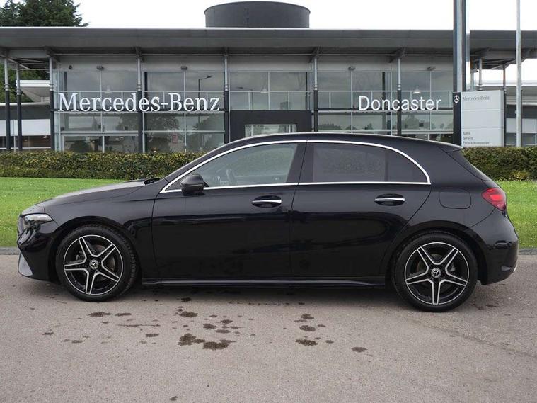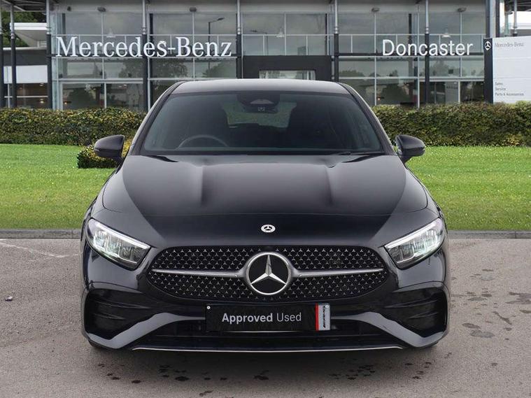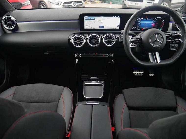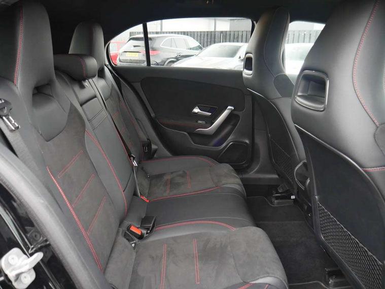 10.25 inch touchscreen central media display, 10.25" Digital instrument cluster display screen, Attention assist, Blind spot assist, Brake pad wear indicator warning light, Car wash mode, Cruise control + speed limiter, Direct steering, Direction indicators with lane change function, Dual bluetooth interfaces, DYNAMIC SELECT with a choice of driving modes (ECO, Comfort, Sport and Individual), ECO start/stop function, Engine start/stop button, Fluid level warning indicator for fuel, oil, coolant and washer fluid, Fluorescent jacket for driver, Hard-disk navigation, Hey Mercedes Voice activation, Lamp failure indicator, Lane keeping system, Mercedes me connect including emergency call system, accident recovery, breakdown and maintenance management, Mercedes me remote services, Outside temperature gauge, Owners manual in English, Pre-installation of private car share, Remote boot closing, Service indicator (ASSYST), Smartphone integration with Apple CarPlay and Android auto, Speed limit assist, Speed sensitive power steering, Tailgate, Trip computer in multifunction display with current consumption indicator, Wireless charging, Lowered comfort suspension, DAB Digital radio, MBUX multimedia system, Mercedes Benz sound system (100 W) with 6 speakers, 4 Electric Front and Rear windows, Adaptive brake lights, AMG body styling - AMG front apron with front splitter and AMG rear apron and visible exhaust tailpipe trim elements, Body colour bumpers, Body colour door handles with chrome inserts, Body colour side skirt, Chrome beltline strips, Diamond radiator grille with pins in fine star pattern, Electric adjustable and heated door mirrors with integrated LED side indicators, Exhaust system with 2 visible tailpipe trim elements and rear apron, Headlamp assist automatic headlamp activation, Heated glass rear windscreen + timer control, LED High level third brake light, LED High Performance headlamps including integral LED daytime running lamps and adaptive highbeam assist, LED tail lamp, Privacy glass, Radio aerial, Rain sensing windscreen wipers with two sensitivity settings, Rear fog lights, Rear side wing doors, Rear windscreen wiper, Window line trim strip in chrome, 3 seat bench in 2nd row, 3 Spoke flat bottom leather multi function steering wheel with perforated leather in grip area, 4 way lumbar support, 40:20:40 split folding rear seats, Air conditioning - One zone THERMATIC automatic climate control with automatically controlled air distribution, AMG floor mats, Artico man-made leather/Microcut microfibre upholstery, Automatic child seat recognition sensor, Black air vents with surround in silver chrome, Black roof lining, Brushed stainless steel sports pedals with rubber studs, Front centre armrest with stowage, Front door sills with Mercedes Benz lettering, Front seat backs luggage nets, Galvanished gear shift paddles on steering wheel, Heated front seats, Height/reach adjustable steering column, Interior lighting - 64 colour Ambient lighting, Interior mirror with reading lamps in black and frameless, Rear armrest with 2 cupholders, Rear head restraints, Seat occupancy sensor for front passenger seat, Single front passenger seat, Sports seats with integrated headrests, Stowage compartment in centre console with retractable cover, Sunvisors with illuminated vanity mirrors, Twin front cupholders, Light and sight package - A Class, Mirror package - A Class, Parking pack with 180 degree view - A Class, Seat comfort pack - A Class, USB pack plus - A Class, 3 rear 3 point seatbelts, ABS with Brake Assist, Active bonnet, Active brake assist includes forward collision warning system with autonomous braking, Adaptive brake assist with hold function and hill start assist, Bonnet with power domes, Childproof locks manually operated for rear doors and electrically operated for rear power windows, Crash responsive emergency lighting, Driver and passenger head and side airbags, Drivers knee airbag, Dual stage driver/passenger airbags, Electronic parking brake, ESP curve dynamic assist, ESP with ASR, Front and rear seatbelt reminder, ISOFIX and top tether child seat fixing points in two outer rear seats, Tyre pressure monitoring system, Warning triangle and first aid kit, Window airbags, Alarm system/interior protection/immobiliser, Guard 360 degree vehicle protection, Keyless entry lock/unlock, Keyless Go, Remote central locking and crash sensor with emergency opening function, Black seatbelts, Light longitudinal grain aluminium trim, 18" AMG 5 twin spoke light alloy wheels, aerodynamically optimised, painted in black with high sheen finish, Summer tyres, Tirefit sealant kit,