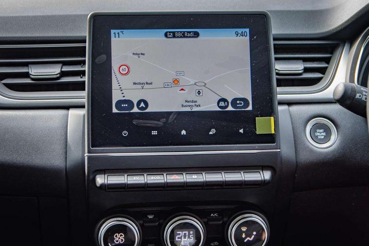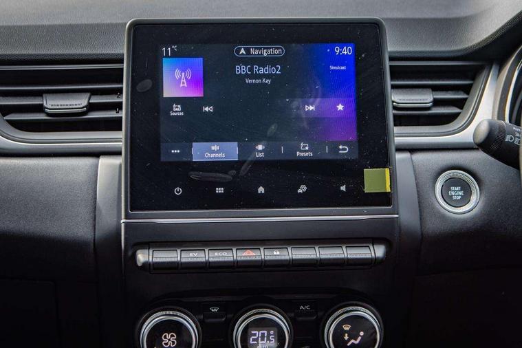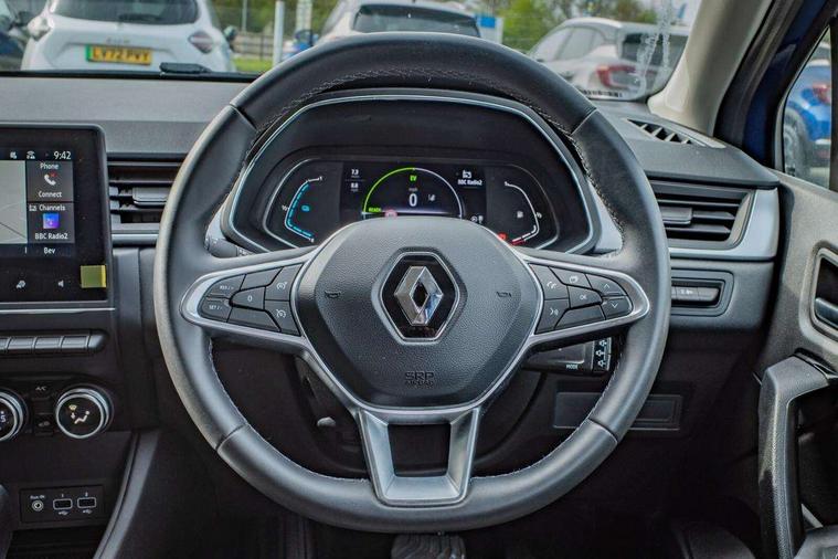 7" TFT Driver information display, Cruise control + speed limiter, eCall emergency call system, Eco mode, EV button to activate pure mode, Gear change indicator, Lane departure warning system, Lane keep assist, Rear parking sensor, Renault automatic emergency assist, Traffic sign recognition with over speed prevention, Trip computer, Variable assistance power steering, Wireless phone charger, EasyLink 7" touchscreen with navigation, bluetooth, DAB radio, USB ports, compatible with Apple carplay/Android auto, Automatic front wipers with rain sensors, Automatic headlights, Automatic high/low beam, Black side door protection, Body colour door handles, Body coloured bumpers, Body coloured door mirrors, C Shaped LED front and rear lighting signatures with 3D effect on the rear lights, Drivers one touch window with anti-pinch feature, Electric rear windows, Extra tinted glass in rear windows and tailgate, Full LED headlights, Grey front and rear skid plate, LED daytime running lights, LED front fog lights, LED high level brake lights, LED rear fog light, Rear side wing doors, Rear wing door, Rear wiper, Variable speed on front windscreen wipers, 12V Accessory socket, 3 rear headrests, 60/40 split and fixed base rear seat bench, Automatic climate control with one touch demist function, Centre console storage tray, Cloth upholstery, Front head restraints, Glovebox, Heating system with pollen filter, Height adjustable driver's seat, Height/reach adjust steering wheel, ISOFIX child seat fixing points on rear outermost seats, Middle console with armrest and storage, Rear air vents, Single front passenger seat, Sliding rear bench, Standard bulb in front roof lights, Synthetic leather steering wheel, 3 rear seatbelts, ABS+EBA, B Brake Mode - One pedal driving with increased regenerative braking, Driver and front passenger, side, head and curtain airbags, Driver height adjustable seat belt, Electric parking brake, Electronic stability control, Front and rear no seatbelt warning sound, Front dash warning indicator in case of heavy braking, Front driver and passenger side airbag deactivation, Hill start assist, Rear door and window child locking function for rear door, Tyre pressure warning light, Anti drill door locks and locking fuel cap, Central door locking, Deadlocking system, Hands free keycard with push button and start/stop function, RAID (Renault Anti-Intruder Device) automatic door locking, Black soft touch dashboard, 17" Bahamas alloy wheels,