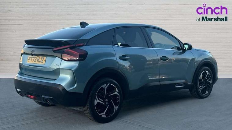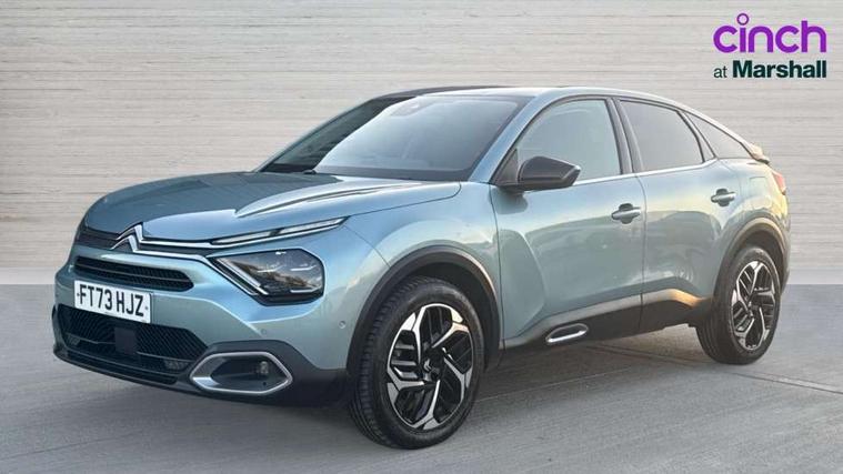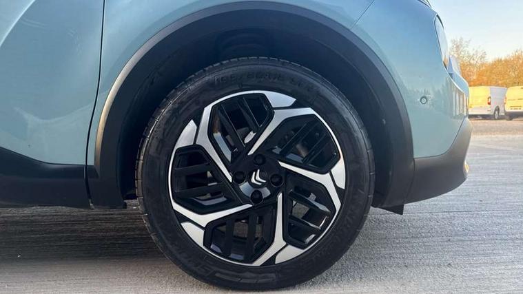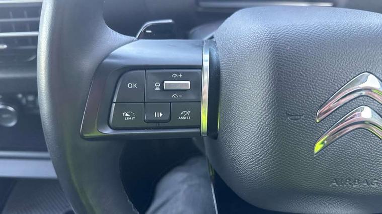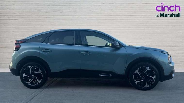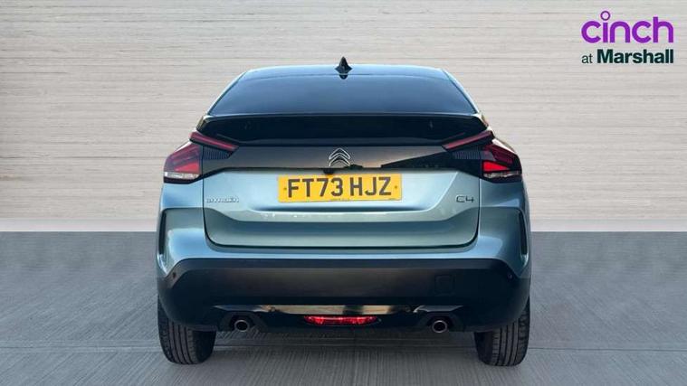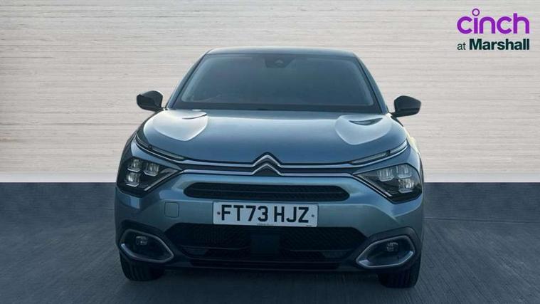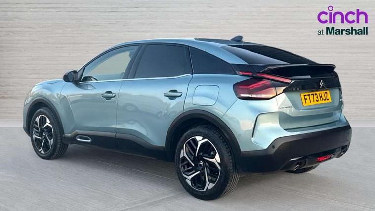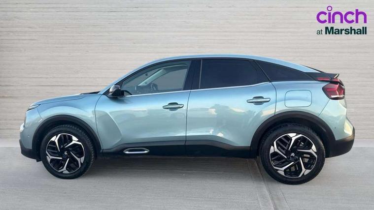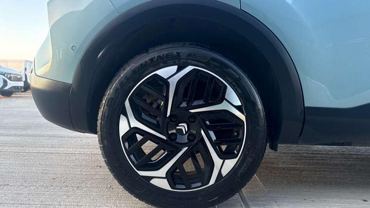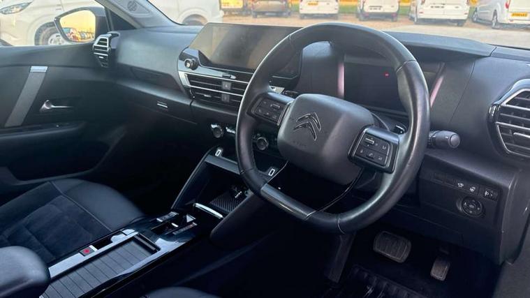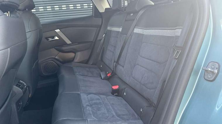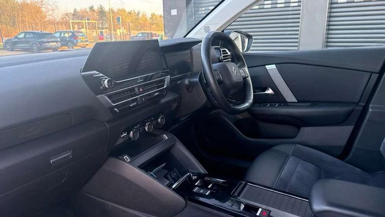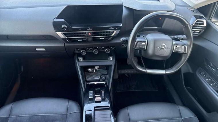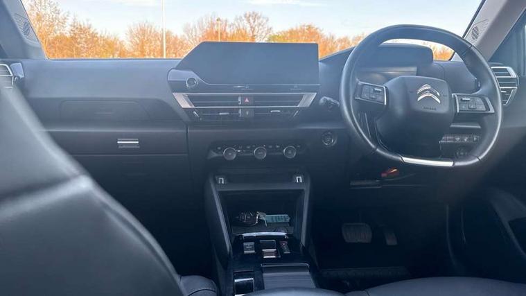 5.5 inch backlit full TFT driver's instrument cluster with LED ambient lighting, Active blind spot detection, Apple car play and Android auto, Citroen connect box emergency and assistance system, Citroen Smart Pad Support - integrated support for attaching a tablet computer for front passenger, Driver's head-up display, Electronic Power Steering (EPS), Front, rear and lateral parking sensors, In-crash braking, My Citroen Drive Plus: 10" high-resolution touchscreen user interface, controlling media, connectivity, vehicle settings + connected nav, Speed limiter, Tailgate, Voice commands, Advanced comfort suspension - double hydraulic stops on front and rear suspension, 6 speakers, Bluetooth telephone and audio streaming, DAB Digital radio, 3rd brake light, Automatic headlights, Body colour bumpers, Body colour door handles, Boot spoiler, C-Series badging on front wing, Dark tinted rear windows and side windows with chrome detail, Electrically heated, folding and adjustable external rear view mirrors with courtesy lighting, Electrochrome interior rear-view mirror with automatic day-night switching, Front and rear electric windows, Gloss black rear skirt, Intelligent beam headlights, LED daytime running lights in V signature, LED front fog lamps with static cornering function, LED front headlamps, Perla Nera black painted external rear view mirrors, Rain sensing automatic front windscreen wipers, Rear side wing doors, Rear wiper, Shark fin roof aerial, Welcome and goodbye lighting, 12V power outlet, 1x USB Type-C socket & data connection, 1x USB Type-A socket at 1st row + 1x USB Type-A socket , 1x USB Type-C socket in 2nd row, 3 rear headrests, 3 seat bench in 2nd row, Alcantara and black leather effect textile seats, Boot light, Dashboard tray in front cabin, Deluxe leather steering wheel with two command blocks, Driver and passenger sunvisors with illuminated vanity mirrors, Dual zone automatic air conditioning, Electrically heated front seats, Front and rear LED interior lighting, Front head restraints, Height adjustable driver's seat with adjustable lumbar support, Height adjustable front passenger seat, Height and reach adjustable steering wheel, Map pockets in rear of front seats, Raised centre console with armrest and two cup holders, Rear central folding armrest with cupholders and ski hatch, Single front passenger seat, Split folding rear seats, Two position boot floor, XXL storage in front cabin, High level acoustic insulation pack - C4/C4 X/e-C4 X, 3x3 point rear seatbelts, ABS, Driver and front passenger airbags, Electric parking brake, ESP, Front seatbelt pretensioners, Hill start assist, Manual child lock in second row, Manual deactivation of front passenger airbag, Row 1 and 2 curtain airbags, Row 1 side thorax airbags, Seatbelt unfastened on the move warning, Tyre underinflation detection, Anti-theft alarm (volumetric protection), Immobiliser, Keyless entry and start, Remote locking with deadlocks, 18" Bi-tone diamond-cut aeroblade alloy wheels with anti-theft locking wheel nuts, Puncture repair kit with compressor,