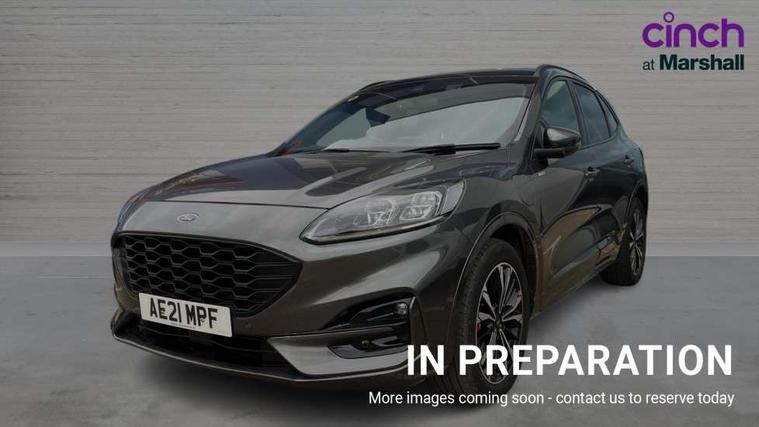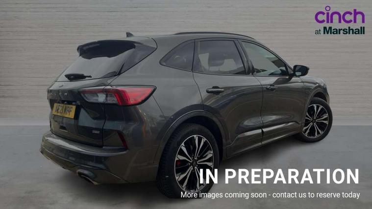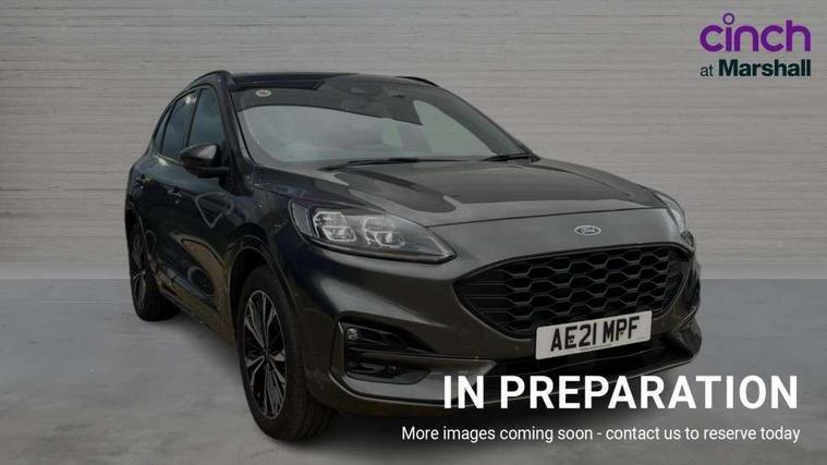 Driver impairment monitor, Ford easy fuel, Ford SYNC 3 with 8" colour touchscreen, App Link, andriod auto/apple carPlay and navigation with Ford pass connect, Front and rear parking sensors, Hands free power tailgate, Intelligent speed assist, Lane keeping aid with lane departure warning, Mobile phone wireless charging pad, Power assist steering, Selectable drive modes, 3-Pin Home charge cable (230V/16A Domestic socket), Sports suspension, Ford DAB audio system with 6 speakers, Auto dimming rear view mirror, Auto headlamps with high and low beam, Auto wipers, Black roof rails, Front LED fog lights with cornering function, Full LED headlamps, Large rear spoiler, LED daytime running lights, LED rear lights, Power folding heated door mirrors with puddle lights, Power front/rear windows with global close, Power opening panoramic roof, Privacy glass, Quickclear heated windscreen, ST Line body styling kit with unique front and rear fascia and bumper, rear painted diffuser, front painted skid plates, dark mesh upper grille, ST Line front scuff plates, Twin exhausts, 10 way power adjustable drivers seat, 2nd row sliding seats, 8 way manual passenger seat including lumbar support and height adjust, Alloy pedals, Ambient lighting, Centre console with electronic parking brake, Dark headlining and pillars, Dual electronic automatic temperature control, Flat bottomed leather steering wheel in sensico with red stitching, Front and rear head restraints, Heated passenger and driver seats, Rear charging point, Sensico partial premium leather upholstery, Sports seats, ST Line front and rear floor mats, B&O with large instrument cluster pack - Kuga, 3x3 point rear seatbelts, Airbags - front driver/passenger, front and rear curtain, Drivers knee airbag, Electronic stability control (ESC) and ABS, Ford MyKey Gen 2 safety system, Post collision braking, Powered child proof rear door locks, Pre collision assist with autonomous emergency braking, Red brake calipers, Tyre pressure monitoring system, Engine immobiliser, Keyless entry, Keyless start with 'Ford Power' starter button, Locking wheel nuts, Remote powered central double locking doors, Thatcham category 1 alarm,