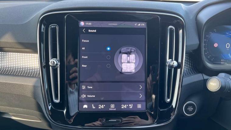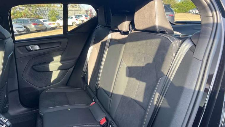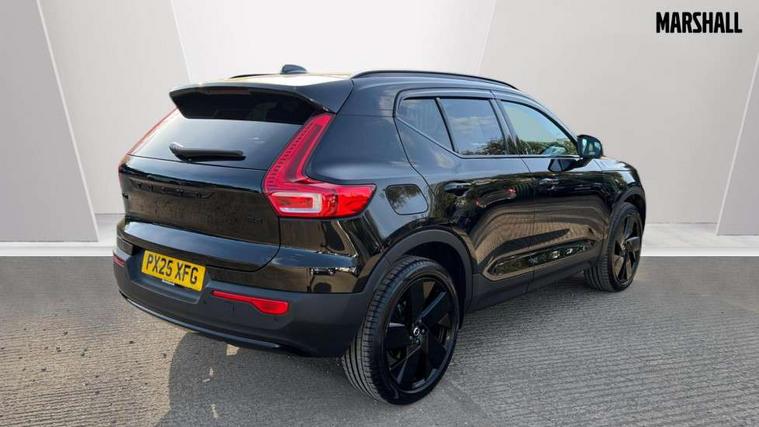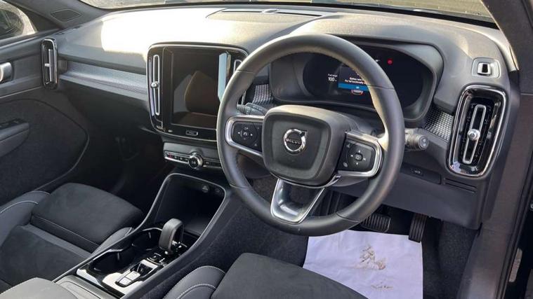 12.3" Progressive Driver Display, 9" centre console portrait touch screen, Adjustable steering wheel force, Android auto (Wired), Apple carplay (wired), Bluetooth handsfree system, Driver alert control, Driver assistance (pilot assist and adaptive cruise control), Driver awareness - Blind spot information system with steer assist, cross traffic alert with autobrake and rear collision warning and mitigation, E-call, Front park assist, Google automotive services - Enabled entertainment apps, navigation with google maps, voice recognition with google assistant, Hands free power tailgate, Intelligent speed assistance, Lane keeping aid, Oncoming Lane Mitigation, Rear park assist, Speed sensitive steering, Volvo cars services with app - Driving journal, emergency and breakdown call, engine remote start, remote door locking/unlocking and vehicle dashboard, Wireless/Inductive Mobile Phone Charging, Automatic transmission with start/stop and manual change functions, Dynamic chassis, DAB Digital radio, Steering wheel mounted remote controls, Adaptive brake lights with high level LED brake lights, Auto dimming feature for exterior door mirrors, Auto dimming interior mirror, Automatic headlamp levelling, Automatic LED Headlights + Active high beam incorporating daytime running lights, Colour coordinated auto folding and heated power door mirrors, Dark tinted windows - rear side windows and rear screen, Front aluminium tread plates, Front and rear electric windows, High gloss black front and rear skid plate, High gloss black front bumper deco, High gloss black front grille strikethrough and ironmark, High gloss black rear model, engine and volvo logo badges, High gloss black window trim, Home safe and approach lighting, Integrated roof rails in high gloss black, LED front fog lights, Puddle lights, Rain sensor with automatic windscreen wiper activation, Rear side wing doors, Rear wiper, Roof antenna, Roof spoiler, Visible VIN plate, 12V socket in front tunnel console and luggage compartment, 2-Zone electronic climate control with CleanZone air quality system and pollen filter, 3 seat bench in 2nd row, 3 Spoke tailored steering wheel with chrome trim, 60/40 versatile split folding rear seat, Centre console cupholders and storage, Charcoal headlining, Connect textile/microtech upholstery, Flexible load floor and grocery bag holder, Floor mats, Front cabin courtesy lights, Front door pocket, front cupholder, ambient front door, rear reading, rear courtesy, instrument panel and tailgate lighting, Front footwell illumination, Front headrests, Front reading lights, Front seat cushion extensions, Front side step illumination (under door), Glovebox bag hook, Heated front seats, Height adjustable passenger seat, Height/reach adjustable steering column, High gloss centre tunnel deco, Illuminated glovebox, Illuminated luggage compartment, Illuminated vanity mirrors + ticket holder, Integrated waste bin, Isofix attachments on outer rear seats, Load cover, Load protection net, Multi directional lumbar support for driver and passenger seat, Power driver seat with memory + exterior mirrors memory, Rear armrest with cupholders, Rear headrests, Single front passenger seat, Underfloor cargo storage, Climate pack without heated front seats - XC40, 3x3 point rear seatbelts, City safety with steering support with Pedestrian + cyclist + front collision warning with full auto brake and rear auto brake, Driver and passenger airbags, Drivers knee airbag, Electronic parking brake with auto hold, First aid kit, Front and outer rear seatbelt reminder and pretensioners, Front seats SIPS airbags, Hill descent control, Hill start assist, Inflatable curtain, Passenger airbag cut-off device, Power child locks on rear doors, Road sign information display, Run off Road Protection, SIPS (Side Impact Protection System), Slippery road and hazard light alert, Stability and Traction Control with Spin control, Engine Drag Control and Corner Traction Control, Tyre pressure monitoring system, Vehicle deceleration control with Anti-lock Brake System, Electronic Brake Distribution and Emergency Brake Assist, Warning triangle, WHIPS whiplash protection system - front, 2 x Key integrated remote control central locking including with deadlocking system and auto open/close windows, Anti-theft alarm including immobiliser/volume sensor + level sensor, Keyless drive includes keyless entry and keyless start, Locking wheel nuts, 20" 5 spoke high gloss black alloy wheels,