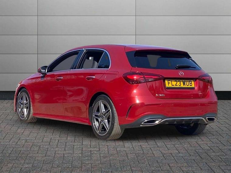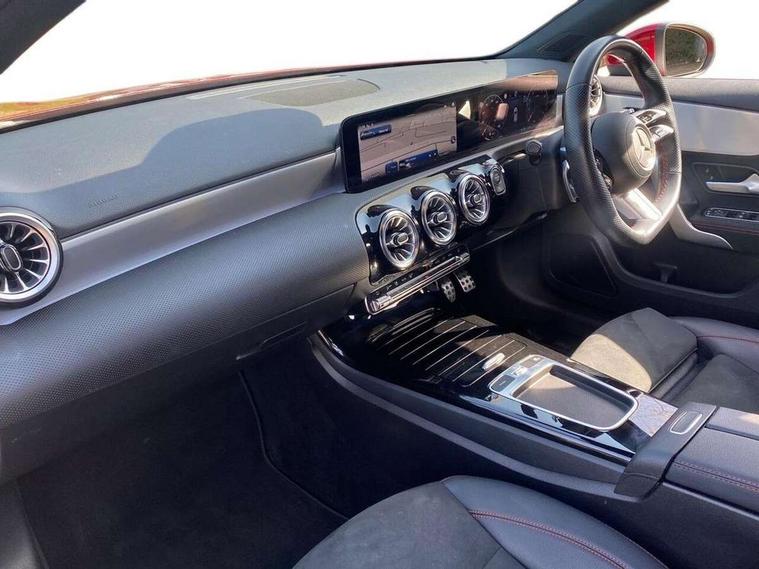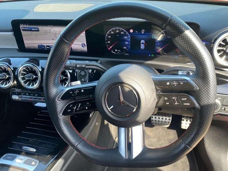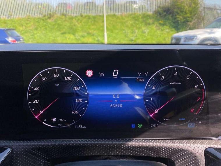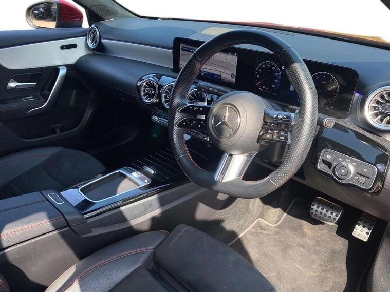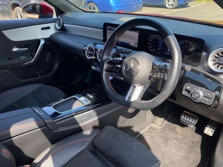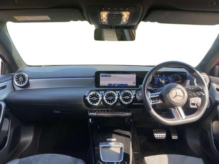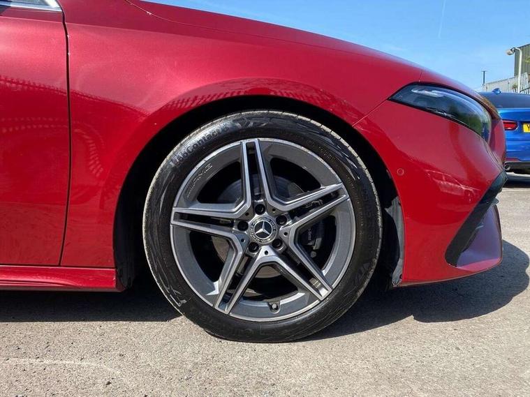 10.25 inch touchscreen central media display, 10.25" Digital instrument cluster display screen, Attention assist, Blind spot assist, Brake pad wear indicator warning light, Car wash mode, Cruise control + speed limiter, Direct steering, Direction indicators with lane change function, Dual bluetooth interfaces, DYNAMIC SELECT with a choice of driving modes (ECO, Comfort, Sport and Individual), Easy pack tailgate hands-free access, ECO start/stop function, Engine start/stop button, Fingerprint scanner, Fluid level warning indicator for fuel, oil, coolant and washer fluid, Hard-disk navigation, Hey Mercedes Voice activation, Lamp failure indicator, Lane keeping system, MBUX augmented reality for navigation, Mercedes me connect including emergency call system, accident recovery, breakdown and maintenance management, Mercedes me remote services, Outside temperature gauge, Owners manual in English, Pre-installation of private car share, Preinstallation for Mercedes Benz link, Remote boot closing, Service indicator (ASSYST), Smartphone integration with Apple CarPlay and Android auto, Speed limit assist, Speed sensitive power steering, Trip computer in multifunction display with current consumption indicator, Wireless charging, Lowered comfort suspension, DAB Digital radio, MBUX multimedia system, Mercedes Benz advanced sound system (225 W) with 10 speakers, 1 central speaker, speakers on doors, a tweeter on door, one sub woofer + boost amplifier, 4 Electric Front and Rear windows, Adaptive brake lights, AMG body styling - AMG front apron with front splitter and AMG rear apron and visible exhaust tailpipe trim elements, Body colour bumpers, Body colour door handles with chrome inserts, Body colour side skirt, Body coloured door mirrors, Chrome beltline strips, Diamond radiator grille with pins in fine star pattern, Electric adjustable and heated door mirrors with integrated LED side indicators, Exhaust system with 2 visible tailpipe trim elements and rear apron, Headlamp assist automatic headlamp activation, Heat insulating dark tinted rear and rear side windows, Heated glass rear windscreen + timer control, LED High level third brake light, LED High Performance headlamps including integral LED daytime running lamps and adaptive highbeam assist, LED tail lamp, Privacy glass, Radio aerial, Rain sensing windscreen wipers with two sensitivity settings, Rear fog lights, Rear side wing doors, Rear windscreen wiper, Window line trim strip in black, 3 seat bench in 2nd row, 3 Spoke flat bottom leather multi function steering wheel with perforated leather in grip area, 4 way lumbar support, 40:20:40 split folding rear seats, Automatic child seat recognition sensor, Black air vents with surround in silver chrome, Black roof lining, Brushed stainless steel sports pedals with rubber studs, Floor mats with AMG lettering, Front centre armrest with stowage, Front seat backs luggage nets, Galvanished gear shift paddles on steering wheel, Heated front seats, Height/reach adjustable steering column, Illuminated Mercedes Benz lettering front door sills with changeable cover, Interior lighting - 64 colour Ambient lighting, Interior mirror with reading lamps in black and frameless, Rear armrest with 2 cupholders, Seat occupancy sensor for front passenger seat, Single front passenger seat, Sports seats with integrated headrests, Stowage compartment in centre console with retractable cover, Sunvisors with illuminated vanity mirrors, Twin front cupholders, Two zone thermotronic luxury automatic climate control, Light and sight pack - A Class, Mirror package - A Class, Parking pack - A Class, Seat comfort pack - A Class, USB pack plus - A Class, 3 rear 3 point seatbelts, ABS with Brake Assist, Active bonnet, Active brake assist includes forward collision warning system with autonomous braking, Adaptive brake assist with hold function and hill start assist, Bonnet with power domes, Childproof locks manually operated for rear doors and electrically operated for rear power windows, Crash responsive emergency lighting, Driver and passenger head and side airbags, Drivers knee airbag, Dual stage driver/passenger airbags, Electronic parking brake, ESP curve dynamic assist, ESP with ASR, Exit warning, Front and rear seatbelt reminder, ISOFIX and top tether child seat fixing points in two outer rear seats, Tyre pressure monitoring system, Warning triangle and first aid kit, Window airbags, Alarm system/interior protection/immobiliser, Guard 360 degree vehicle protection, Keyless entry lock/unlock, Keyless Go, Remote central locking and crash sensor with emergency opening function, Black seatbelts, Light longitudinal grain aluminium trim, 18" AMG 5 twin spoke light alloy wheels, aerodynamically optimised, painted in termolite grey with high sheen finish, Summer tyres, Tirefit sealant kit,