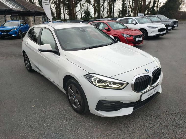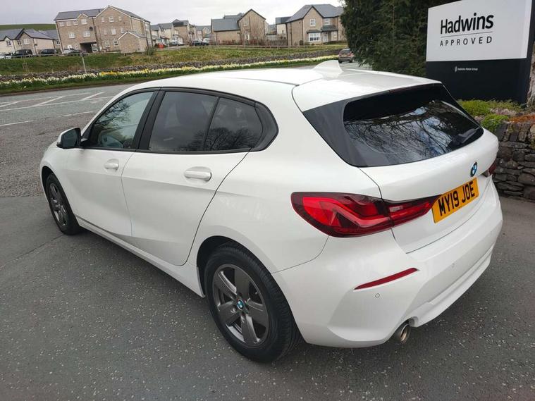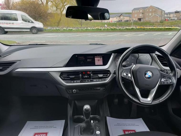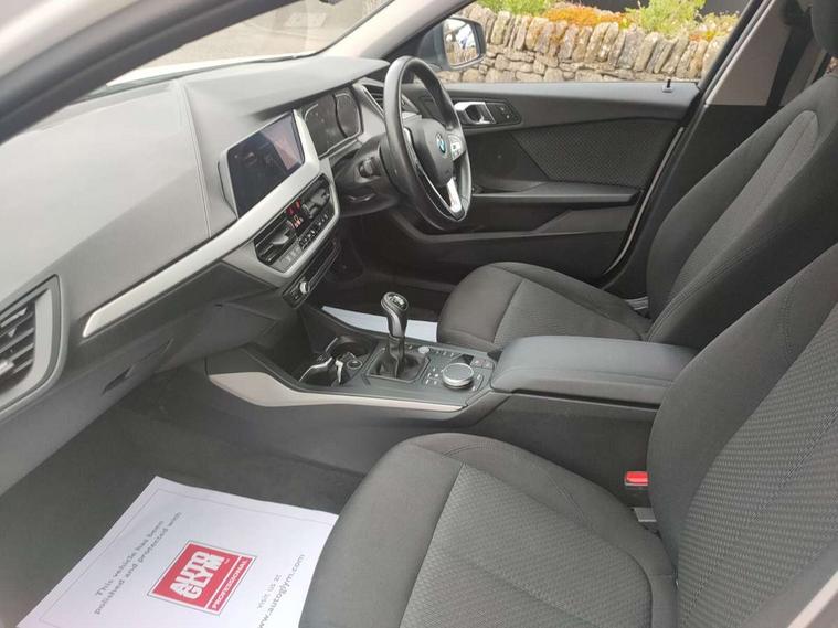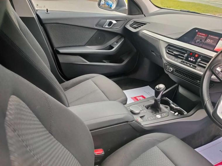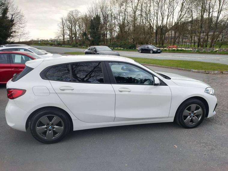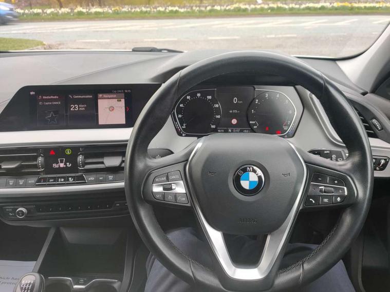 Active guard plus, Attentiveness assist, BMW Online services, BMW Teleservices, Check Control warning system for monitoring of lights and door/luggage compartment open warning, Connected eDrive Services, Cruise control with brake assist, Eco pro mode, Electric power steering, Integrated owners handbook, Lane departure warning system, On board computer, Optimum shift indicator, Personal Profile, Pull away assistant, Speed limiter, Anti roll bar front and rear, Balancer shaft, Double VANOS, Drive Performance Control, Electronic differential lock, Petrol Particulate Filter, VALVETRONIC engine management, Bluetooth audio streaming, DAB Digital radio, Auto dimming rear view mirror, Body colour door handles, Body colour front and rear bumpers, Body colour mirror caps, Chrome exhaust tailpipe in single, round (Exhaust tailpipe, stainless steel - single, round), Chrome kidney grille with extra wide black, high gloss black vertical slats, Direction indicator side lights in exterior mirrors, Fading support, Follow me home headlights, Front and rear bumper system with replaceable deformation elements, Front and rear electric windows with open and close fingertip control, anti trap facility and comfort closing, Front door sill finishers in black plastic with BMW designation, Green tinted heat protection glazing, Headlight beam throw control, Heated, electrically adjustable exterior mirror aspheric on driver side, convex on passenger side, High level third brake light, LED daytime running lights, LED front fog lights, Lightweight engineering, Matt black air guide grilles, Matt black roof moulding, B pillar finisher and wheel arch trim, Matt black window frame, Model designation on right side of tailgate, Nearside reverse light in rear light cluster, Rain sensor including auto headlights activation, Rear fog lights, Rear window wiper, Shark fin antenna, Visible VIN plate, Welcome lighting, Windscreen wipers with integrated washing jets, 12V power socket in centre console, 2 cupholders in front centre console, 3 rear seat head restraints, 3 spoke sports leather steering wheel in pearl Chrome, Automatic single zone air conditioning, Child seat ISOFIX attachment for two outer rear seats and front passenger seat with anchorage points, Conditioned based service, Driver side folding compartment in instrument panel, Folding rear clothes hook, Folding rear seats, Four grab handles integrated in roof lining, Front and rear door pockets, Front and rear side armrest integrated into door trim, Front armrest foldable with integrated storage compartment, Glove compartment, Height adjustable front head restraints, Manual adjust steering wheel, Multi-function controls for steering wheel, Rear seat backrest with manual 60:40 split folding with 3 top tether clips integrated on rear of seat panels, Storage compartment in centre console, Sun visors with vanity mirrors and insert tab, Velour floor mats, Extended storage pack - 1 Series, Interior lights pack - 1 Series, 2 tone horn, 3 point seatbelts on all seats, front pyrotechnic belt tensioners, stopper and belt force limiters, rear coded belt buckles, Airbags - Front driver and passenger, front and rear head, front side, curtain head protection, Anti lock braking system (ABS) with brake assist, BMW emergency call, Brake drying, Braking readiness, City braking function, Crash sensor activating central locking release, hazard warning lights, fuel cut off, interior lighting + activation of safety battery terminal clamp, Driver and front passenger seat belt security check, Dynamic stability control + (DSC+), Dynamic Traction Control - DTC, Electrically operated hand brake, Front passenger manual airbag deactivation, Rear child proof door locks, Seatbelt warning, Side impact protection, Tyre pressure monitoring system, Warning triangle and first aid kit, Automatic drive away locking facility, Central locking switch for all doors, fuel filler cap and luggage compartment, Deadlocking function system to all doors, Locking wheel bolts, Remote central locking with two Integrate key, one button for opening and closing all lock, open and close window, button for open luggage compartment, Start/stop button with comfort go keyless engine start and auto start stop deactivation button, Thatcham Cat.1 alarm and immobiliser, Quartz Silver matt interior trim, Reduced rolling resistance tyres,