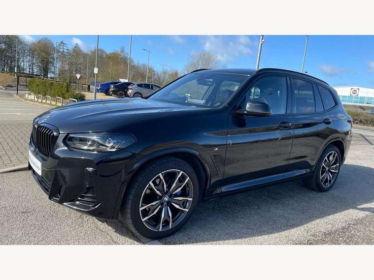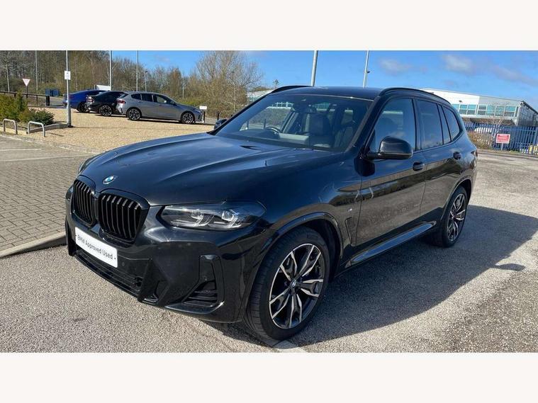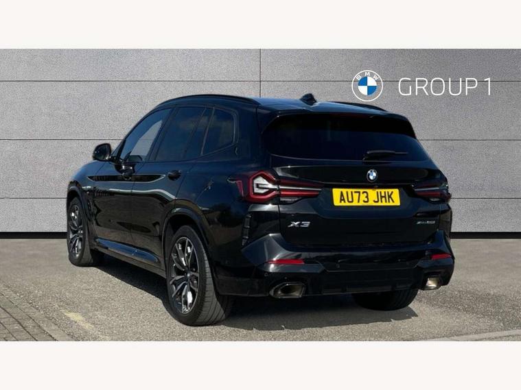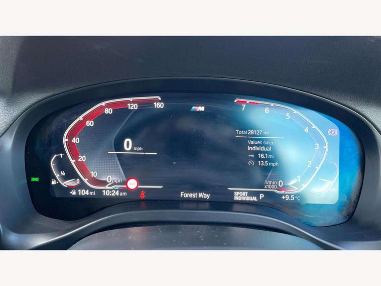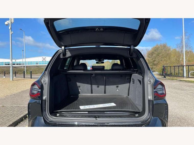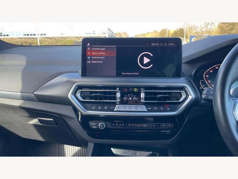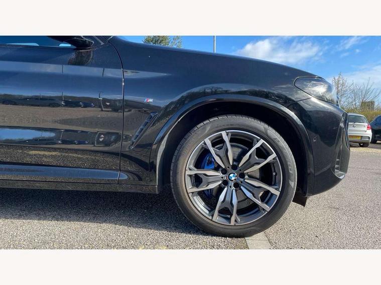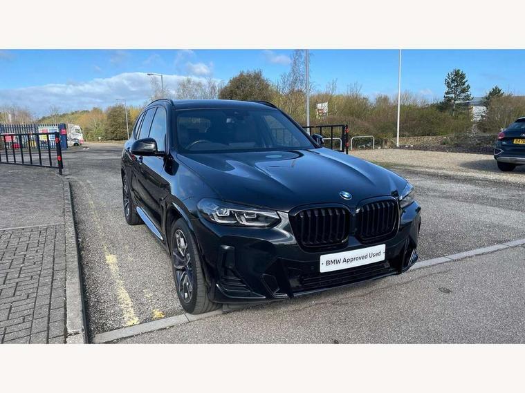 Active Guard, Attentiveness assist, BMW Live Cockpit Professional nav system including 12.3" instrument display + 12.3 high resolution control display, BMW Online services, BMW Teleservices, Brake pad wear indicator in front and rear, Check Control warning system for monitoring of lights and door/luggage compartment open warning, Condition based service - BMW service history, electronic service booklet, integrated owner's handbook, Connected drive services, Electric boot lid, Front/rear Parking distance control, iDrive touch controller with 8 favourite buttons, Instrument cluster with speedometer with mph readout, tachometer, fuel gauge and oil temperature gauge, Lights on warning by audio warning signal when ignition is switched off, Oil sensor for level and grade, warning by check control system, On board computer - average speed+fuel consumption, service interval, clock/date, odometer/trip meter, outside temperature display and ice warning, Optimum shift indicator, Personal Profile - automatic lock when driving away selectable, Run flat indicator, Stop/start system, Variable sports power steering with drive performance control Sport+ mode, Automatic transmission with gearshift paddles, Incorrect fuelling protection, M sport suspension, Multi-link rear suspension, BMW professional radio/CD/MP3, DAB tuner, Acoustic glazing, Automatic windscreen wipers and automatic headlight, Black finish on B pillars, Body colour door handles, Body colour electric adjust heated aspherical door mirrors, Body colour roof mouldings, Body coloured bumpers, Direction indicator, side repeaters, integrated in exterior mirrors, Dynamic brake lights, Exhaust tailpipes - dual, round, split left and right with chrome finisher, Fingertip control / anti-trap function on electric window, Folding wing mirrors with auto dimming, Follow me home headlights, Front and rear bumper system with replaceable deformation elements, Front and rear electric windows, Gloss chrome tailpipes finishers, Green tinted heat insulating glass, Heated windscreen washer jets, High beam assistant, High gloss black shadow line roof rails, High gloss shadowline exterior trim in decorative moulding side frame/recess cover/guide rail/B, C pillars/mirror frame and triangle with mirror base, High level 3rd brake light incorporating LED Technology, Interior rear view electrochromatic mirror with automatic anti dazzle function, LED tail lights, Lightweight engineering, M aerodynamic bodystyling, M Sport entry door sill strips, Model designation, Rain sensor, Rear side wing doors, Rear wing door, Rear wiper, Shark fin antenna, Side exterior M designation badges, Visible VIN plate, Welcome lighting, Windscreen wipers with adjustable interval, 12V power point in luggage area, 12V power socket in front centre console, 2 x USB Type C ports for charging and data transmission (front centre console) and 2 x USB Type C ports for charging (rear centre console), 3 rear headrests, 3 seat bench in 2nd row, 3 zone automatic air conditioning, 4 lashing points to secure luggage, 40:20:40 split folding rear seat with loading system, Ambient lighting, Anthracite headlining, Automatic interior light when door is opened/ignition switched off or via remote key, Floor mats in velour, Foldable storage floor with compartment, Four grab handles integrated in roof lining, Front and rear bottle holders integrated into door trim storage compartments, Front and rear side armrests integrated into door trim, Front centre armrest with storage compartment, Front footwell lights, Front head restraints, Front passenger seat, Front sports seats, Front/rear courtesy lights with soft on/off dimming, Front/rear reading lights, Heated front seats, Isofix rear child seat preparation, Leather gear knob, Lockable glove compartment, Luggage area underfloor compartment, Luggage compartment lighting, M sport leather steering wheel, Multifunction steering wheel, Parcel shelf removeable and storable under boot floor, Reach and rake adjustable steering column, Rear centre armrest with 2 cupholders, Removable / retractable luggage cover, Slope adjustable rear seats, Storage compartment in rear centre console and front/rear door trims, Sun visors with vanity mirrors and ticket pocket, Toolkit located in luggage compartment, Two front cupholders with removable oddments tray/lid, Connected pro pack - X3, ADB - Automatic Differential Brake, Anti-lock braking system (ABS) with brake assist, Automatic Stability Control (ASC), Battery safety cut-off, BMW emergency call, Brake drying, Brake energy regeneration, Braking pre-tensioning, Child locks on rear doors, Cornering brake control (CBC), Crash Sensor - activation of central locking release, hazard warning light and interior lighting, Deactivation of fuel pump in the event of a crash, Driver and front passenger front and side airbags with passenger deactivation and ITS front and rear head airbags, Driver and front passenger knee airbag, DSC+, Dynamic brake control, Dynamic Traction Control - DTC, Electromechanical parking brake, Hill descent control, Hill start assist, Seatbelt security check for front seats, Side impact protection, Three point seatbelts to all seats with front and outer rear pyrotechnic belt tensioners and seat belt force limiters, Two tone horn, Tyre pressure sensor, Ventilated front and rear disc brakes, Warning triangle and first aid kit, Central locking switch for all doors, fuel filler cap and luggage compartment, Electronic engine immobiliser, Locking wheel nuts, Remote control including two integrated key - one button for open/close all lockable content, windows and separate button for open luggage compartment, Remote control Thatcham category 1 alarm, Start/stop button with Comfort Go keyless engine start and auto Start/stop deactivation button, Low rolling resistance tyres,
