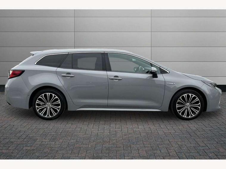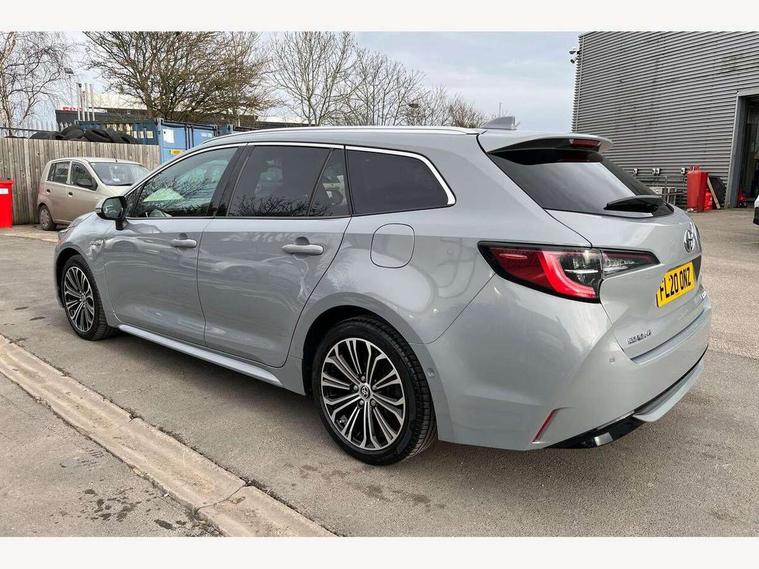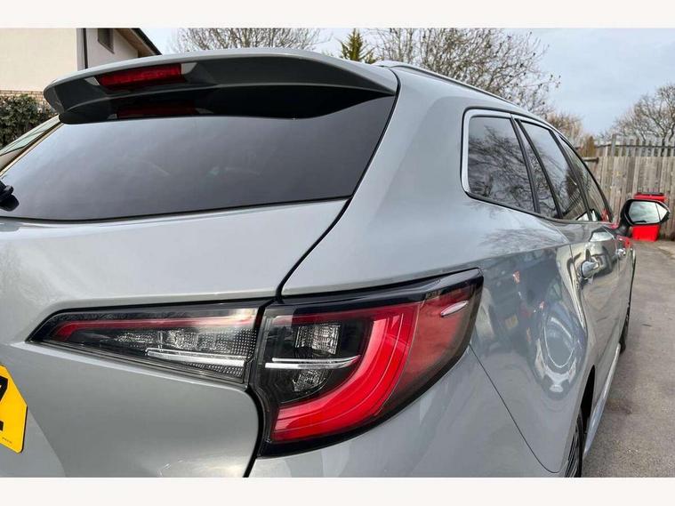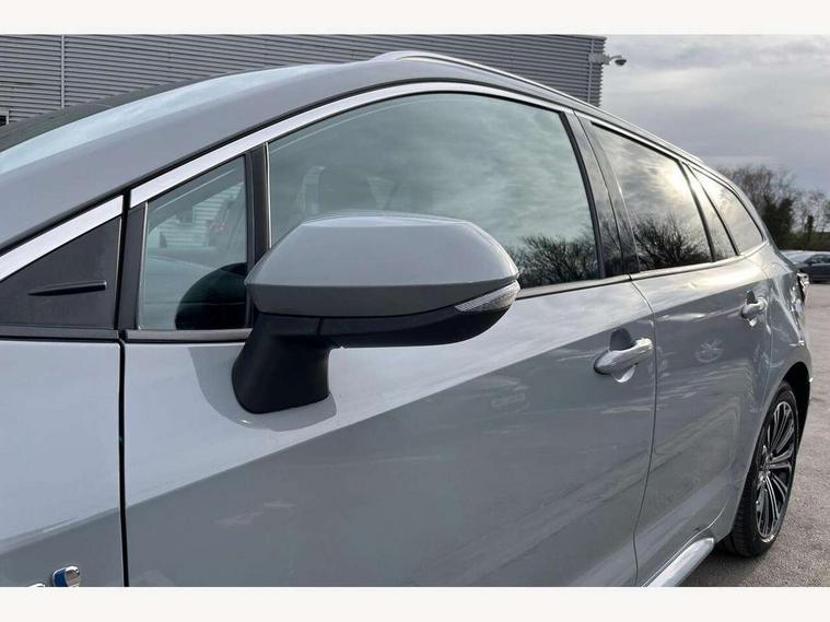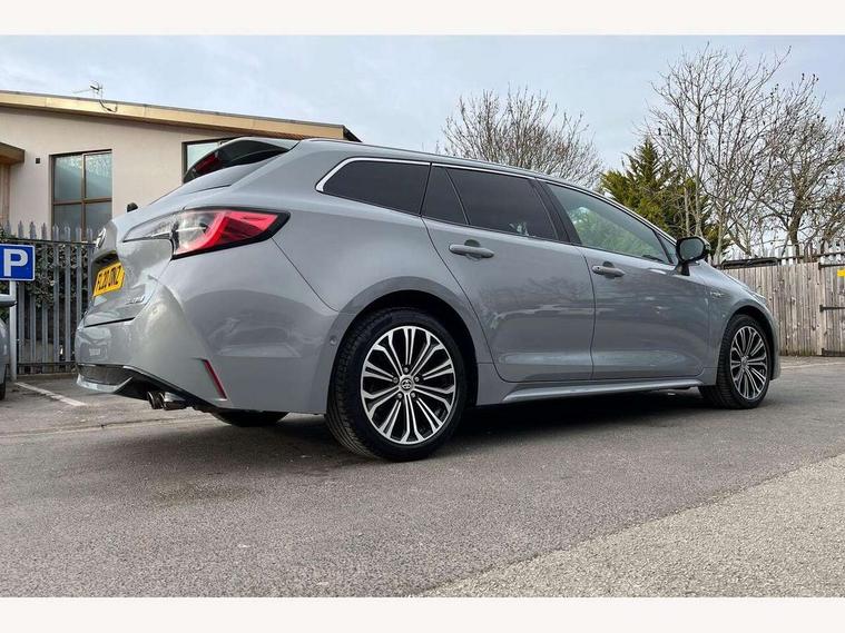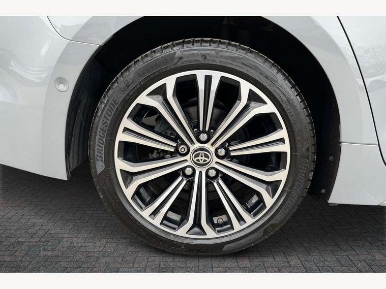 Bluetooth telephone connectivity, E-call, Electrically assisted power steering, Intelligent park assist, Kick sensor for power tailgate, Push button start, Reversing camera, Smartphone integration with Apple CarPlay and Android auto, Speed limiter, Voice activation, Vehicle Stability Control (VSC), 2 ring combimeters with 7" colour TFT screen, 6 speakers, 8" multimedia and back monitor, AM/FM radio, DAB Digital radio, Toyota touch 2 with go navigation system, USB and Aux in connectors + 12V front outlet, Anti-jam protection on power windows, Auto dimming inside rear view mirror, Auto up and down function on all power windows, Automatic folding mirrors, Automatic headlights, Automatic wipers, Bi-LED headlights with LED lightguide, Body coloured bumpers, LED daytime running lights, LED front fog lights, LED rear combi lights with LED lightguide, Power adjustable heated door mirrors, Power front windows, Power rear windows, Privacy glass, Rain sensing wipers, Rear window wiper, Reverse tilting door mirrors, Shark fin antenna, 12v power outlet - luggage side, 3 rear headrests, 3 spoke leather steering wheel + gear knob, Clean air filter, Dual zone automatic air conditioning with ECO mode switch, Front head restraints, Full leather upholstery, Heated seats, Interior illumination, ISOFIX seat fixing (2 fixings on rear outer seats), Pollen filter, Power lumbar support, Sports seats, Steering wheel switches, Tilt/telescopic steering column, Whiplash Injury Lessening (WIL) feature (active headrest) for seats, Parking pack - Corolla, Toyota safety sense 2 pack - Corolla, 3x3 point rear seatbelts, Adjustable front driver seat belt extender, Anti lock braking system + Electronic brake force distribution, Brake assist function, Electronic parking brake, Front passenger airbag on/off switch, Front seatbelt reminder, HAC - Hill start assist control, Rear seat belt reminder, Seatbelt pretensioners and force limiters, Supplemental restraint system (SRS) 7 airbags - dual driver, dual side curtain, side impact and driver knee airbags, Traction control, Tyre pressure warning system, Alarm/immobiliser, Remote central locking + deadlocks, Smart entry, 17" Alloy wheels, Tyre repair kit,