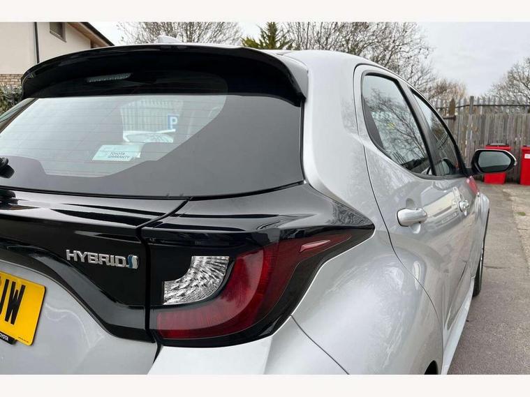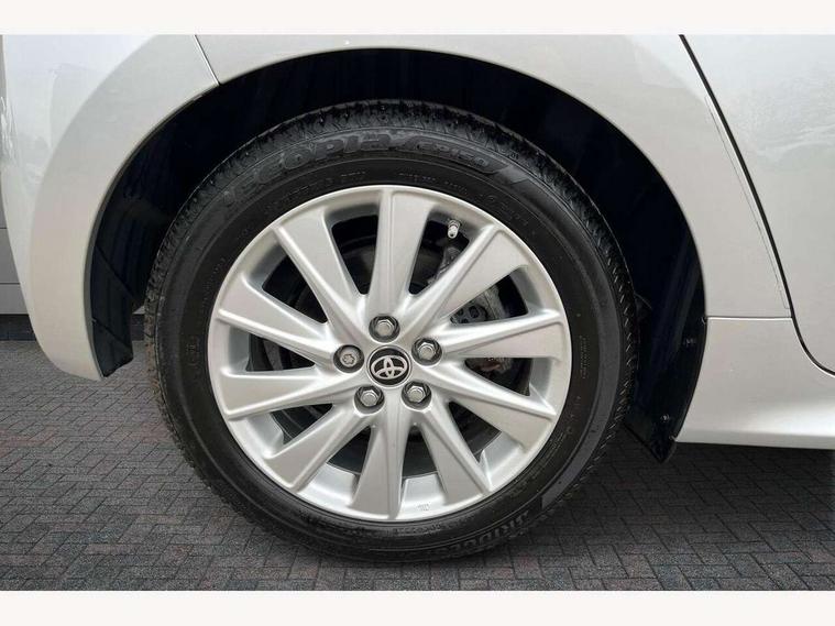 4.2" coloured LED TFT multi information display with analogue speedometer, Adaptive cruise control, Adjustable speed limit with speed warning, Bluetooth connectivity, E-call, Electric power steering, Hybrid energy display, Multi information display switches on steering wheel, Reversing camera, Smartphone integration with Apple CarPlay and Android auto, Vehicle Stability Control (VSC), 4 speakers, 7" Multimedia display touch screen, Toyota Touch 2 with DAB, USB connection, Acoustic windscreen glass, Auto windscreen wipers, Automatic headlights, Body coloured door mirrors, Electric adjustable heated door mirrors, Follow me home headlights, Front auto power windows with anti jam protection, Halogen projector headlights, LED daytime running lights, LED High mounted stop lamp, Rear spoiler, Shark fin antenna, Turning signal integrated indicators in door mirrors, 3 adjustable rear headrests, 3 spoke leather steering wheel, 60/40 split folding rear seat, Active headrests, Adjustable boot height, Auto air conditioning, Coat hooks in rear grab handles, Cup holders (2 front & door), Data Communication Module (DCM) connected services, Fabric upholstery, Front armrest, Glovebox, Height adjustable driver's seat, Isofix seat fixing, Leather gearshift, Pollen filter, Shopping bag hooks, Tilt/telescopic steering column, 3 point seatbelts on all rear seats, ABS+EBD+Brake assist, Electronic parking brake, Emergency brake light system (EBS), Front passenger airbag on/off switch, Front seatbelt reminder, Hill start assist control (HAC), Rear child proof door locks, Rear seat belt reminder, Supplemental Restraint System (SRS) 8 airbags: Driver & passenger's airbags, dual side curtain airbags, side impact airbags, front centre airbag, Toyota Safety Sense 2, Precollison + Night time Pedestrian & Cyclist Detection, Lane Trace Assist, Auto High Beam, Intelligent ACC & Road Sign Assist, Tyre pressure warning system, Alarm/immobiliser, Remote powered central double locking doors, Soft touch instrument panel, 16" Silver alloy wheels, Space saver spare wheel,