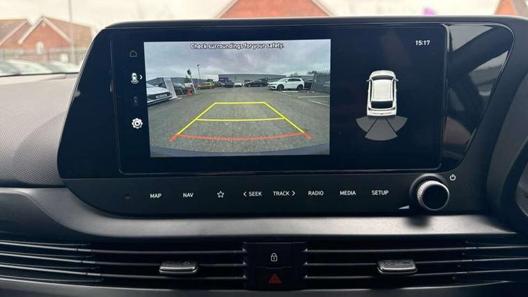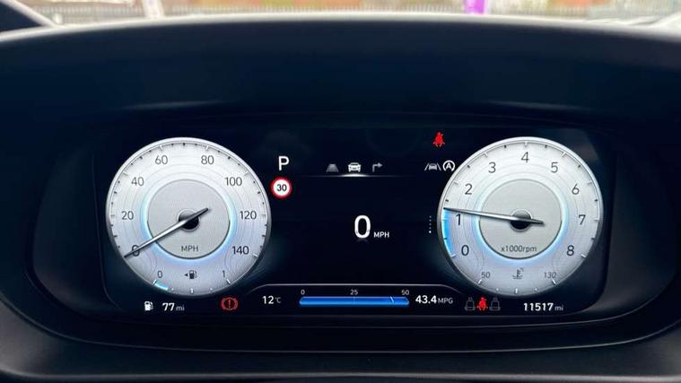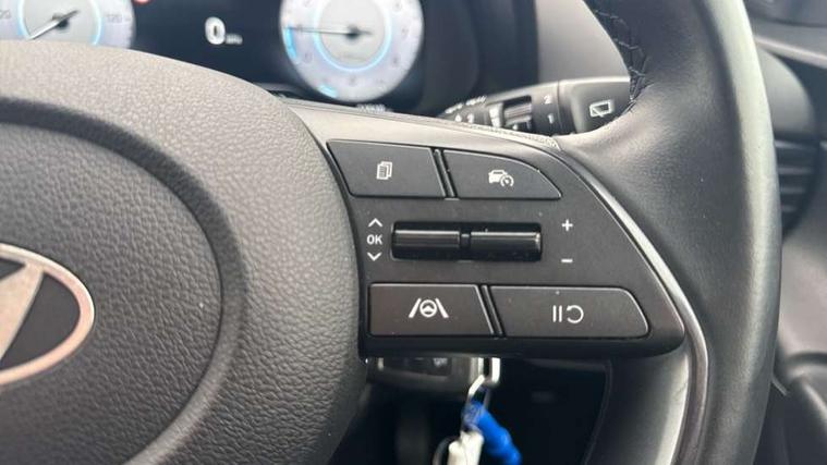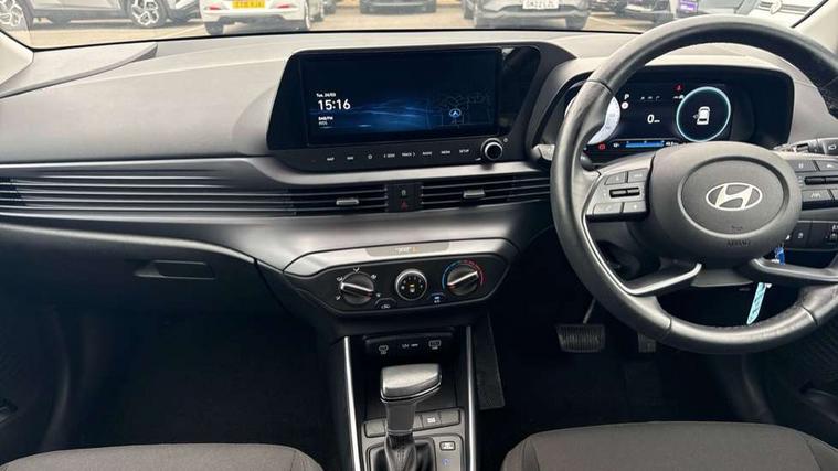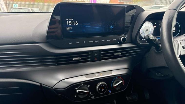 10.25" digital supervision cluster, 2nd Gen eCall, 8" Touchscreen with DAB, Apple car play/Android Auto, Cruise control + speed limiter, Forward collision assist with car, pedestrian and cycle detection, Intelligent speed limit warning, Lane follow assist, Lane keep assist, PAS, Rear parking sensor, Rear view camera with dynamic guidelines, USB C port front, 3rd brake light, Dusk sensor, Electric adjustable heated door mirrors, Front grille mesh pattern design, High beam assist, LED daytime running lights, LED Headlights, LED taillights, Rain sensor, Rear side wing doors, Rear wiper, Repositioned flat metal hyundai emblem, 3 seat bench in 2nd row, Adjustable head restraints, Air conditioning, Cloth upholstery, Floor mats, Leather steering wheel, Single front passenger seat, 3x3 point rear seatbelts, ABS with front and rear diagonally split, Autonomous emergency braking, Child locks on rear doors, Front ventilated disc brakes, Rear solid disc brakes, Tyre pressure monitoring system, 16" alloy wheels, Tyre repair kit,
