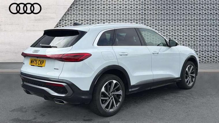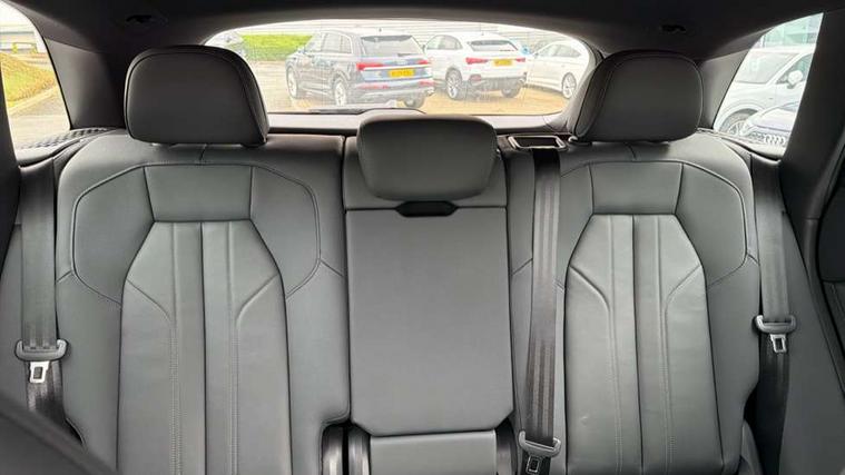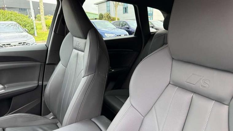 Adaptive cruise control, Attention and drowsiness detection with driver observation, Audi application store, Audi connect emergency call and service, Audi digital key, Audi drive select, Audi smartphone interface, Audi virtual cockpit plus with 11.9" OLED colour display, Camera based traffic sign recognition, Front cross traffic intersection assist, Lane change assistant with exit warning system, rear cross traffic alert and rear turn assist, Lane departure warning system, MMI navigation plus with high resolution 14.5" OLED touchscreen colour display, Park assist plus, PAS, Reversing camera, Swerve assist and front turn assist, Traffic sign based speed limiter, Audi sound system impressive sound with 8 loudspeakers including centre speaker and subwoofer, 6-channel amplifier with a total output of 180 watts, DAB Digital radio, Smartphone compartment with wireless charging, Aluminium roof rails, Auto dimming rear view mirror, Body coloured door mirrors, Electrically adjustable heated and folding + automatically dimming exterior mirrors, Front and rear electric windows, Front door sill trims with aluminium inlays, illuminated with 'S' logo, Grill frame, inlay and front air inlets in matt anthracite chrome, Headlight cleaning system, Heated rear window, High beam assist, High gloss window surrounds, LED headlights plus incl. digital DRL, dynamic coming and leaving home function with turning/all weather/motorway/manouevring and intersection lights, LED rear lights pro incl. dynamic rear indicators and illuminated light strip with animated coming and leaving home function, Logo projection light in exterior mirrors, Privacy glass, Projection third brake light for rear window in LED, Radiator grille in phantom black, Rear and side windows with heat insulating glass, Rear honeycombe grille in matt black with inlay in matt anthracite chrome, Rear side wing doors, Rear wash/wipe, S Line badge on the front wings, S line bumpers in contrasting Volcano grey metallic paint finish, Windscreen with acoustic glazing, 3 rear head restraints, 3 seat bench in 2nd row, 3 spoke leather steering wheel with multi-function buttons with touch control, flattened on top and bottom, with S badging and contrast stitching, 4 way electric lumbar support for driver and front passenger, Black carpets, Comfort centre armrest front, Deluxe 3 zone electronic climate control, Front and rear floor mats, Front sport seats with integrated head restraints, Headlining in black cloth, i-Size child seat mounting on the front passenger side and outer rear seats, i-Size and top tether on the outer rear seats, Increased charging capacity for USB ports 2X100 Watts in rear, 2X60 Watts in front, Interior trim in aluminium look, Luggage compartment lid, electrically opening and closing, Manual steering column adjustment, S embossed logo on front sport seats, Single front passenger seat, Softwrap in black, Stainless steel pedals and footrest, Steering wheel grips in perforated leather and shift paddles, Ambient lighting package plus - Q5, Rear seat bench plus pack - Q5, Storage and luggage compartment pack with luggage net - Q5, 3x3 point rear seatbelts, ABS, Acoustic vehicle alerting system, Convenience key with safelock, Driver and front passenger airbag with passenger airbag deactivation, Electric child safety locks, First aid kit with warning triangle and high visibility vests, Front emergency brake assist, Front side airbags with head airbag system and front interaction airbag, Hill hold assist, Rear seat occupant reminder, Tyre pressure loss indicator, Anti-theft wheel bolts, Thatcham approved category 1 anti theft alarm, Accent surfaces and control buttons in gloss black, Anthracite matt brushed aluminium inlays with linear embossing, Black dashboard with contrast stitching, Upper and lower interior elements in artificial leather, Tyre repair kit,