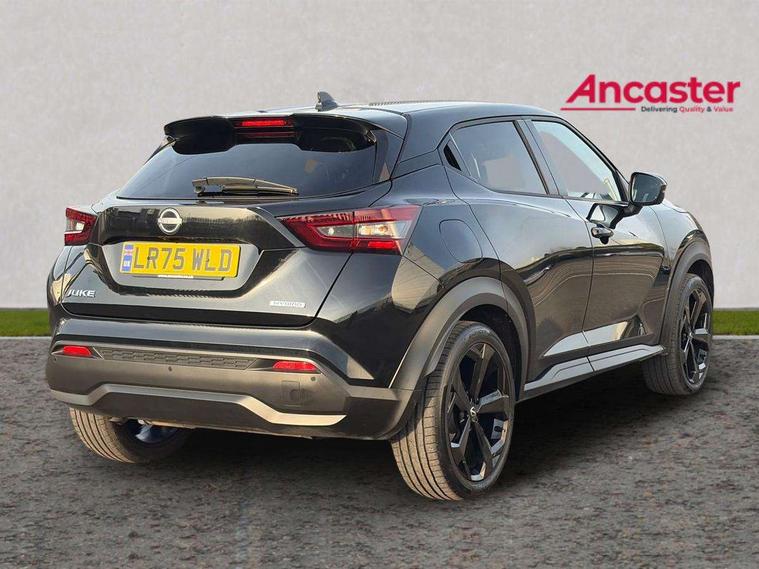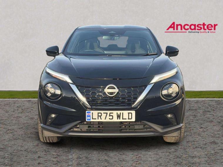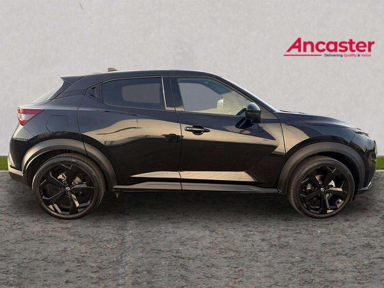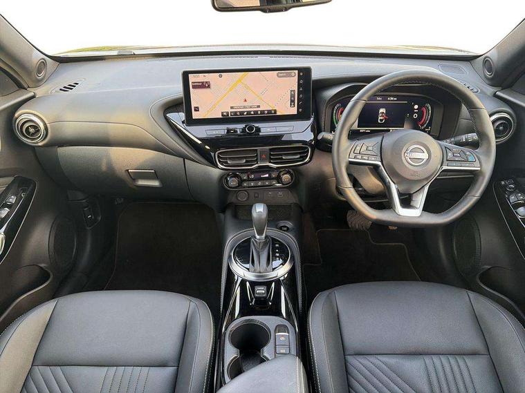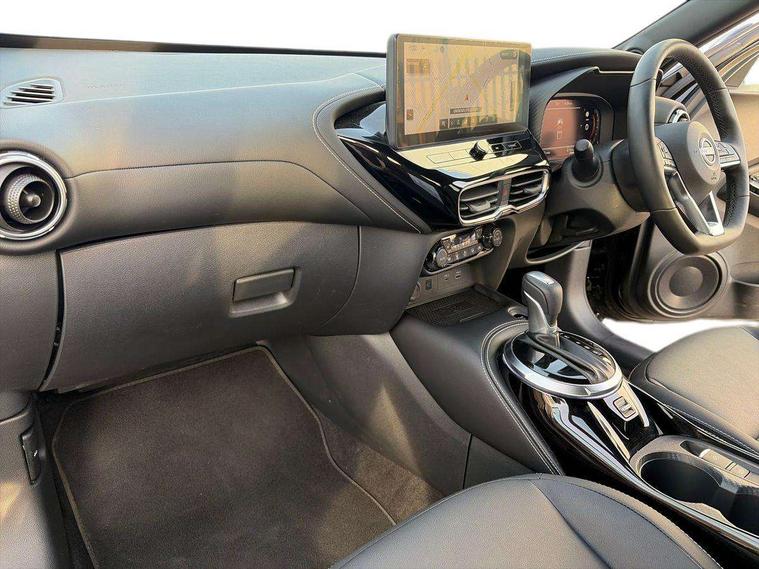 12.3" full colour TFT screen combimeter, Drive modes select (Eco, normal and sport), e-Pedal step, Emergency and breakdown call, EV mode switch, Front parking sensor, Intelligent driver alert system, Intelligent lane intervention, Lane departure warning system, Nissan connect 12.3" touch screen entertainment system, Nissan connect nav with TomTom traffic, Nissan connect services, Outside temperature sensor, Power Steering, Rear parking sensor, Stop/start button, Traffic sign recognition, Trip computer, Voice recognition, WiFi connectivity, Wireless Apple CarPlay and Google Android auto, Wireless Smartphone charger, 10 Bose speakers 8 speakers and 2 headrest speakers for driver/passenger seats, 2 X Rear console USB port, Bluetooth system, USB, Aux-in and 12V socket, Bose personal plus audio system, DAB Digital radio, Auto dimming frameless rear view mirror, Automatic hazard signal with emergency stop signal, Body colour door handles, Electrically adjustable door mirrors with integrated indicators, Follow me home headlights, Front and rear electric window with one touch driver window, High beam assist, LED 3rd brake light, LED daytime running lights, LED front fog lights, LED headlamps, LED rear fog lamp, LED rear lamps, One touch passenger window, Rear privacy glass, Rear side wing doors, Rear wiper, Roof spoiler, Shark fin roof antenna in solid Black, Solid black door mirrors, Three blink turn signal, 3 height adjustable rear headrests, 3 seat bench in 2nd row, 60/40 split folding rear seat, Card holder on driver sunvisor, Door ambient lighting, Driver seat back pocket, Driver side rear coat hanger, Driver/passenger sunvisors and vanity mirrors, Front and rear cabin lights, Front armrest, Front door pockets with bottle holders, Front head restraints, Front/rear passenger grab handles, Gear console ambient circle lighting, Height adjustable driver's seat, Internal chrome door handles, Luggage board, Luggage space lighting, Monoform sporty seats, Multifunction steering wheel, Passenger seat back pocket, Rear door bottle holders, Single front passenger seat, Smooth synthetic leather steering wheel, Synthetic leather kneepad, Synthetic leather shift knob, Synthetic leather upholstery, Telescopic steering wheel adjustment, Two cupholders in front centre console, Two rear isofix child seat anchorage points with top tether, Welcome light and console tray ambient lighting, Comfort pack - Juke, Heat pack with height adjustable passenger seats - Juke, ProPilot pack - Juke Auto, ABS with EBD and brake assist, Active ride control, Active Trace Control, Driver and passenger airbags, Driver and passenger side airbags, Electric handbrake with auto hold function, Electronic Stability Programme (ESP), Front and rear curtain airbags, Height adjustable seatbelts, Hill start assist, Intelligent emergency braking with pedestrian and cyclist recognition, Rear door child safety locks, Seatbelt reminder for driver/front passenger and rear seats, Three 3 point rear seatbelts, Traction control, Tyre pressure monitoring system, VDC Dynamic Vehicle Control, Alarm, Immobiliser, Intelligent key and start push button with walk away lock and approach unlock functions, Remote central locking, 19" Alloy wheels, Tyre puncture repair kit,