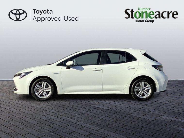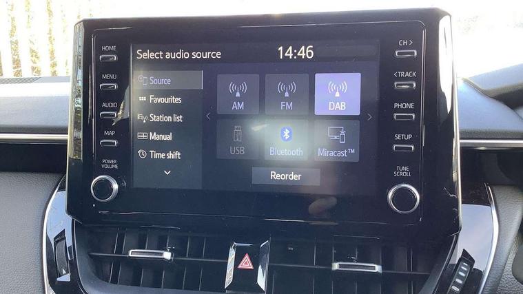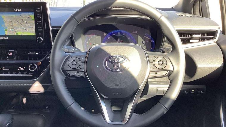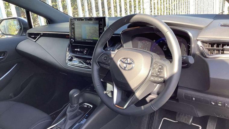 Satin chrome dash trim, Soft touch texture on uppder dashboard, Parking pack - Corolla, Toyota safety sense 2 pack - Corolla, Unique wheel finish with red wheel cap, Acoustic vehicle alert system (AVAS), Alarm with motion sensor and immobilizer, Remote central locking + deadlocks, Smart entry, 6 speakers, 8" Touchscreen with MM19 Multimedia system and voice recognition, AM/FM radio, DAB Digital radio, Toyota touch 2 with go navigation system, USB and Aux in connectors + 12V front outlet, 3x3 point rear seatbelts, Adjustable driver and front passenger seat belt extender to top anchor point, Anti lock braking system + Electronic brake force distribution, Brake assist function, Child locks on rear doors, Downhill Assist Control (DAC), Electronic parking brake, Emergency brake light signal (EBS), Front passenger airbag on/off switch, Front seatbelt reminder, HAC-Hill-start Assist Control, Rear seat belt reminder, Seatbelt pretensioners and force limiters, Supplemental restraint system (SRS) 7 airbags - dual driver, dual side curtain, side impact and driver knee airbags, Traction control, Tyre pressure warning system, Anti-jam protection on power windows, Auto up and down function on all power windows, Automatic headlights with high beam assist, Black metallic surround on lower front grille, Black toyota logo in front, Black window frames, Body colour rear spoiler, Body coloured bumpers, Body coloured door mirrors, Body coloured outside door handles, Follow me home headlights, LED daytime running lights, LED front fog lights, LED Headlights, LED High mounted stop light, Manual day/night rear view mirror, Power adjustable heated door mirrors, Power front windows, Power rear windows, Rain sensor, Rear side wing doors, Rear window defogger, Rear window wiper, Shark fin antenna, Time adjustment on intermittent wiper, Turning signal integrated indicators in door mirrors, Unique lower skirt, Unique side rocker with black insert, UV-filter on driver and passenger windows, 3 rear headrests, 3 seat bench in 2nd row, 3 spoke leather steering wheel + gear knob, 60/40 split folding rear seat, Adjustable speed limiter switch on steering wheel, Audio, multimedia and telephone switches on steering wheel, Boot light, Centre room light, Clean air filter, Driver and front passenger personal light, Driver and passenger assist grip, Driver and passenger sun visor with mirror and light, Dual zone automatic air conditioning with ECO mode switch, Dynamic rador cruise control (with RSA) switch on steering wheel, Fabric armrests, Front and rear cup and bottle holders, Front door pockets, Front head restraints, Front passenger seat, Heated driver and front passenger seats, Illuminated entry system in room lamp, ISOFIX seat fixing (2 fixings on rear outer seats), Leather gear shift with satin chrome on gear shift console, Manual height adjustable for driver and front passenger seat, Parcel shelf, Passenger seat back pocket, Pollen filter, Power adjustable lumbar support on driver seat, Power window switches with satin chrome inserts, Quilted fabric upholstery with grey stitches seats, Rear armrest with 2 cupholders, Rear passenger coat hooks (2), Satin chrome inside door handles, Shopping bag hooks in luggage compartment, Sliding armrest on centre console box, Slow opening glovebox with lights, Tilt/telescopic steering column, Voice recognition switch on steering wheel, WIL - Whiplash Injury Lessening seats, 7" Multi information display screen, Bluetooth telephone connectivity, Connected car functionality upgrade, tracker, remote status and e-care, E-call, Electrically assisted power steering, EV drive indicator, Intelligent park assist, Lane Departure Alert (LDA) switch on steering wheel, Memory on adjustable speed limiter, Push button start, Reversing camera, Smartphone integration with Apple CarPlay and Android auto, Gasoline particulate filter, Vehicle Stability Control (VSC),