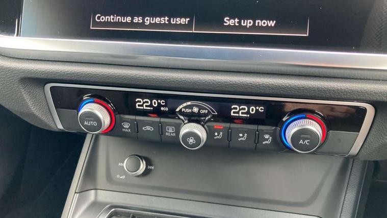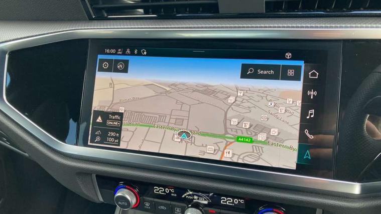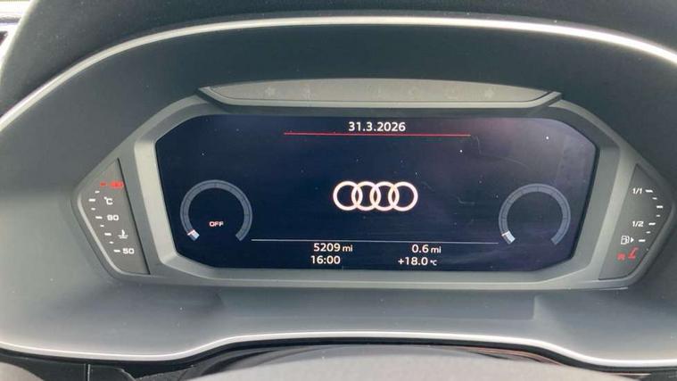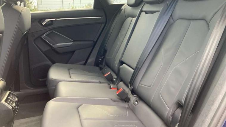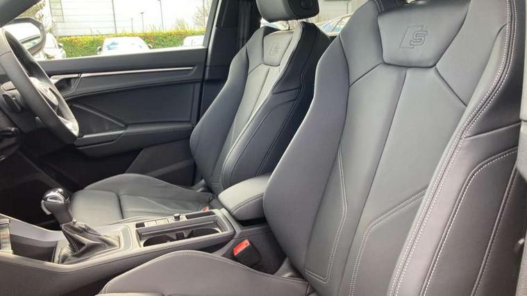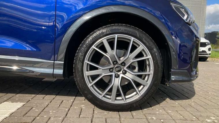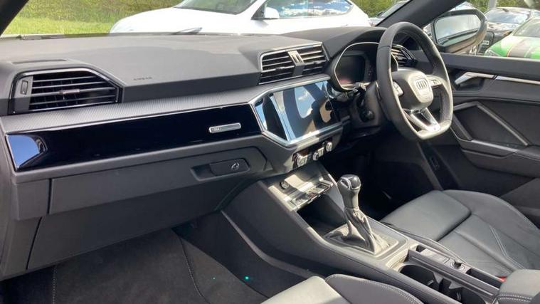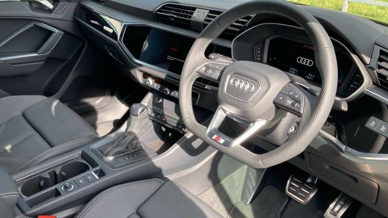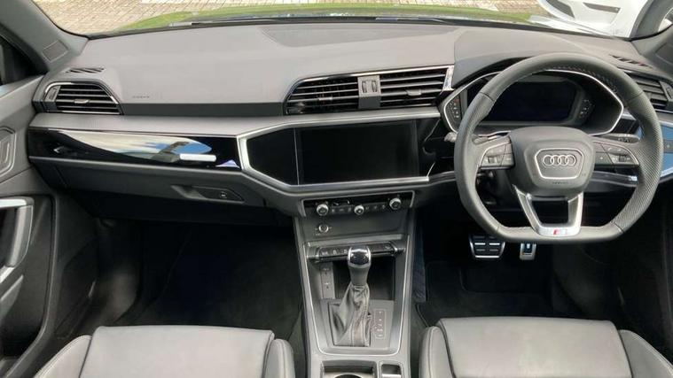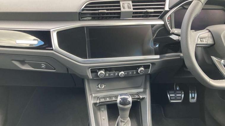 Amazon alexa Integration, Audi connect safety and service, Audi drive select, Audi lane departure warning, Audi Virtual Cockpit - 10.25" display, Bluetooth interface, Camera based traffic sign recognition, Distraction and Fatigue warning, Legal emergency call, MMI Navigation Plus with high resolution 10.1 inch touchscreen colour display, Power operated tailgate, Progressive steering, Service interval indicator, Smartphone interface includes wireless Apple carplay/Android Auto, Start stop system with recuperation, Voice control system with natural language interaction, Sports suspension, 2 USB-C ports with charge and data functions, 6 passive loudspeakers, DAB digital radio module, Acoustic windscreen, Anthracite black radiator grille, Audi Beam uses LEDs to project the Audi logo onto the ground as you exit your Q3, Auto dimming door mirrors, Auto dimming frameless rear view mirror, Black roof rails, Electrically folding, adjustable and heated door mirrors with integrated LED side indicators and kerb view function for passenger side, Front and rear electric windows, Front fog lights, Grille vertical bars in aluminium silver/Matt, High gloss black finish B and C pillars, LED Dynamic rear indicators, LED headlights with LED daytime running lights, LED rear lights, LED third brake light, Privacy glass dark tinted rear and rear-side windows (from B-pillar backwards), Rain and light sensors, Rear diffuser grille in grained matt black, Rear diffuser strip in matt anthracite black, Rear side wing doors, Rear wiper, S line bumpers in contrasting Manhattan grey, Variable front intermittent wipers, 12V socket in rear centre console, 3 seat bench in 2nd row, 40:20:40 folding with manual adjustment for 60:40 forwards/backwards position and backrest angle, Adjustable rear seat bench/backrest with centre armrest and cupholder, Black carpet mats, Black cloth headlining, Dual zone electronic climate control, Electric lumbar support, Front and rear black floor mats with contrast stitching in rock grey, Front and rear headrests, Front centre armrest, Height and reach adjustable steering wheel, Illuminated door sill trims with S logo, ISOFIX child seat mounting for front passenger with airbag deactivation and outer rear seat including top tether attachment point for outer rear seats, Luggage compartment sill protection in stainless steel, Manual front seats with height adjustment, Perforated leather gearknob, Single front passenger seat, Stainless steel pedals, Twin leather upholstery with front sport seats + S embossing, Black styling pack - Q3, Non smoking pack - Q3, 3x3 point rear seatbelts, 6 airbags - Driver, front passenger, curtain and side windows, Audi pre-sense front with pedestrain and cyclist recognition, Electrically operated child locks on rear doors, Electromechanical parking brake, Electronic stabilisation control including ABS, ASR and EDL, Front seatbelt reminder, Hill descent control, Hill hold assist, Pre sense basic, Seatbelt monitoring, Tyre pressure warning, Warning triangle and first aid kit, Anti theft wheel bolts, Immobiliser, Remote central locking, Thatcham approved category 1 anti theft alarm, Aluminium look interior elements, Detail dashboard around MMI touch colour display in glass look, black with surround in aluminium look, Leatherette door armrest, Piano black inlay,