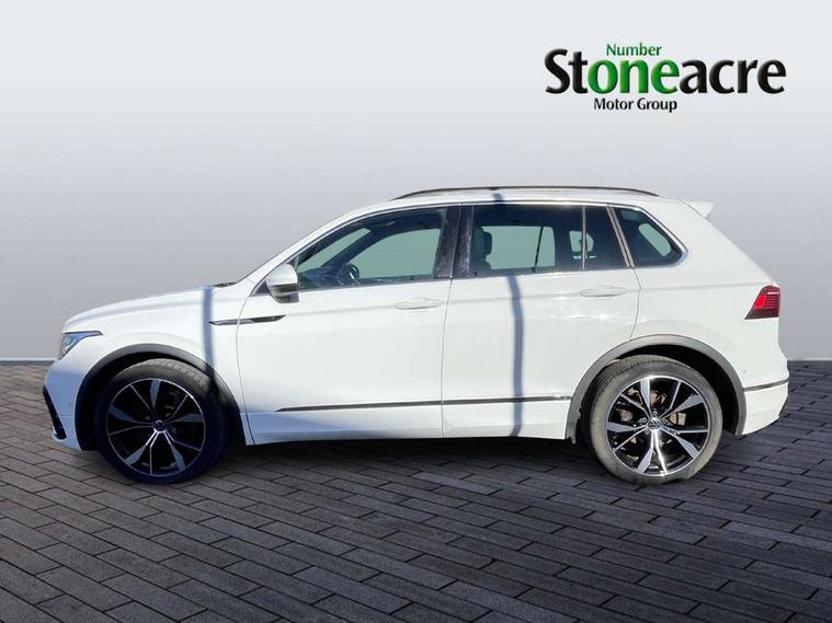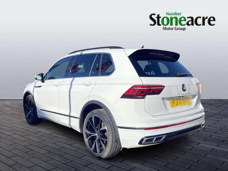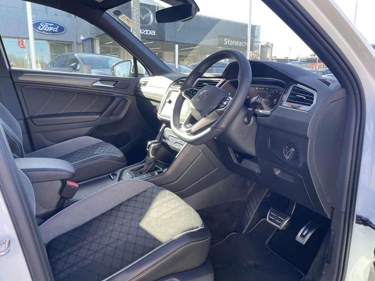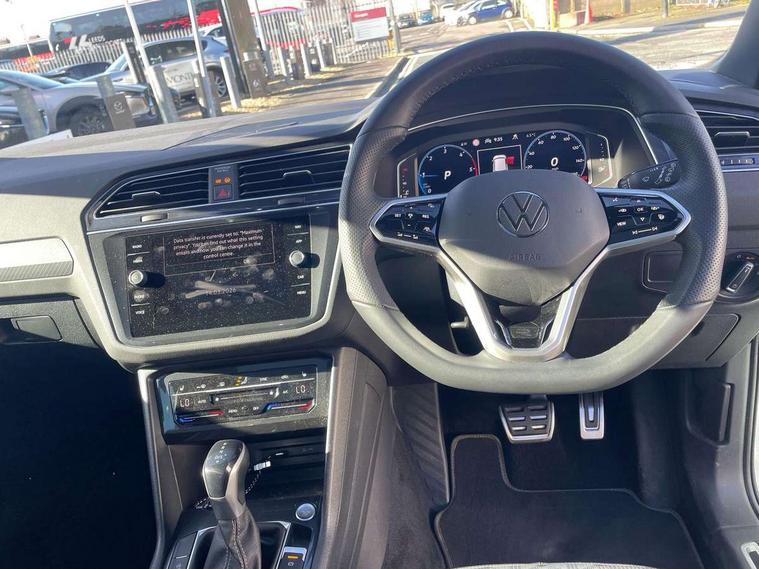 Adaptive cruise control ACC stop and go including speed limiter, App-Connect incl. App-Connect Wireless for Apple CarPlay and Android Auto, Bluetooth phone integration system, Digital Cockpit Pro - Active info display, Distance control assist, Driver alert system, Driver profile selection, Dynamic road sign display, eCall emergency call system, Electromechanical speed sensitive power steering, Engine start/stop button, Lane keeping system Lane Assist, Lights on warning, Multifunction front facing camera, Outside temperature display, Premium multifunction display with multi colour display, Remote control boot opening, Rev counter, Revision / skills operating concept travel assistant, Service interval indicator, Speed limit display, Start/stop system with regenerative braking, Trip computer, Warning sound and light for doors and tailgate open, All wheel drive - 4Motion, Battery regeneration during braking, Diesel particulate filter, Misfuel prevention device for diesel engine, Selective Catalytic Reduction, XDS electronic differential lock for improved traction and handling, 2 USB-C ports in the front, 1 USB-C charging socket on the center console in the rear, Diversity antenna for FM reception, Radio, SD card slot, Simultaneous pairing of 2 compatible mobile devices, SMS functionality - read, compose and send SMS messages using touch-screen display, Title and cover art display, Auto dimming interior rear view mirror, Automatic headlight control system, Black roof rails, Body colour door handles, Body coloured bumpers in R Line style, Body coloured door mirrors with integrated indicators, Chrome moldings on the side windows, Coming/leaving home lighting function, Dynamic headlight range control, Front and rear electric windows, Heated rear window, High level 3rd brake light, Laminated safety glass windshield, heat and sound insulating, LED rear number plate lights, License plate carrier in front and rear, Poor weather light and cornering light, Privacy glass for rear side windows and rear window, R Line body kit, R Line side sills, Rain sensor windscreen wipers, Rear exhaust tailpipe, Rear fog lamp, Rear side wing doors, Rear spoiler in R style, Rear windscreen washer and wiper with interval delay, Side and rear windows in heat insulating glass, Trailer Stability Programme, Unique R Line badging, Windscreen wipers/ intermittent wipe + 4 position delay, 12V outlet in center console rear and in luggage compartment, 12V outlet in front and tray, 2 cup holders in front, 2 LED front reading lights, 2 LED rear reading lights, 3 bench rear seats in 2nd row, 3 rear headrests, 4 load lashing points, 40:20:40 split folding rear seats, Air Care Climatronic 3 zone automatic climate control with enhanced air filter and controls in the rear, Backrest release for left front seat, Black headlining, Brushed stainless steel pedals and footrest, Carpet mats in front and rear with decorative stitching in Gray, Climate control unit rear with touch function, Door and side trim panel in foam film, insert in leatherette, Front centre armrest, Front footwell illumination, Front seats head restraints (x-adjustment), Height adjustable front seats, Height/reach adjust steering wheel, Instrument lighting white adjustable panel illumination, Interior light with delay, Isofix Preparation 2 Rear child seats, Leather gear knob, Lockable cooled glovebox, Luggage compartment lighting, Luggage net, Rear bench seat asymetrically split folding, longitudinally movable and folding with load-through hatch and center armrest, Remote unlocking for rear seat backrest, Removable luggage cover, Removable rear headrests, Safety optimised front head restraints, Single front passenger seat, Sliding/reclining rear seats, Standard rear seat release, Storage compartment in driver's door, Storage compartment in passenger's door, Storage compartment in rear doors, Storage compartments in luggage area left and right, Storage tray on dashboard, Sun visors with illuminated vanity mirrors, Tool kit, Top front comfort seats, Variable boot floor, height adjustable and removable, Ambience pack - Tiguan R Line, Driver assistance pack plus - Tiguan DSG, Park assist pack - Tiguan, 3 point seat belt for centre rear seats, 3 point seat belts with seat belt pretensioners for the outer rear seats, Active bonnet, Curtain airbags for front and rear passengers, Driver/Front Passenger airbags, Drivers knee airbag, Electronic parking brake with auto hold, Electronic Stability Control with driver steering recommendation, ABS, ASR, EDL, EDTC and trailer stabilization, Front assist with autonomous emergency braking (for Adaptive Cruise Control ACC up to 130 mph), Front disc brakes, Front passenger airbag deactivation, Front side airbags, Height adjustable front 3 point seatbelts + pretensioners, Hill hold control, Manual child proof rear door locks, Pedestrian monitoring system, Power assisted brakes, Proactive passenger protection system in combination with front assist, Rear disc brakes, Rigid safety cell with front and rear crumple zones, Two tone horn, Warning sound and light for front seat belts if unfastened, Anti theft alarm system with interior monitoring, backup horn and towing protection, Anti theft wheel bolts, Electronic engine immobiliser, 20" Misano black with diamond turned surface alloy wheels with Airstop tyres,