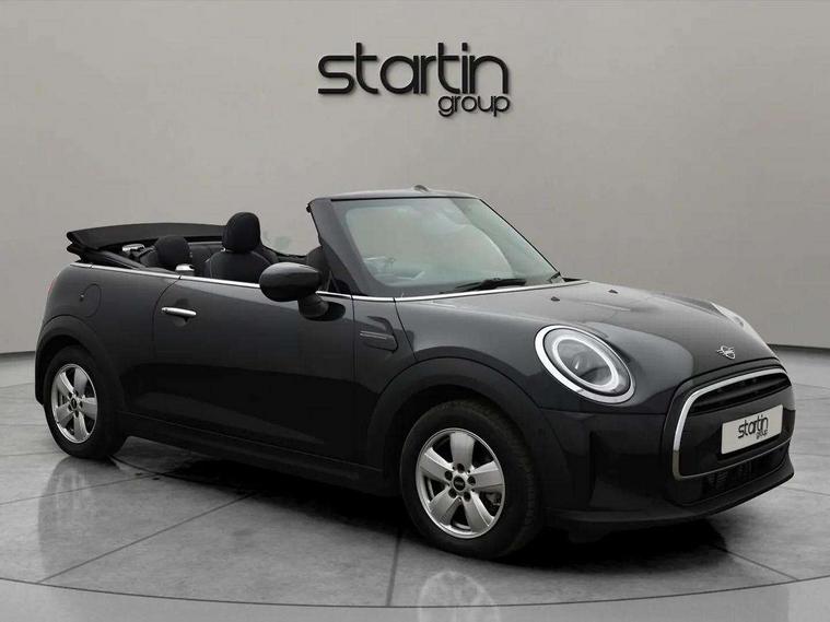 Apple CarPlay, Automatic start/stop function with brake energy recuperation, Compatible mobile phone bluetooth with audio streaming, Cruise control with brake assist, Electro-mechanical speed dependant steering assistance, Instrument cluster, Mini E-call, MINI TeleServices, On board computer, Rear park distance control, Service interval indicator, Double Vanos system, Fully variable valve control, High precision injection, Performance Control, Steptronic transmission with double clutch, 8.8" touchscreen with LED ring, FM tuner and DAB digital radio, Automatic headlight activation switch, Body colour fuel filler cap, Chrome border high gloss black slats radiator grille, Dynamic brake lights, Electric windows, Fully electric black softtop with integrated sunroof functionality, Heated rear window, Heated windscreen washer jets, LED headlight with closed ring and daytime driving lights, Left exhaust tailpipe with chrome finisher, Metal door sill strips with MINI imprint, Model logo Cooper on right of tailgate, Rain sensor window wipers, Rear fog lights, Rear LED lights with union jack design, Side scuttle panel with integrated indicator, Sun/heat protection glass, White indicator lenses, 12V Accessory socket in centre console, 4 lashing eyes in luggage compartment, 50/50 split folding rear seats, Chrome interior highlights, Colour line - Carbon black, Cupholders, Easy Load boot handles, Front and rear head restraints, Front and rear isofix with front passenger airbag deactivation, Glove compartment, Height and length steering column adjustment, Interior lighting with 12 different colours running across the dashboard, underneath door bezel illuminated laser engraved design on central display, Leather gearshift lever and handbrake gaiters, LED reading lights, vanity mirror lights, front foot well light and spotlight on front seats, Manual air conditioning, Mechanical seat adjustment, driver seat height adjust, forward/back and front seats backrest, Multifunction steering wheel, Sports steering wheel, Storage compartments in doors, Sunvisors with vanity mirrors, Three spoke steering wheel with speed limiter and audio/communication controls, Tool kit, Velour floor mats, Convertible pack with comfort access - Mini Convertible, 3 point seatbelts on all four seats, 6 Airbags - front, side and seat belt tensioners, Active rollover protection, Anti-lock braking system (ABS), DSC - Dynamic Stability Control, Front and rear disc brakes, Hill start assist, Single tone fanfare horn, Tyre pressure monitoring system, Alarm system with tilt sensor, monitoring doors, bonnet interior and tailgate, Electronic vehicle immobiliser, Keyless Go, Piano black interior trim, Tyre repair kit,