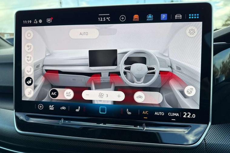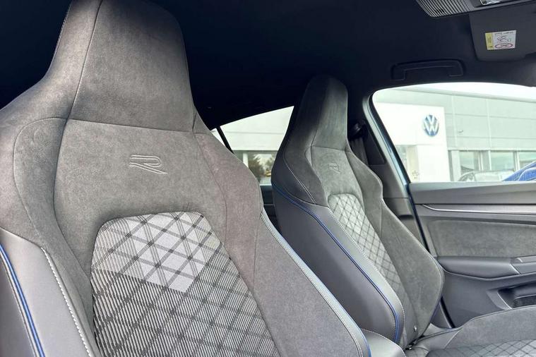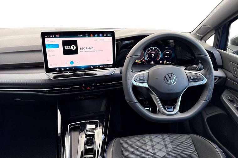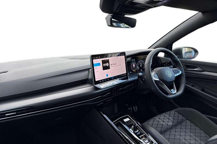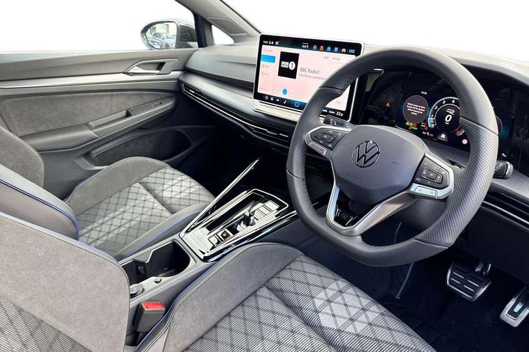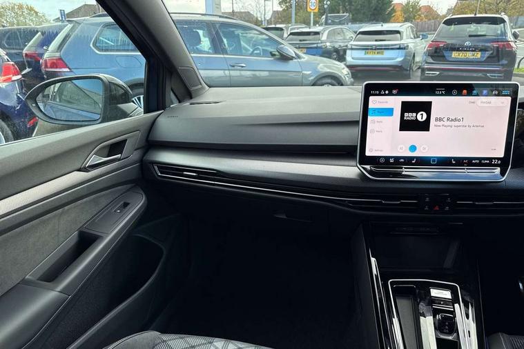 Activated carbon canister, Adaptive cruise control (ACC), Advanced driver attention and drowsiness monitor, Dynamic road sign display, Dynamic steering, E-Sim card for online connectivity, eCall emergency call system, Multi-color Digital cockpit pro, selection of different info profile possible, Multifunction front facing camera for distance control, Navigation system, Oncoming vehicle braking when turning including swerve support, Speed limiter, Speedo, rev counter, electronic odometer, trip, service interval display, exterior temperature and fuel gauge, Traffic jam assist, Voice enhancer and voice control, Warning signal and warning light for front and rear seatbelts not fastened, We connect plus preparation, We connect preparation, Wireless app connect, Hybrid propulsion system, Petrol Particulate Filter, Start-stop system with battery regeneration (recuperation - energy recovery during braking), XDS electronic differential lock for improved traction and handling, 2 USB C ports in front, 2 USB charging sockets on the centre console in the rear charging capacity upto 45W, Digital radio reception (DAB), Diversity antenna for FM reception, Gaming platform via car app, Infotainment system with 12.9" display, Mobile phone interface with inductive charging feature, 3rd brake light, Auto dimming rear view mirror, Automatic headlamp activation with Coming home and Leaving home feature, Body colored bumpers in R-Line style, Body colour door handles, Exterior ambient lighting, Exterior mirrors convex on the left and aspherical on the right, Front and rear electric windows, Heat insulating windshield made of laminated glass, LED separate daytime running light, Rain sensor, Rear exhaust tailpipe, Rear fog light on one side and reversing lights on both sides, Rear side wing doors, Rear windscreen washer and wiper with interval delay, Remote electrically foldable door mirrors, puddle lights and reverse activated passenger's door mirror, Volkswagen logo in front, illuminated lighting animation with wake up/goodbye scenario and illuminated door handles, Welcome light with surround lighting, 12V socket in front centre console, 12V socket in luggage compartment, 3 rear head restraints, 3 seat bench in 2nd row, Ambient lighting with 30 colour including LED light unit in front footwell with selectable light colour, Black roof lining, Brushed stainless steel pedals, Chrome plated radiator grille inserts, air vent surrounds and light switch surrounds, Door insert, side trim panel and arm support in leatherette, Front + rear black carpet mats, Front centre armrest, Front seat lumbar support adjuster, Integrated front head restraints, ISOFIX anchors for child seats on outer rear bench seats and on front passanger seat compatible for i-Size, Luggage compartment lighting, Manual height adjustable front passenger seat, Manually height adjustable driver seat, Plastic gear knob, Premium sports seats in front, Rear cupholder and loadthough, Sardegna cloth upholstery with front and outer rear seats Art Velour inner sides of bolsters, Single front passenger seat, Split folding backrest with centre armrest and unsplit rear seat bench, Sun visors with illuminated vanity mirrors, Titanium black instrument panel, Black exterior Styling package with Matrix LED headlights - Golf, Winter package - Golf DSG Estate/Hatchback, 3 point height adj front seatbelts + pretensioners, 3 rear three point seatbelts, ABS, Autonomous emergency braking front assist with pedestrian and cyclist monitoring, Child locks on rear doors, Driver and front passenger airbag with front passenger airbag deactivation, Electronic parking brake with auto hold, ESC (Electronic Stability Control), Extended pedestrian protection measures, Hill start assist, Rear disc brakes, Two tone horn, Tyre pressure loss indicator, Volkswagen roadside assistance, Anti theft wheel bolts, Preparation for alcohol interlock, Decorative inserts carbon grey for dashboard and front door trim panels, 18" Leeds alloy wheels, Tool kit for tyre mobility set, Tyre mobility kit Includes 12V compressor and tyre sealant,
