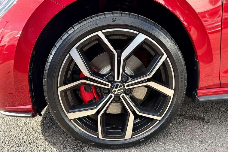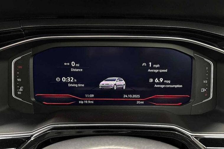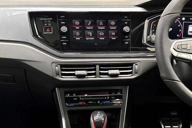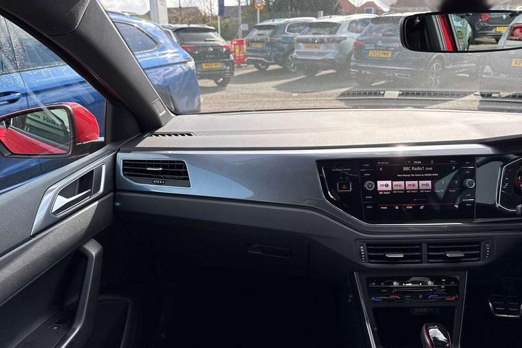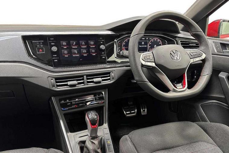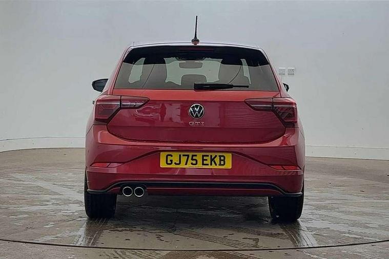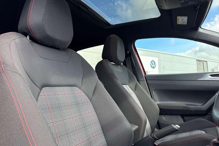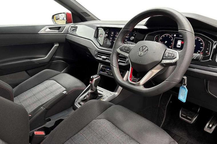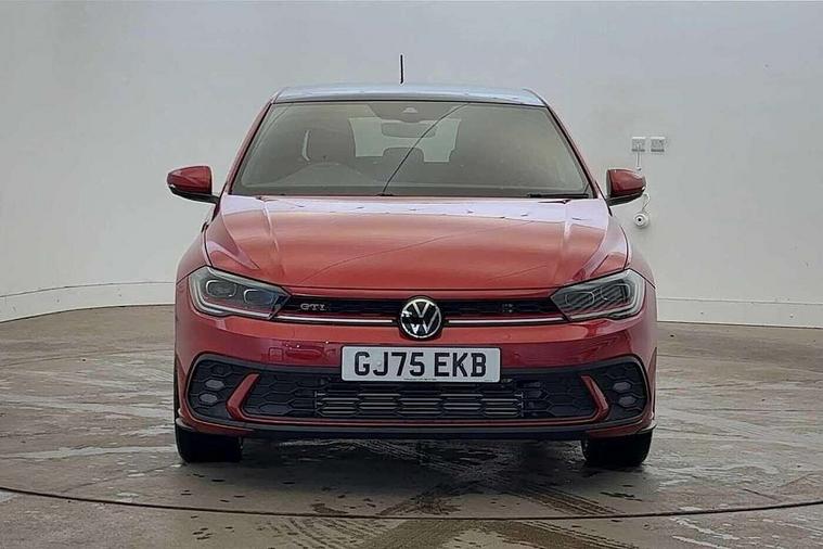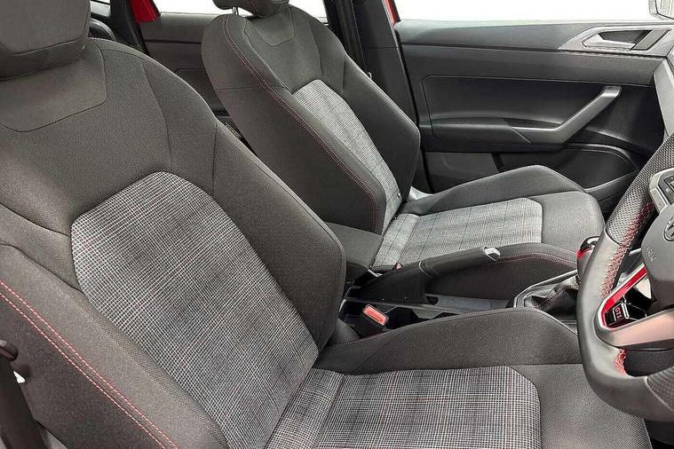 Adaptive cruise control with follow-to-stop and speed limiter, Advanced driver attention and drowsiness monitor, Bluetooth mobile phone interface, Digital Cockpit Pro with 10.25" Display, Dynamic road sign display, Eco mode, Emergency call service, Multifunction camera, Power assisted speed sensitive steering, Preparation for We connect and We connect plus, Speedo and rev counter, electronic odometer, trip, service interval display and fuel gauge, Travel Assist - Lane keeping system and traffic jam assist, Travel assist including emergency assist, Trip computer, Warning signal and warning light for front and rear seatbelts not fastened, Washer fluid level indicator, Wireless app connect, Adaptive chassis control, Front wheel drive, Heavy duty rear axle, Rear shock absorpion sports version, Sports select suspension lowered by 15mm, Start-stop system with battery regeneration (recuperation - energy recovery during braking), DAB Digital radio, Diversity antenna for FM reception, Body colour bumpers, Body colour door handles, Electric front windows, Front scuff plates in aluminium with GTI logo, Heat insulating glass windscreen, Power folding adjustable/heated exterior mirrors and front passenger exterior mirror lowering function, Rain sensor, Rear electric windows, Rear fog light, Rear side wing doors, Rear windscreen washer and wiper with interval delay, Sport bumpers with air intakes with honeycomb structure, Third brake light, Twin chrome exhaust tailpipes, 12V power socket in centre console, 2 USB-C ports in the front, 2 USB-C charging sockets on the center console in the rear, 3 rear head restraints, 60/40 split folding rear seat and rear seat bench not split, Air care climatronic air conditoning system with active combination filter and 2-zone temperature control, Black roof lining, Carpet mats, front and rear, Chrome plated radiator grille inserts, air vent surrounds and light switch surrounds, Door and side trim panel, Driver and front passenger seat height adjustment, Driver/passenger sunvisors with illuminated vanity mirrors, Front centre armrest, Front footwell illumination, Front seat backrest storage pockets, GTI sports gearshift knob in aluminium leather, Handbrake lever handle in leather, Headliner in recycled material, Isofix child seat preparation easy-fit (for two outer rear seats, and front passenger seat) compatible with I-size, LED interior light with switch off delay and dimmer, 2 reading lights front and rear, Luggage compartment cover, Luggage compartment floor, Luggage compartment lighting, Lumbar adjustment for front seats, Single front passenger seat, Stainless steel pedals, Standard pedal cluster, Three spoke leather wrapped multifunction sports steering wheel with shifting paddles, IQ LED matrix headlights pack - Polo, Light and sight pack - Polo GTI, 3 point height adj front seatbelts + pretensioners, 3x3 point rear seatbelts, ABS, Driver and front passenger airbag with front passenger airbag deactivation, Drivers and front passengers safety optimised head restraints, ESC (Electronic stability control) + EDL (Electronic Differntial lock) and ASR (Traction control), Extended and predictive pedestrian/ cyclist protection, Front and rear disc brakes with red brake calipers, Front curtain and side airbags with center airbag, Hill hold control, Manual child lock in rear doors, Two tone horn, Tyre pressure loss indicator, Alarm with interior protection, Anti-theft alarm system with interior monitoring, backup horn, and towing protection, Anti-theft wheel bolts, Electronic engine immobiliser, Chrome applications on rotary light, mirror adjustment, window regulator switches, outlet with frame in black, Low rolling resistance tyres,