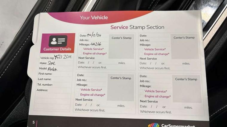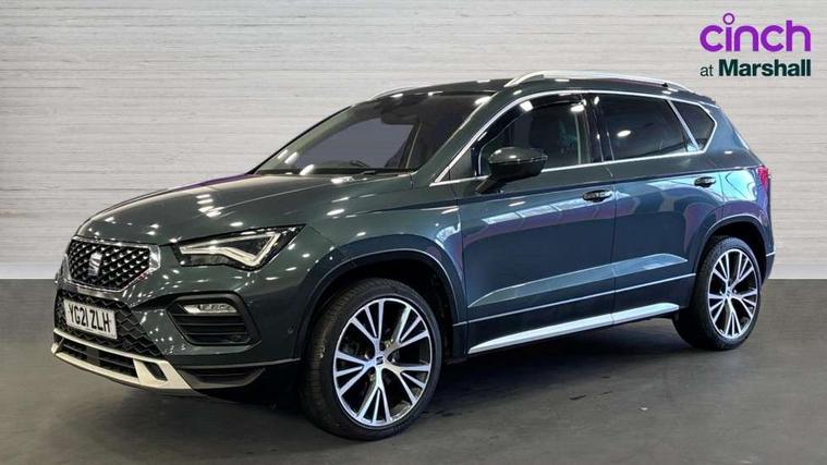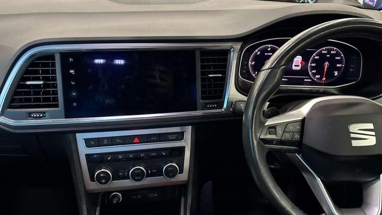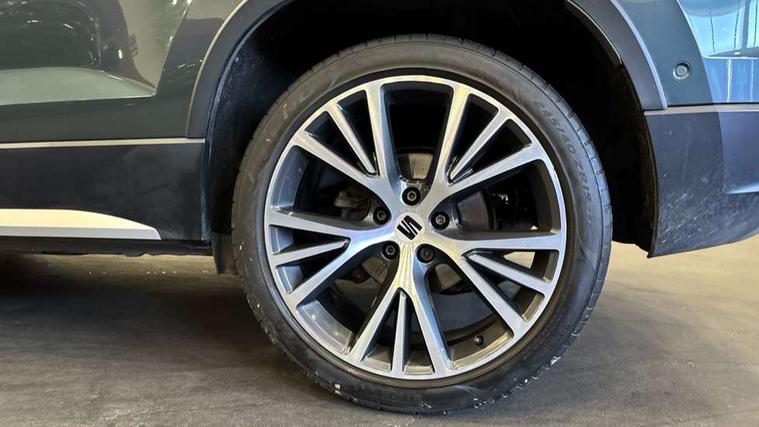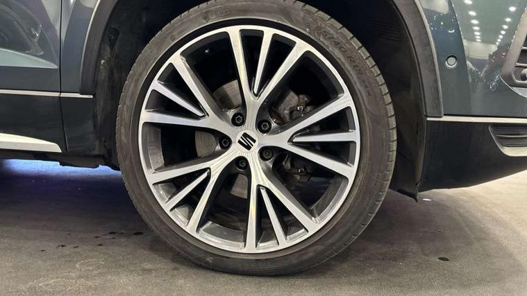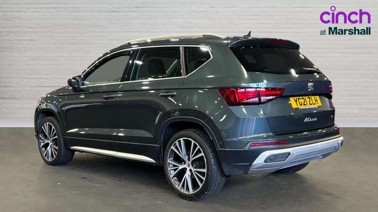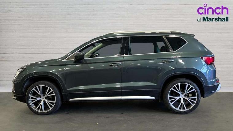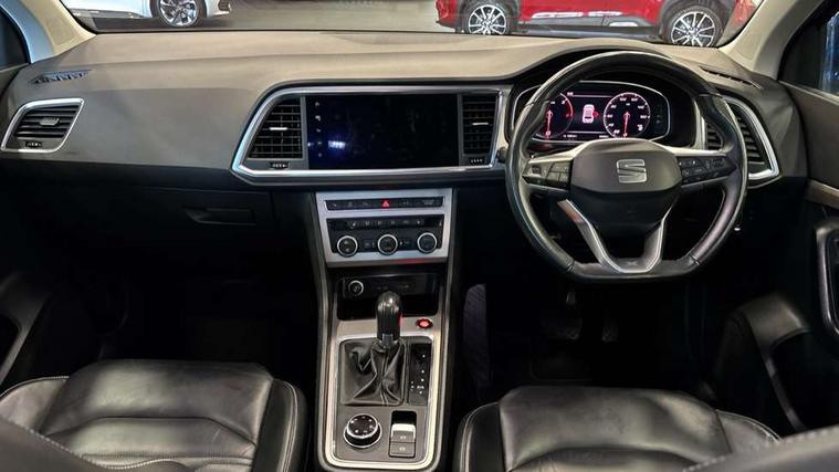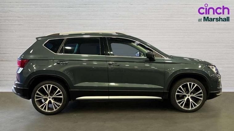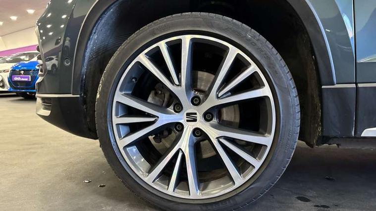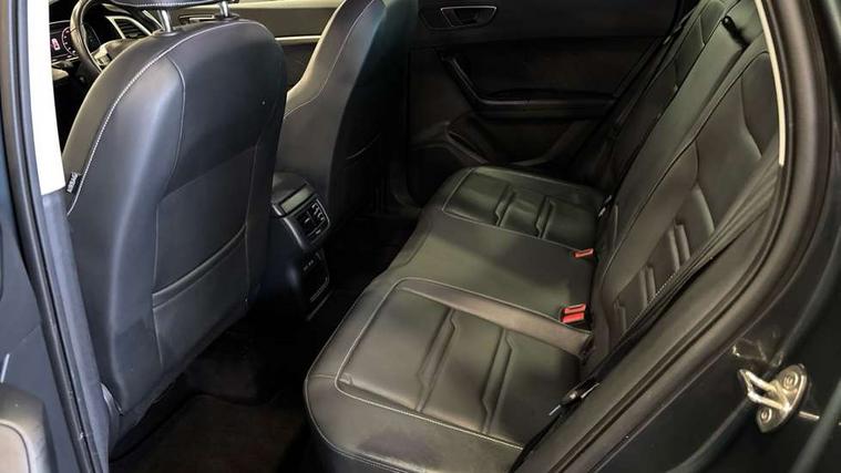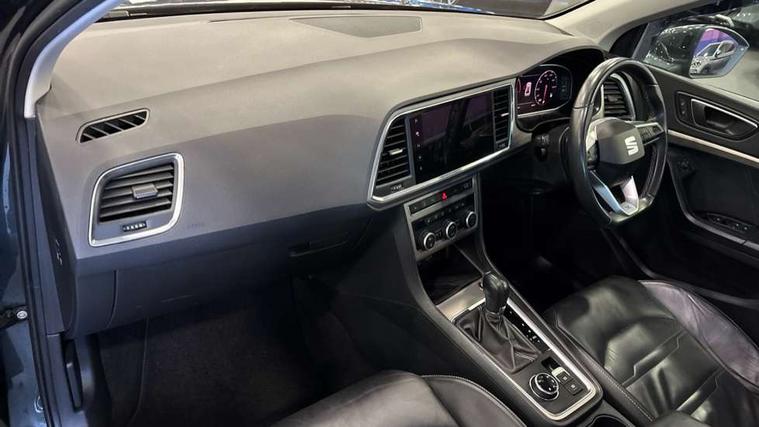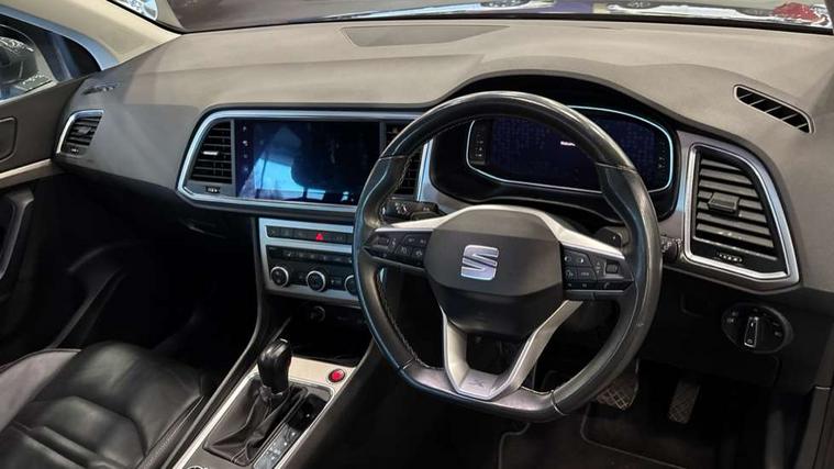 Digital cockpit, Electric tailgate with virtual pedal, Outside temperature gauge, Progressive power assisted steering, Rear view camera, SEAT drive profile with driving experience button - Normal, Sport, Eco, Individual, off-road and snow modes, gearshift, steering and throttle response, Self parking functionality (includes front and rear parking sensors), Side and exit assist, Top view camera, Trip computer, Wireless full link smartphone integration, Wireless phone charger, Steering wheel mounted audio/phone controls, Black simulated exhaust pipes, Body colour bumpers, Body coloured wheel arch surrounds, Chrome front grille frame, Chrome roof rails, Chrome side window trim, Dark tinted rear windows, Daytime running lights, Door mirrors with welcome light silhouette, Dynamic headlight range control with self adjusting whilst driving, Electric adjustable/heated/folding door mirrors, Front and rear electric windows, Front grille hot stamping, Full LED headlamps with lens and LED front fog lamps with cornering function, Heated windscreen, Illuminated aluminium front door sill, LED rear tail lights with dynamic indicators, Rear fog lights, Rear wash/wipe, Reflex silver side mouldings, 12v socket in front, 60/40 split folding rear seat, Dual zone climate control, Front and rear head restraints, Front centre armrest, Front seat back storage pockets, Heated front seats, Height adjustable driver and passenger seat with lumbar adjustment, ISOFIX points in outer rear seats with top tether anchorage points, Leather steering wheel and gear knob, Leather upholstery with front sports seats, Multicoloured ambient lighting with LED interior illumination, Rear armrest and easy back seat release mechanism from boot, Steering wheel mounted gearshift paddles, Storage compartment in roof console for sunglass, Storage compartment under driver's seat, Convenience pack - Ateca, Interior lighting pack - Ateca, Navigation system pack with DAB - Ateca, Safe and driving pack - Ateca, 3x3 point rear seatbelts, ABS, Traction control system (TCS), Electronic stability control (ESC) and Electronic differential lock system (XDS), Airbags - Driver and front passenger airbag with deactivation, front side, two curtain and driver's knee airbags, Electric parking brake with auto hold function, Front and rear seatbelt reminder, Hill hold control, Tiredness recognition system, Traction control, Tyre pressure monitoring system, Alarm, Keyless entry, Locking wheel bolts, Chrome interior detailing, 19" Exclusive machined alloy wheels 36/4 in nuclear grey,