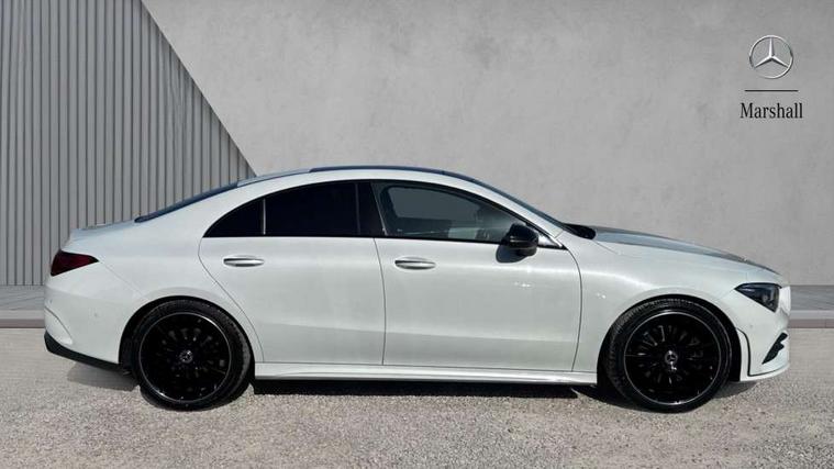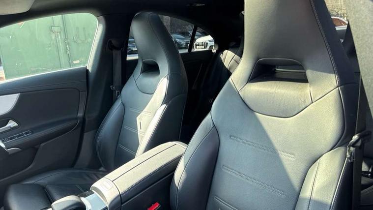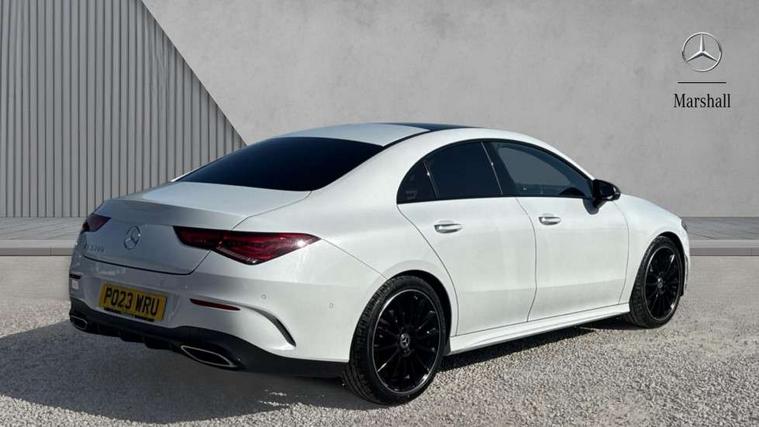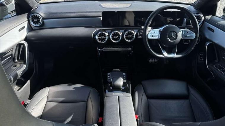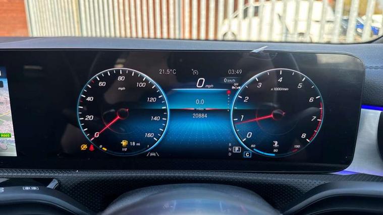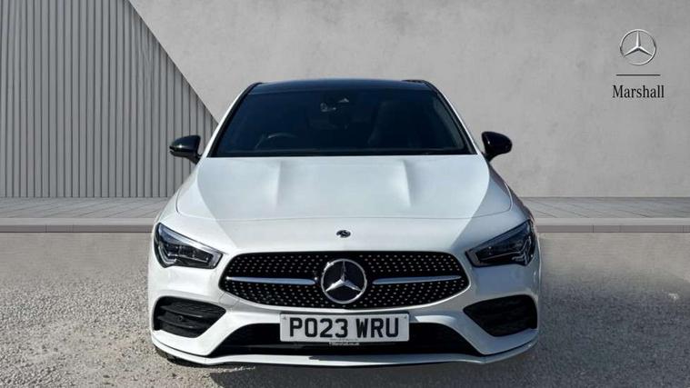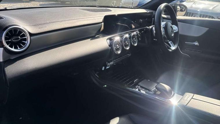 10.25 inch Instrument display with digital cockpit, 10.25 inch touchscreen central media display, Active lane keeping assist, Attention assist - Monitors steering behaviour and long journey fatigue, Blind spot assist, Bluetooth connection, Car wash mode, Cruise control with limiter, Direct steer system with speed sensitive power steering, DYNAMIC SELECT with a choice of driving modes (ECO, Comfort, Sport and Individual), ECO start/stop function, Fluid level warning indicator for fuel, oil, coolant and washer fluid, Hard-disk navigation, Hey Mercedes Voice activation, Lamp failure indicator, Mercedes me connect including emergency call system, accident recovery, breakdown and maintenance management, Mercedes me remote services, Outside temperature gauge, Owners manual and service booklet in English, Pre-installation of private car share, Preinstallation for Mercedes Benz link, Radio aerial integrated into front and rear windshields, Service indicator (ASSYST), Smartphone integration with Apple CarPlay and Android auto, Speed limit assist, Traffic sign assist, Trip computer in multifunction display with current consumption indicator, Lowered comfort suspension, Rear axle multi-link, DAB digital radio tuner, MBUX multimedia system, Mid-range sound system, USB (type C) ports (2) in stowage compartment and 1 in front of centre console, Adaptive brake lights, AMG body styling with AMG front apron and rear apron and visible exhaust tailpipe in chrome trim elements, AMG bodystyling side skirts, Body colour bumpers, Body colour door handles, Chrome beltline strips, Diamond radiator grille pins in chrome, Electric panoramic sunroof with automatic tilt and convenience closing fuinctions, rain sensor auto closing and electronic roller sunblind, Electric windows, Electrically adjustable and heated door mirrors with integrated LED indicators, Exhaust system with 2 Visible tailpipe trim elements and rear apron with trim in chrome, Headlamp assist automatic headlamp activation, Heated glass rear windscreen + timer control, High level LED third brake light, Integrated LED daytime running lights, Interior mirror with black reading lamps and frameless, LED tail lamp, Multibeam LED headlamps with adaptive highbeam assist plus, Privacy glass with dark tinting on rear side windows and rear window, Rain sensing windscreen wipers with two sensitivity settings, Rear boot, Rear fog lamp, Rear side wing doors, Variable front intermittent wipers, Window line trim strip in chrome, 3 seat bench in 2nd row, 3 spoke flattened bottom nappa leather multifunction steering wheel with perforated leather in grip area, 40:20:40 split folding rear seat backrests, Air conditioning - Two zone thermotronic luxury automatic climate control with display, Air vents with surround in silver chrome, Artico man-made leather upholstery, Automatic child seat recognition sensor, Black roof lining, Brushed stainless steel sports pedals with rubber studs, Electrically adjustable front memory seats including lumbar support, Floor mats with stitched AMG lettering, Front centre armrest with stowage, Galvanished gear shift paddles on steering wheel, Heated front seats, Illuminated front door sills with changeable cover, Illuminated glove compartment stowage, Interior lighting - 64 colour Ambient lighting, Luggage net on driver/front passenger seat backrest, Manually adjustable front seats, Manually height and reach adjustable steering column, Rear armrest with two integral cup holders for drinks, Rear head restraints, Single front passenger seat, Sport seats with fixed head restraints, Stowage compartment in centre console with retractable cover, Sunvisors with illuminated vanity mirrors, Touchpad on center console, Twin front cupholders, Two outer rear seat isofix and top tether child seat fixing points, Keyless go comfort pack - CLA, Light and sight pack - CLA, Mirror pack - CLA, Night package - CLA, Parking package - CLA, Active bonnet pedestrain safety measure which detects an impact and raises bonnet by 65mm, Active brake assist includes forward collision warning system with autonomous braking, Adaptive brake assist with hold function and hill start assist, Anti lock braking system (ABS) with brake assist, Black seat belts, Bonnet with power domes, Brake pad wear warning indicator, Childproof locks manually operated for rear doors and electrically operated for rear power windows, Crash responsive emergency lighting, Driver and front passenger head and sidebags, Driver and front passenger windowbags, Drivers knee airbag, Dual stage driver and front passenger airbags, Electric parking brake, Electronic stability programme with acceleration skid control, ESP curve dynamic assist, Exit warning, Front and rear seatbelt reminder, Front passenger seat occupancy sensor, Three point rear seat belts, Tyre pressure monitoring system, Warning triangle and first aid kit, Guard 360 degree guard vehicle protection system with immobiliser and interior protection, Remote central locking and crash sensor with emergency opening function, Light aluminium with longitudinal grain interior trim, 19" AMG multi-spoke black painted light alloy wheels with high sheen rim finish, Summer tyres, Tirefit tyre sealant kit,