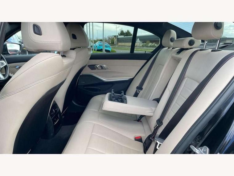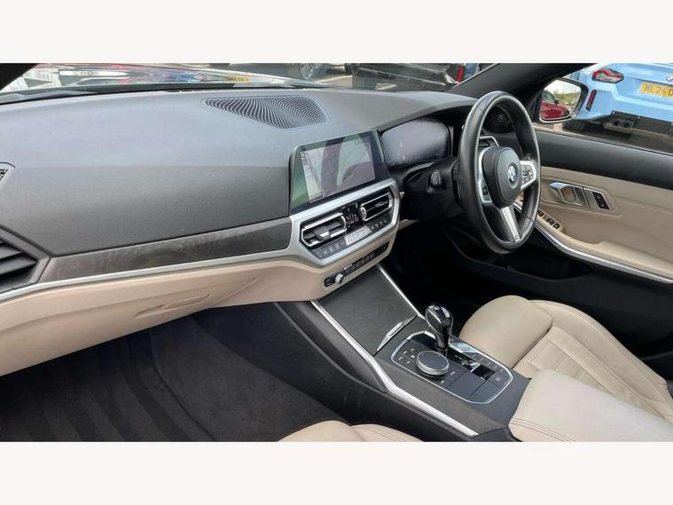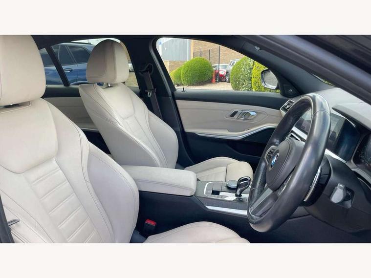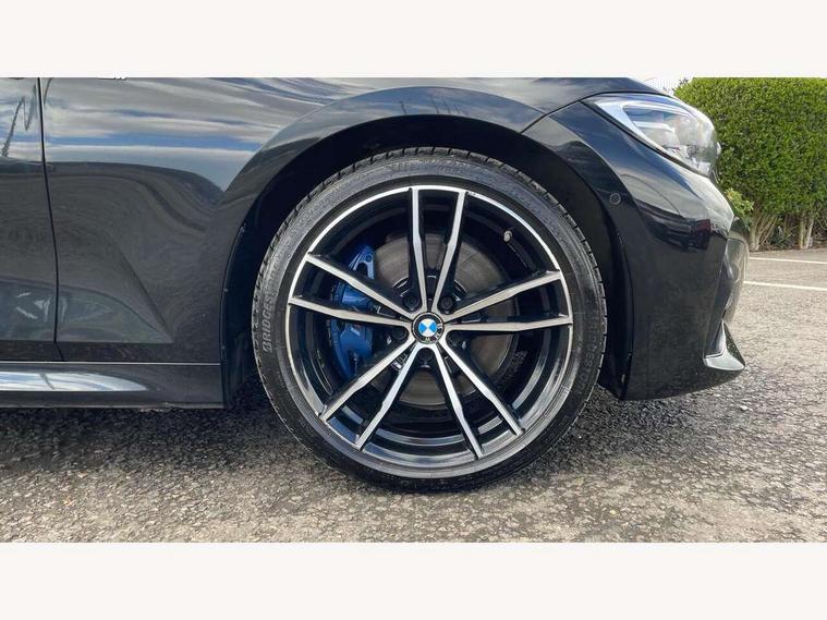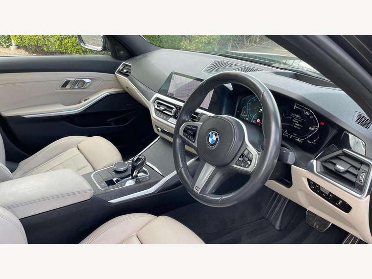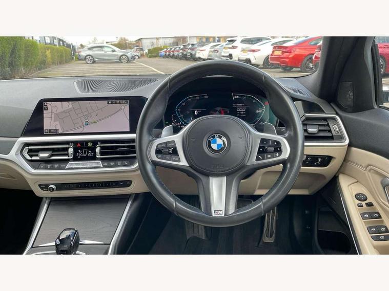 Active guard plus, Attentiveness assist, Auto start-stop, BMW iDrive controller on centre console, BMW Live Cockpit Professional sat nav system including 10.25" high resolution display and Intelligent Voice Assistant, BMW Online services, BMW Teleservices, Brake pad wear indicator in front and rear, Check Control warning system for monitoring of lights and door/luggage compartment open warning, Condition based service, Front/rear park distance control, Instrument cluster with speedometer with mph readout, tachometer, fuel gauge and oil temperature gauge, Oil sensor for level and grade, On board computer - average speed+fuel consumption, service interval, clock/date, odometer/trip meter, outside temperature display and ice warning, Optimum shift indicator, Pesonal profile, Variable sport steering, Battery cut-out switch, Diesel particulate filter, Drive performance control with ECO PRO comfort + sport mode, Electronic differential lock, Incorrect fuelling protection, Larger capacity fuel tank, Sport automatic transmission with steering-wheel mounted gearshift paddles and launch control, DAB tuner, Acoustic glazing, Active airstream chrome frame kidney grille with 8 high gloss black vertical slats, Automatic headlight beam throw control with load dependent regulating reaction, dynamic compensation of braking dive and acceleration squat, Black roof mouldings, Body colour - fuel filler flap, front and rear bumpers, door handles and mirror caps with integrated turn indicator + bottom segment in matt black, Dynamic brake lights, Extended LED headlights, Exterior mirrors - electrically folding with anti-dazzle, Front and rear bumper system with replaceable deformation elements, Front and rear electric windows with open and close fingertip control, anti trap facility and comfort closing, Front black door sill finishers with BMW designation, Green tinted heat protection glazing, Interior rear view electrochromatic mirror with automatic anti dazzle function, LED front fog lights, Left and right split exhaust tailpipes, Lightweight engineering, M aerodynamic body styling, M designation on left and right front side panels, M designation side badges, Matt black exterior B pillar, Model designation on right side of tailgate, Rain sensor with automatic headlight activation, Shark fin antenna, Two part LED tailights in L-shape with components in smoked glass, brake light, LED turn indicator and rear fog light, Visible VIN plate, Welcome lights in interior and door handle area, Windscreen wipers with integrated washing jets, 12V power socket in front storage compartment, 2 front cupholder in centre console with clamping elements and matt black inlay, 3 rear seats with non folding headrests with 3 point seat belts, 3 spoke M leather steering wheel, 4 pieces lashing eyelets in luggage compartment, 40:20:40 split folding rear bench seat, Ambient lighting, Anthracite headlining, Armrest integrated in front and rear door trim + front centre console armrest, Centred top Luggage compartment lights, Four grab handles integrated in roof lining, Front and rear door pockets, Front and rear velour floor mats, Front sport seats, Heated driver and front passenger seats, Height adjustable mechanically and infinitely variable steering column, Illuminated glove compartment with separate small compartment, Interior lighting - front centre over interior mirror with soft light, rear centre and front and rear footwell lighting, Rear centre armrest with 2 cupholders, Rear centre console with storage compartment and ventilation grille, Steering column length adjustment lever, Sunvisors with vanity mirrors and ticket pocket, Three zone automatic air conditioning, Through loading system with 40/20/40 split folding rear seat, Toolkit located in luggage compartment, Vernasca leather upholstery, Connected pack professional - 3 Series Saloon/Touring, M Aerodynamics pack - 3 Series Saloon/Touring, 2 tone horn, ABS, Automatic Stability Control (ASC), BMW emergency call, Brake assist function, Brake drying, Brake energy regeneration, Braking pre-tensioning, Child proof locking system in rear door, Child seat ISOFIX attachment rear outer seats, Cornering brake control (CBC), Crash sensor activating central locking release, hazard warning lights, fuel cut off, interior lighting + activation of safety battery terminal clamp, Driver and front passenger front and side airbags with passenger deactivation and ITS front and rear head airbags, Dynamic brake control, Dynamic Traction Control - DTC, Electromechanical parking brake with automatic drive away release and auto hold function, Hill start assist, Seat belt security check for driver and front passenger, Side impact protection, Three 3 point seat belts on all seats including front belt stopper, pyrotechnic belt tensioners and belt force limiters, Tyre pressure monitoring with three level warning strategy, Variable torque distribution, Ventilated front and rear disc brakes, Warning triangle and first aid kit, Alarm system (Thatcham 1) with remote control and electronic engine immobiliser, Central locking switch for all doors, fuel filler cap and luggage compartment, Remote control with integrated key one button open/close vehicle and windows, sole opening of the luggage compartment lid and panic mode, Selectable automatic lock when driving away, Start/stop button with Comfort Go keyless engine start and auto Start/stop deactivation button, Vehicle key with M specific designation, Reduced rolling resistance tyres,